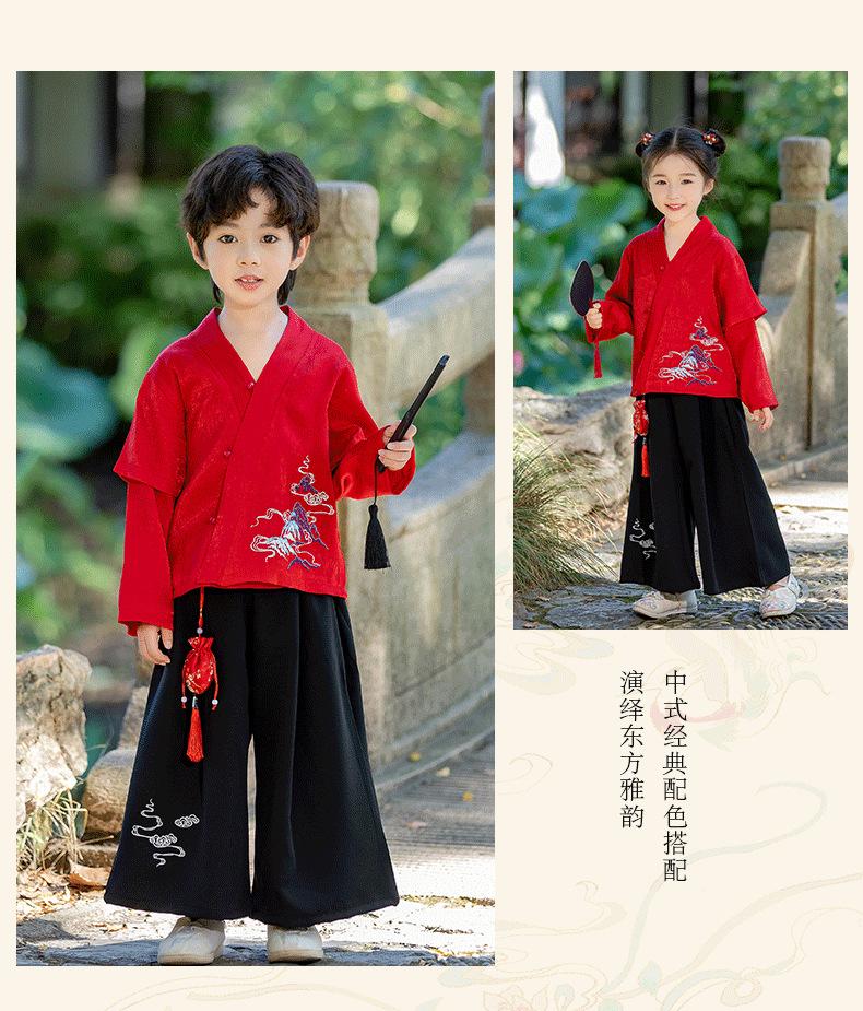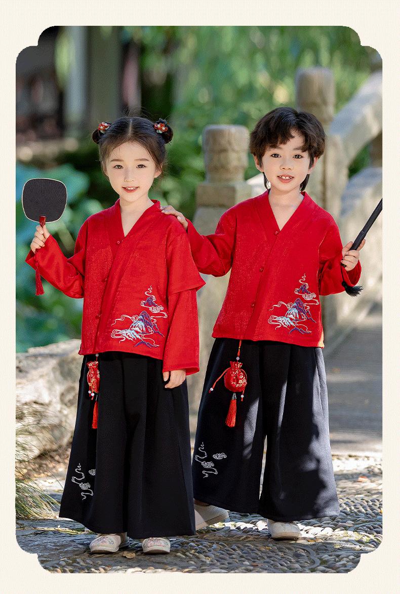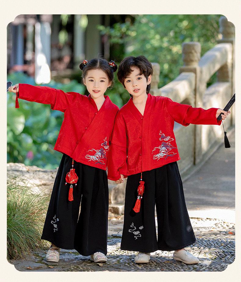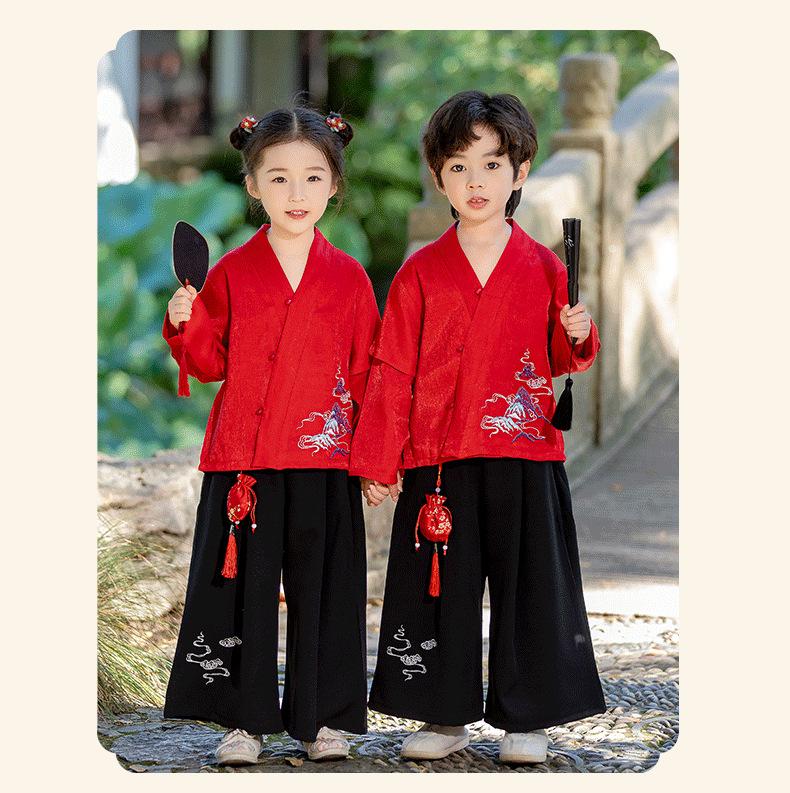 Traje de actuación Hanfu de estilo chino nuevo de primavera y otoño para niños y niñas, bordado, nuevo estilo chino, traje Tang mejorado, conjunto de hermano y hermana, traje de actuación