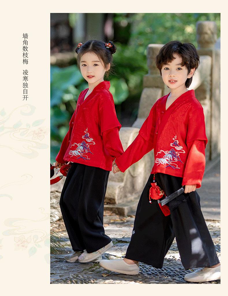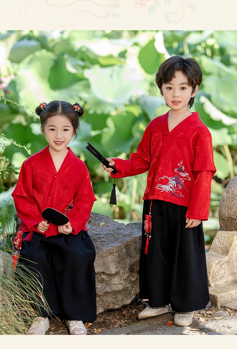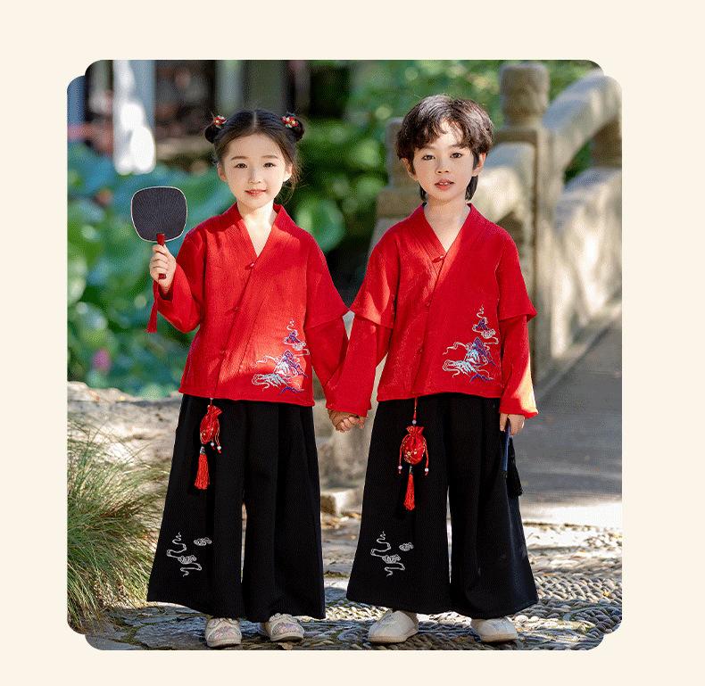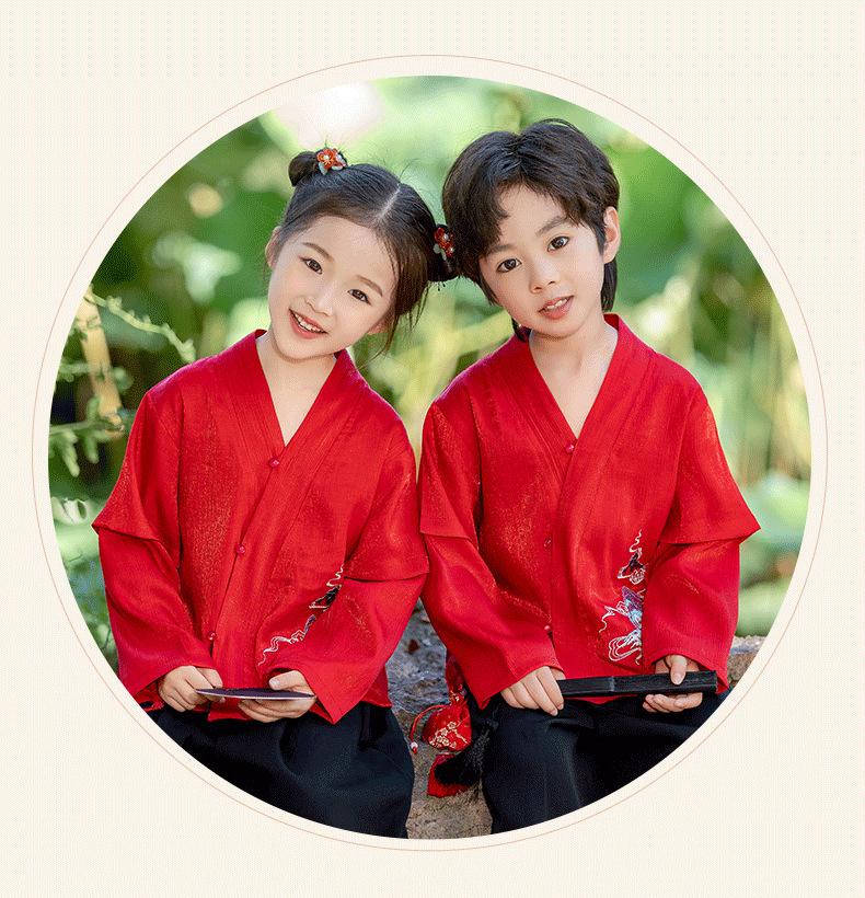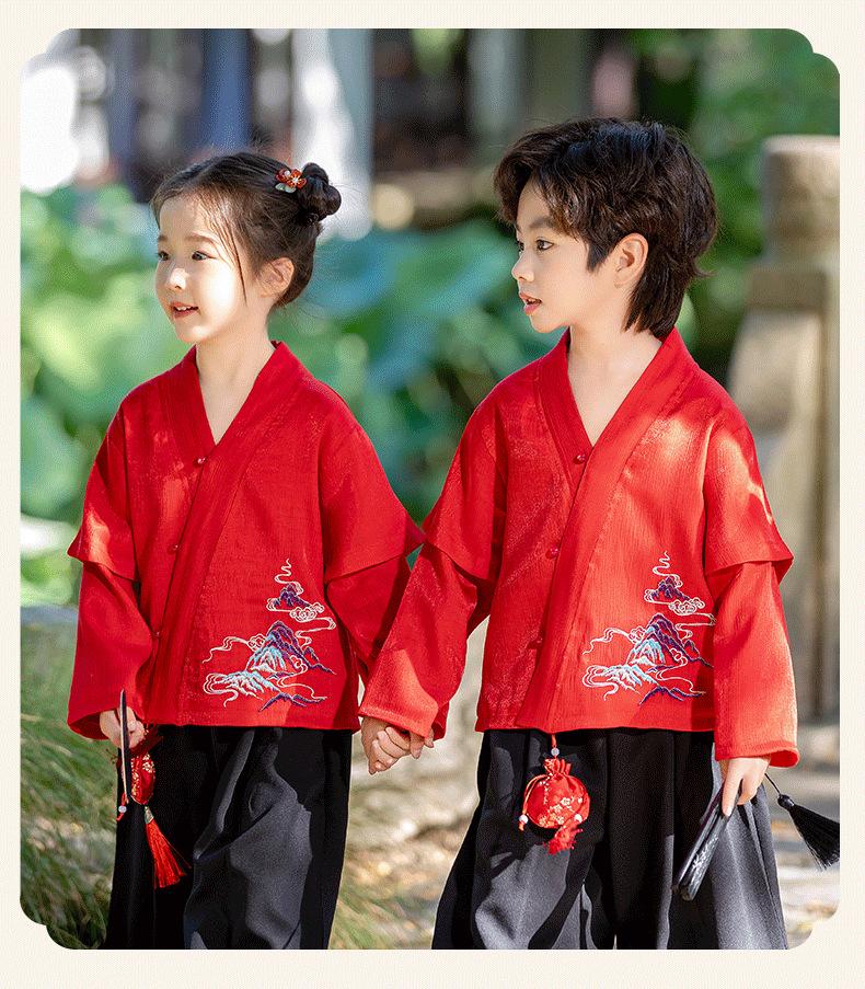 Traje de actuación Hanfu de estilo chino nuevo de primavera y otoño para niños y niñas, bordado, nuevo estilo chino, traje Tang mejorado, conjunto de hermano y hermana, traje de actuación
