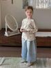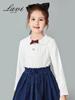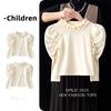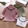 Camiseta básica de algodón puro con volantes y cuello alto de manga larga para niña, nuevo estilo primavera y otoño 2024, top negro con puños plisados
