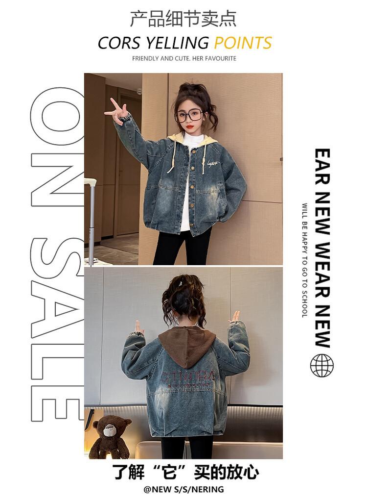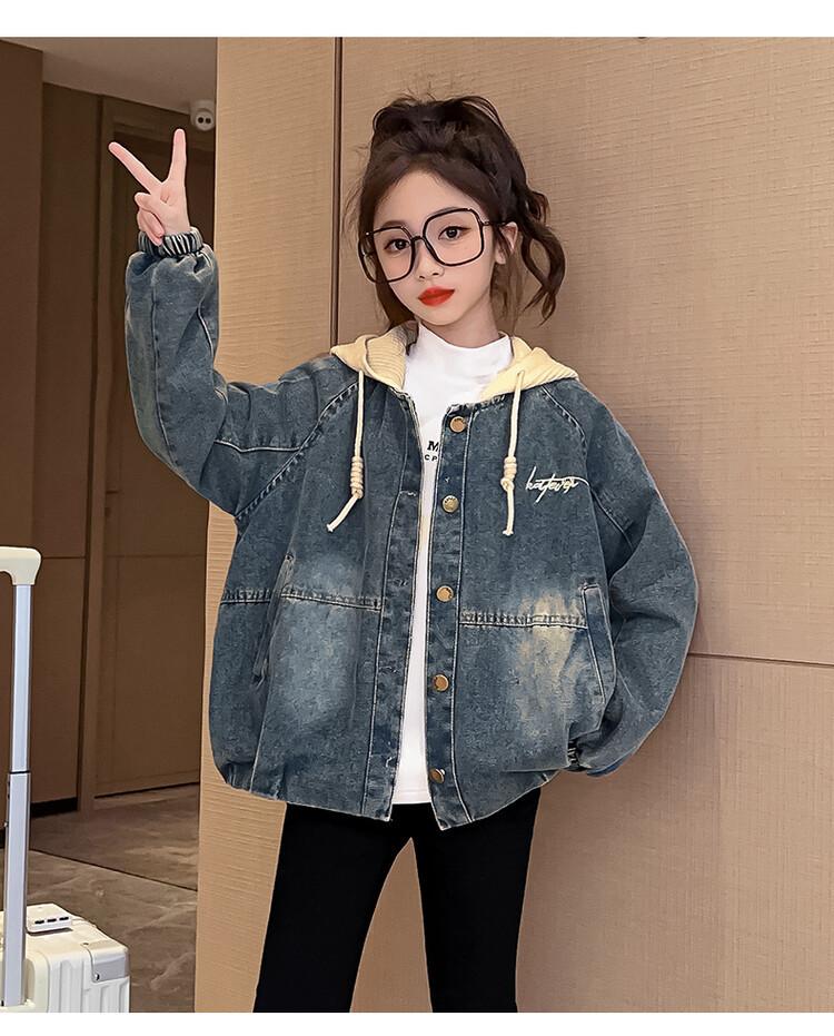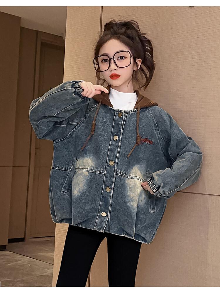 Chaqueta de mezclilla para niña Primavera y Otoño Nueva Moda Ropa Infantil Chaqueta Bordada Top Ropa de Primavera para Niños Medianos y Grandes Transfronteriza