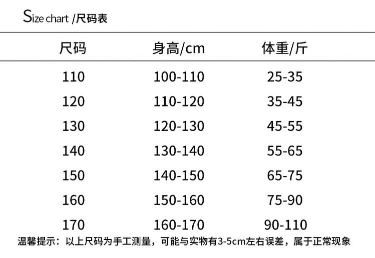 Children (3~8 years old, 100~140cm)