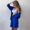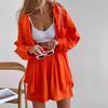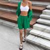Amazon Transfronterizo Primavera Nuevo Color Sólido Camisa de Manga Larga con Botonadura Sencilla Holgada Moda Casual Traje de Shorts Verde