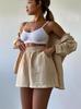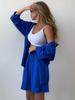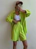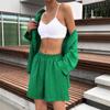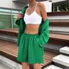 Amazon Transfronterizo Europeo y Americano Moda Holgada de Primavera Nuevo Traje Casual de Shorts y Camisa de Manga Larga de Color Sólido con Botonadura Sencilla