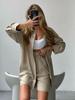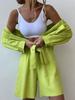 2024 Primavera Europeo y Americano nuevo color sólido abotonadura sencilla camisa de manga larga holgada moda casual traje de shorts spot