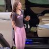 Dark gray top + pink pants