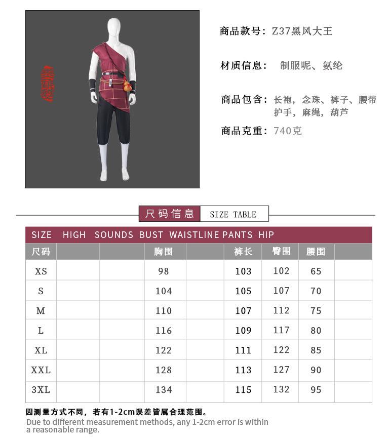Z37 black style king complete set: robe + waist rope + belt + handguard + rosary + pants
