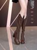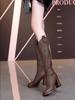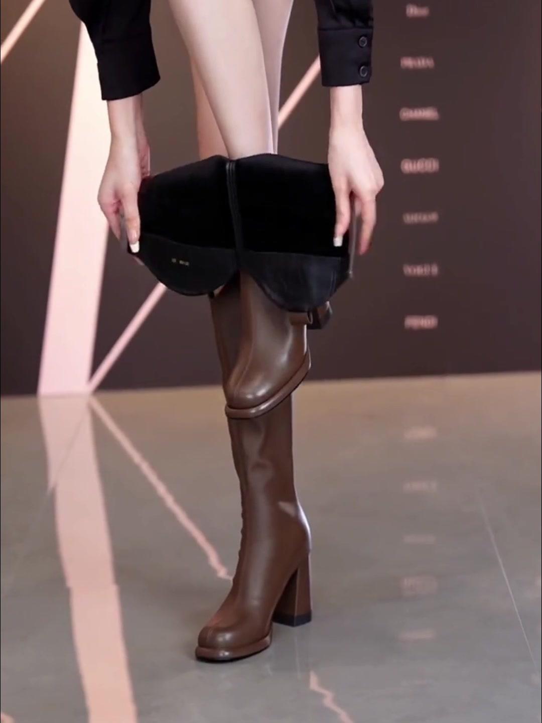 Moda Europea y Americana Temperamento Botas Altas hasta el Muslo Mujer 2025 Otoño/Invierno Nuevas Botas Versátiles Adelgazantes de Tacón Alto Punta Cuadrada Tacón Grueso Botas de Caballero