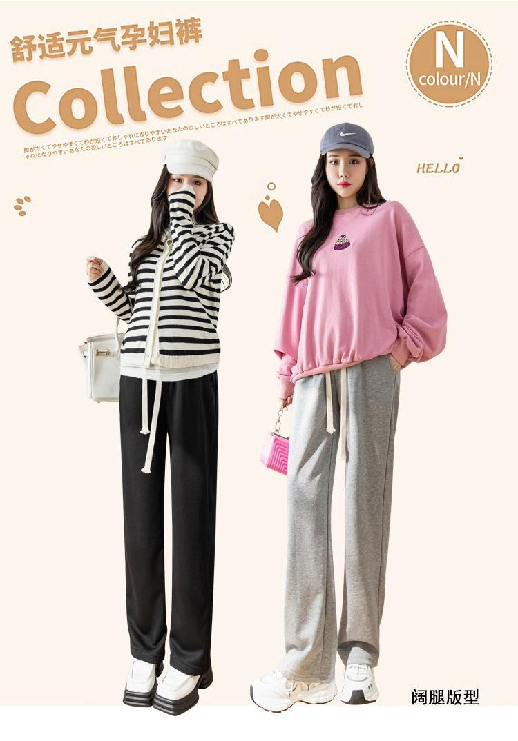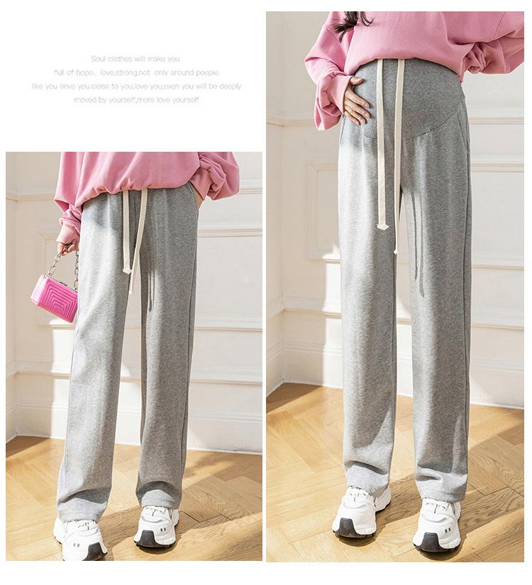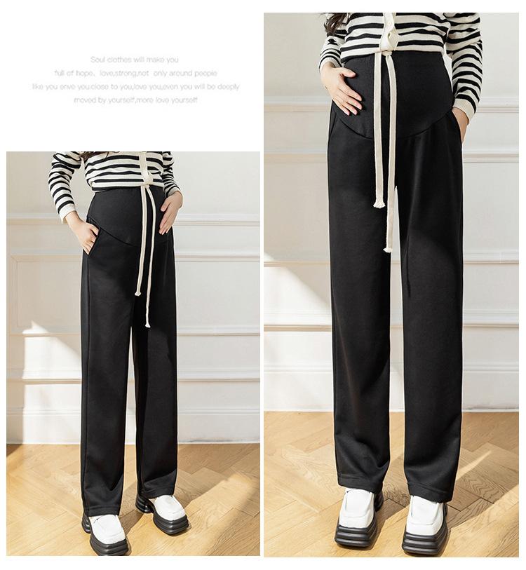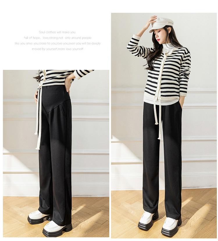 Pantalones de maternidad de tiro real estilo otoño e invierno ropa exterior holgados casuales versátiles pantalones de pierna ancha pantalones largos ropa de maternidad nueva ropa de otoño