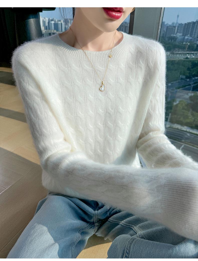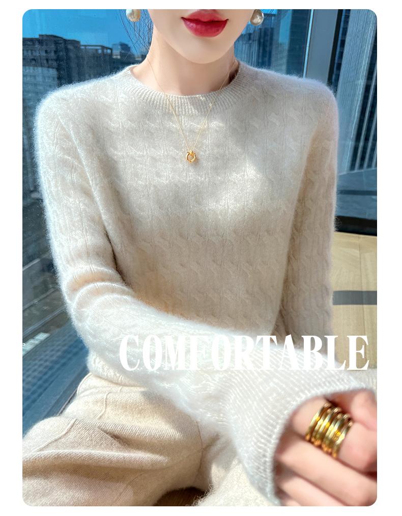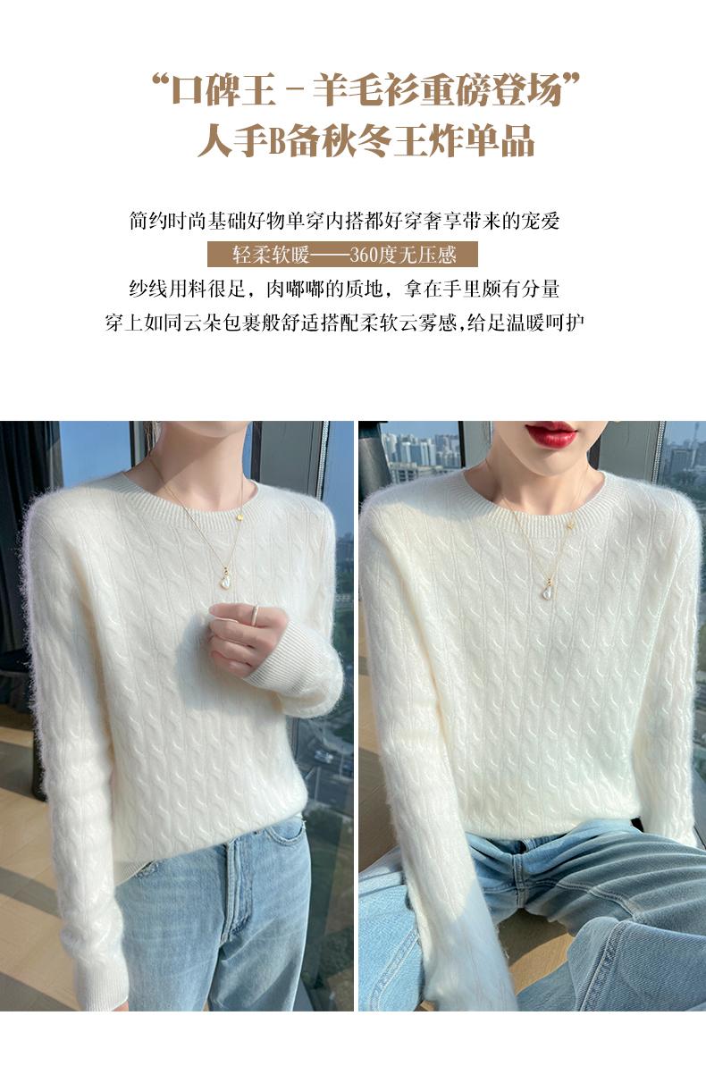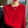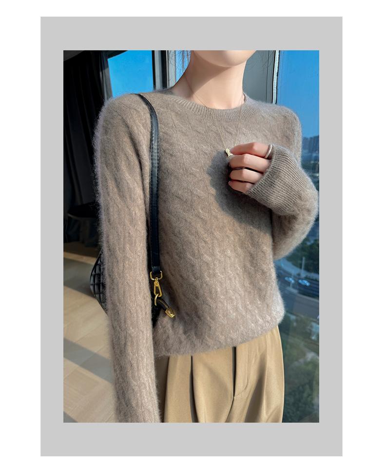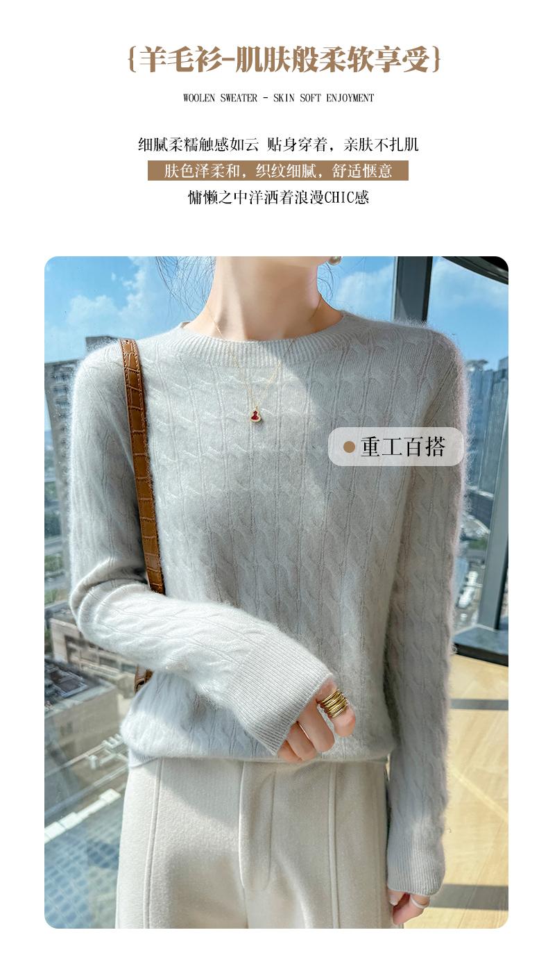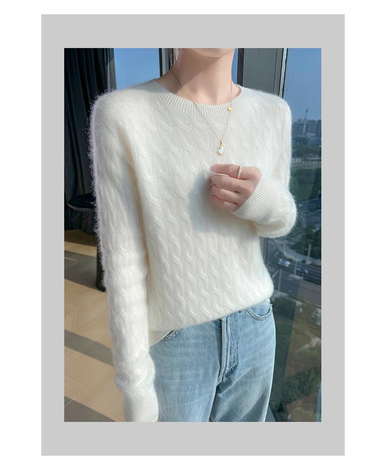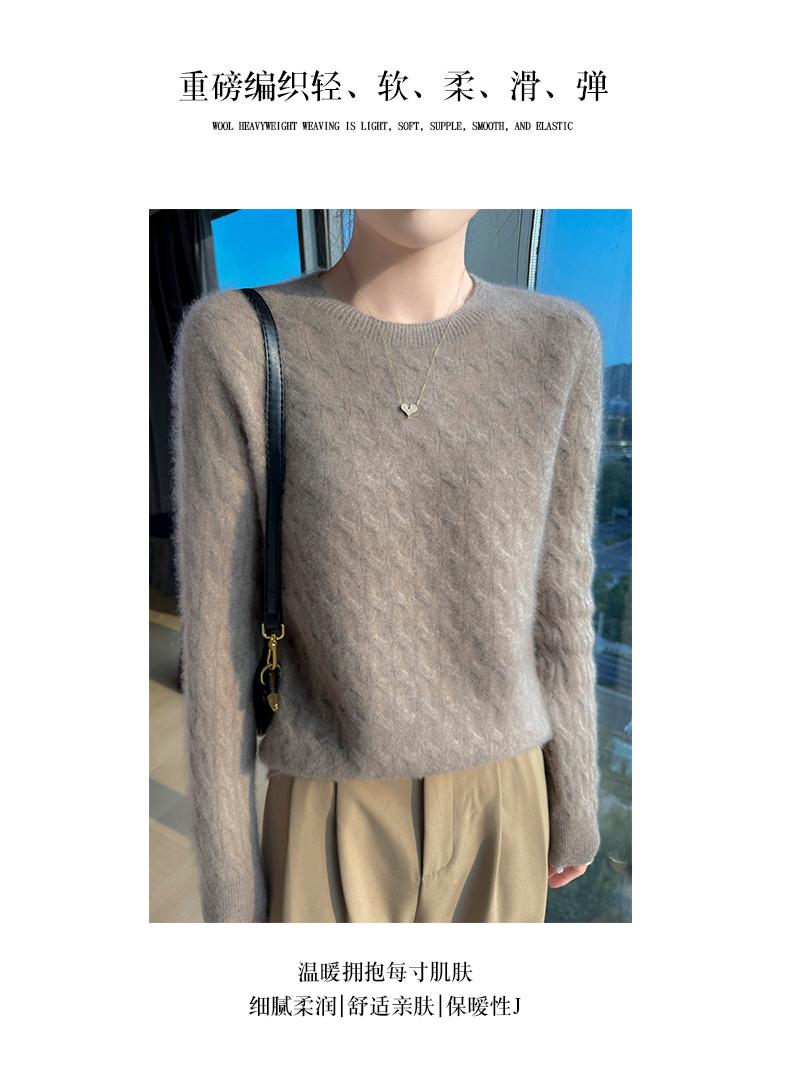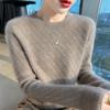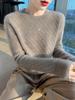 Suéter de Punto Trenzado de Moda para Mujer 100% Lana Pura Jersey Otoño Invierno Nuevo Cuello Redondo Diseño de Manga Larga Suelto Camiseta Base Versátil