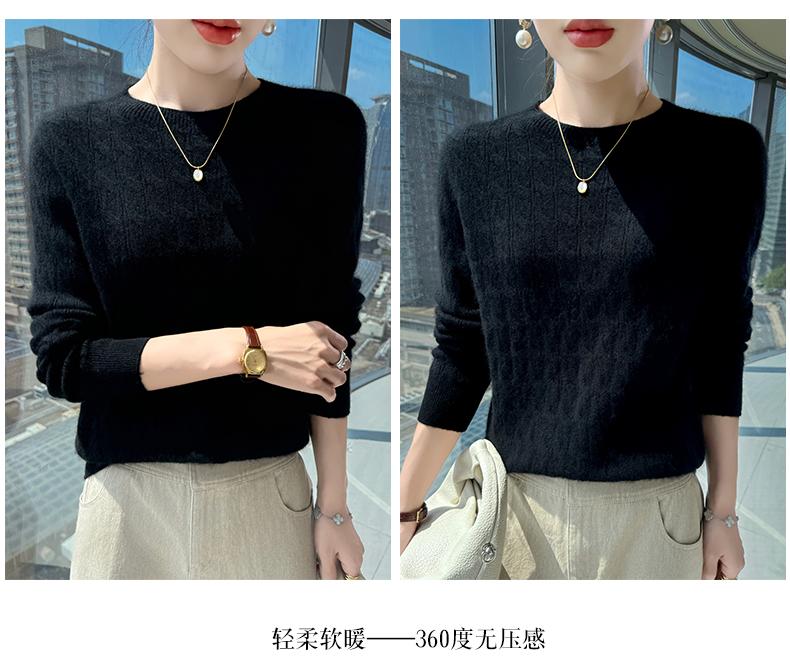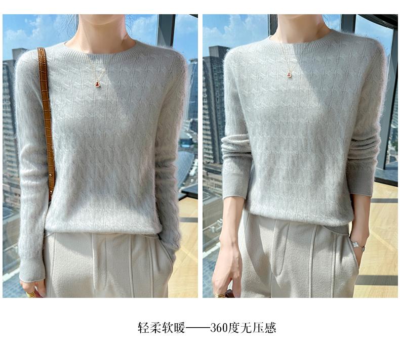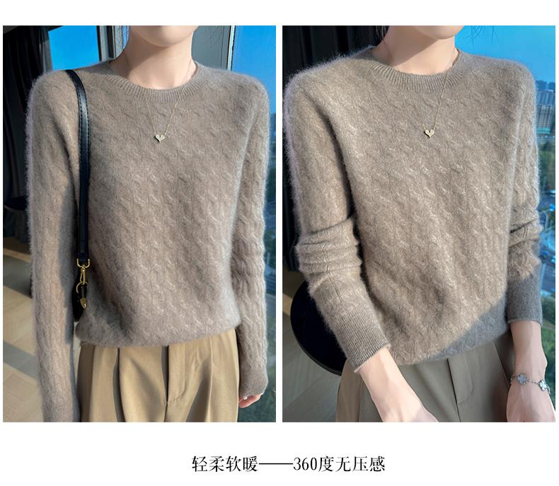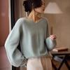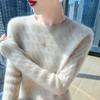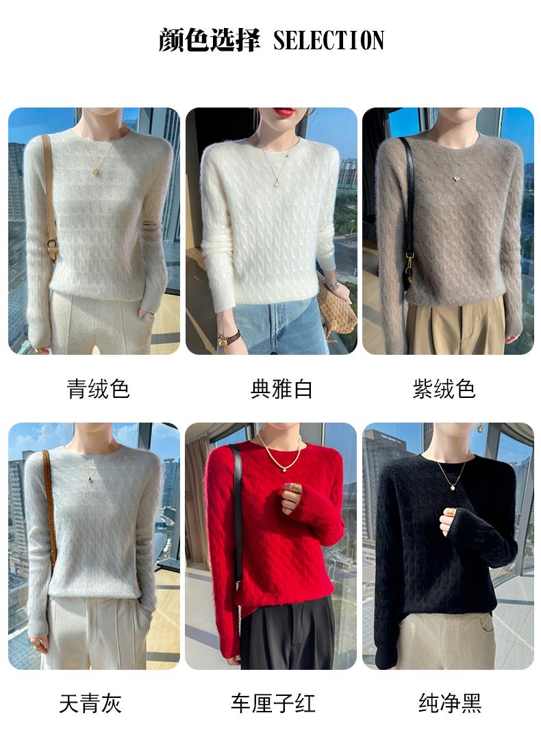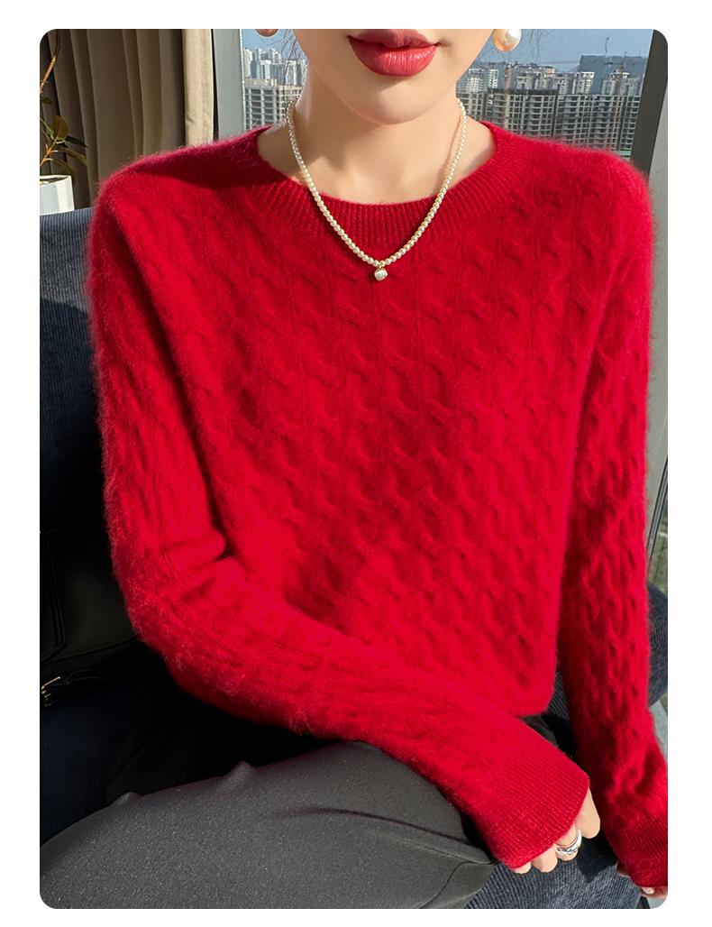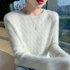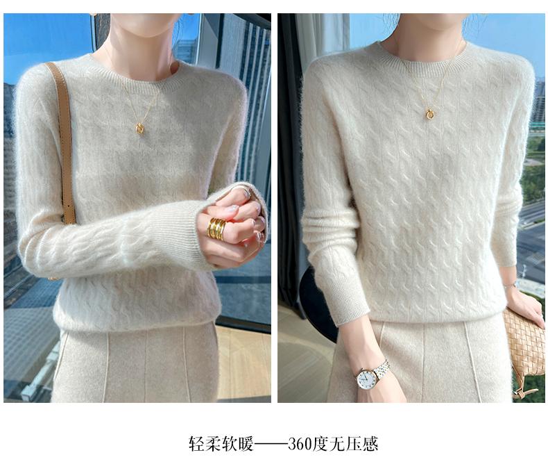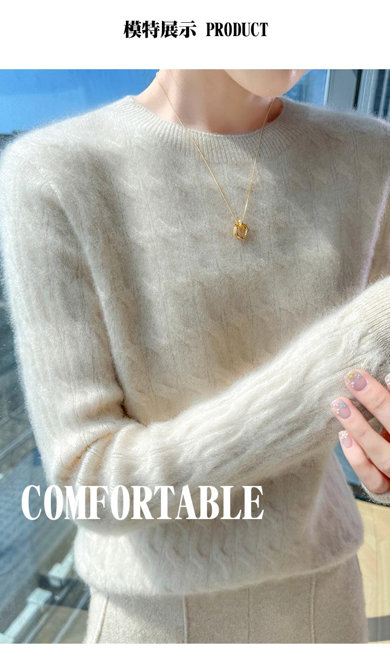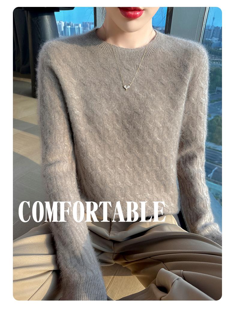 Suéter de Punto Trenzado de Moda para Mujer 100% Lana Pura Jersey Otoño Invierno Nuevo Cuello Redondo Diseño de Manga Larga Suelto Camiseta Base Versátil