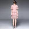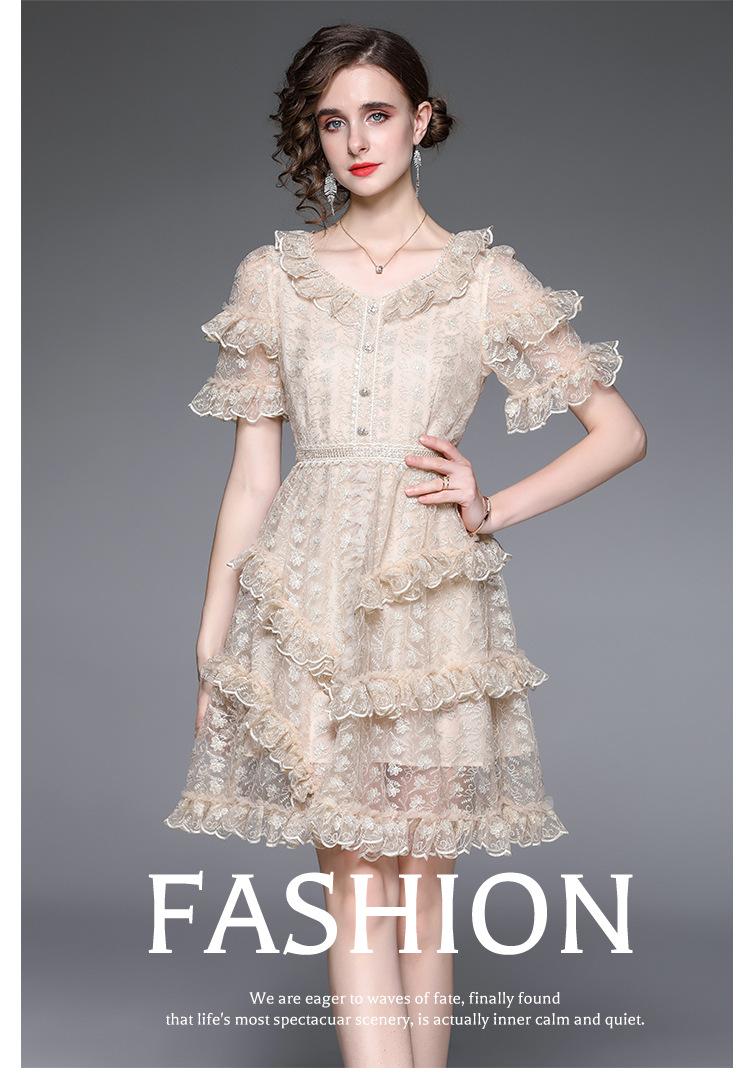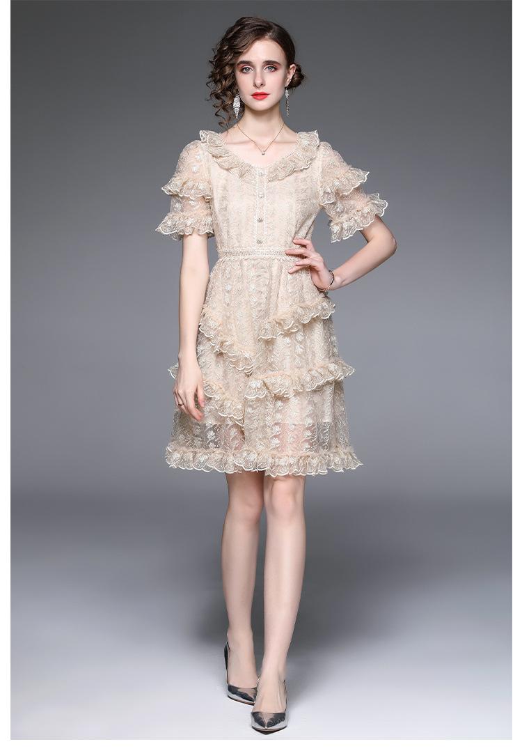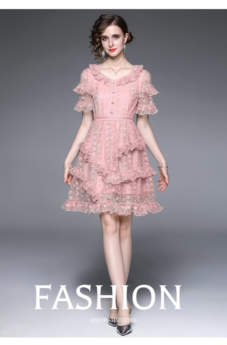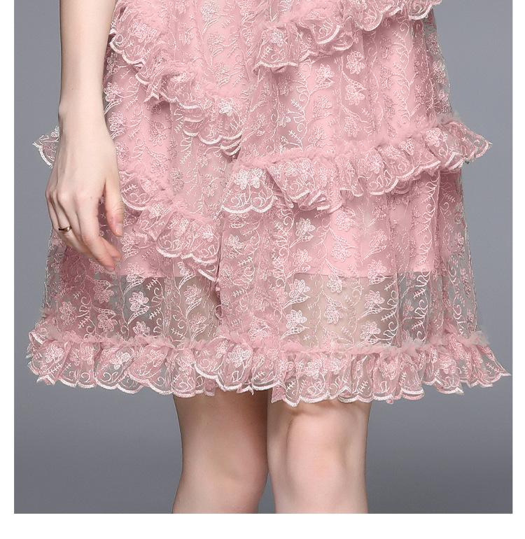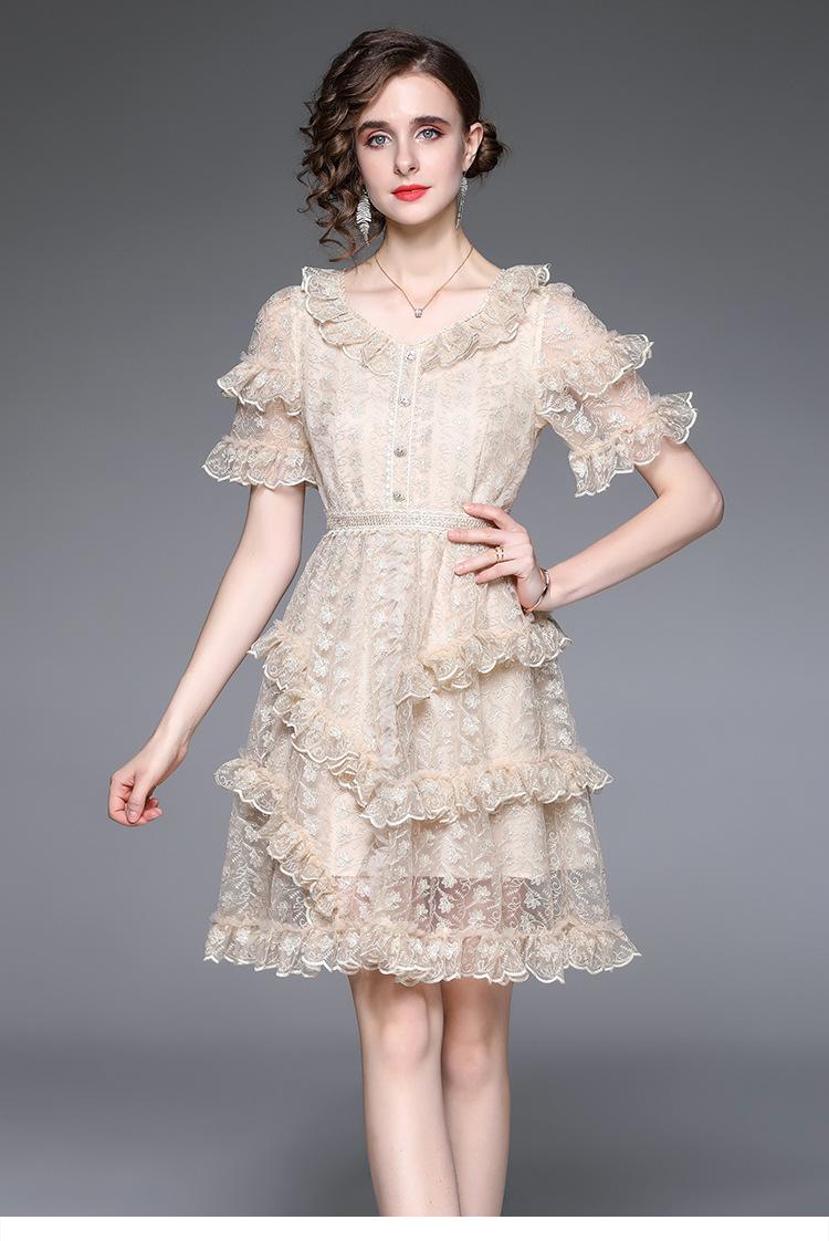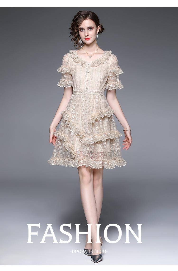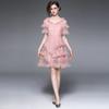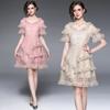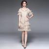 Foto real en stock vestido corto de verano de alta costura bordado elegante para adelgazar la cintura con volantes de princesa