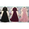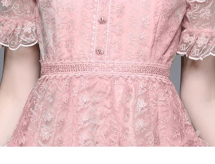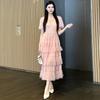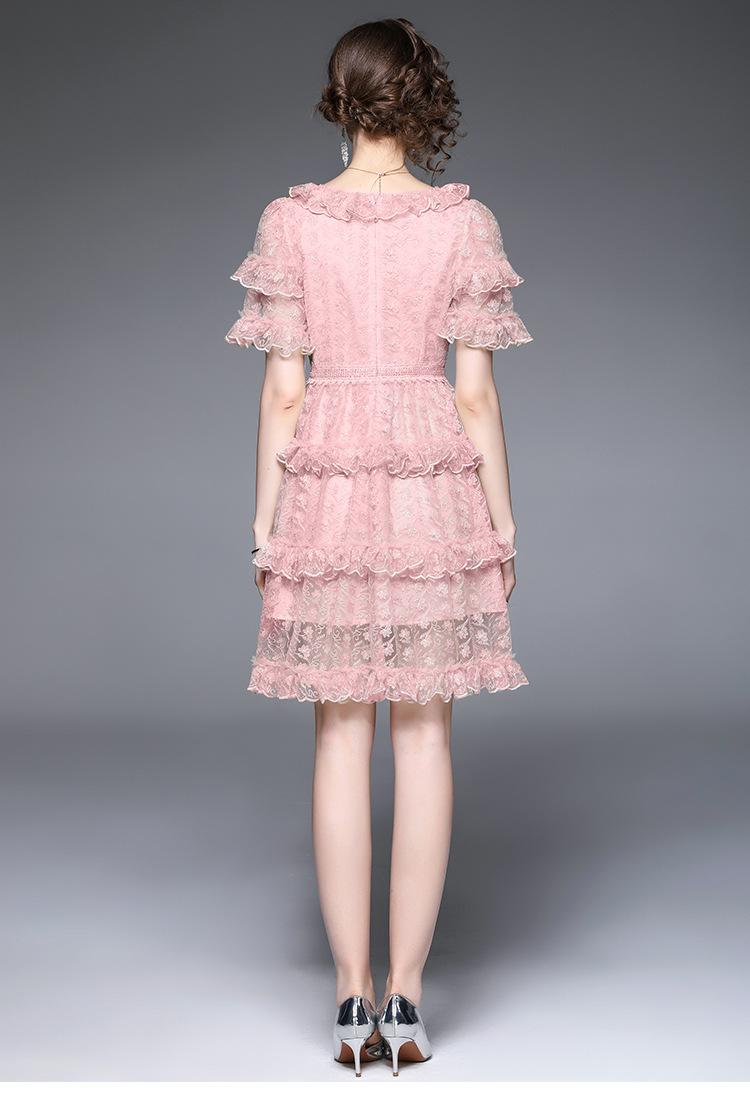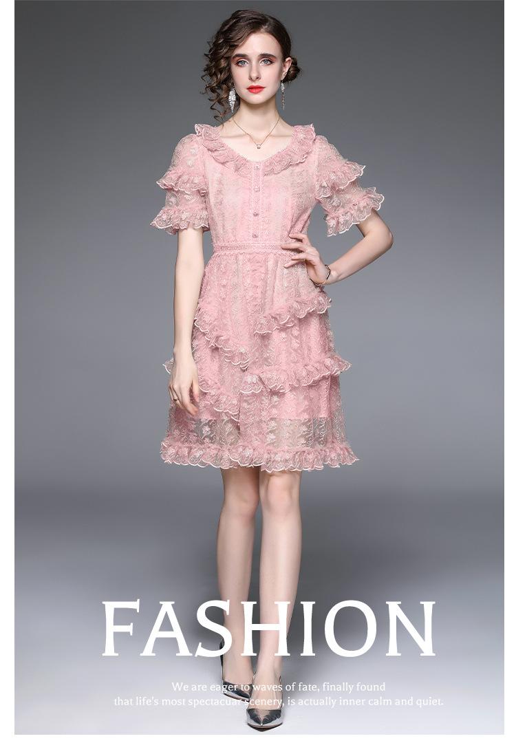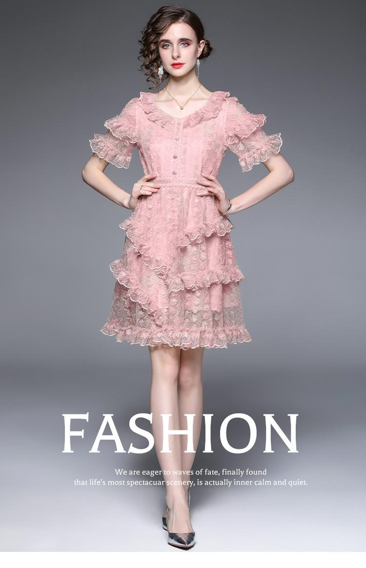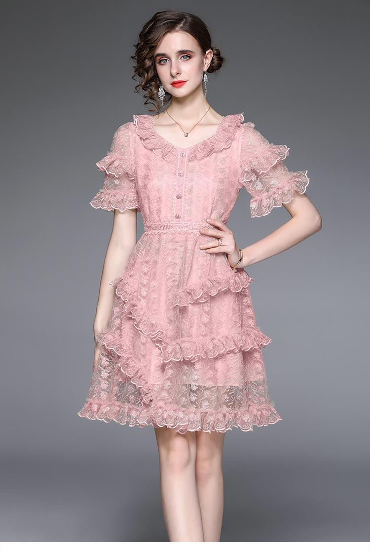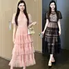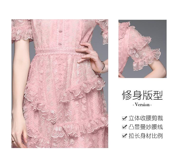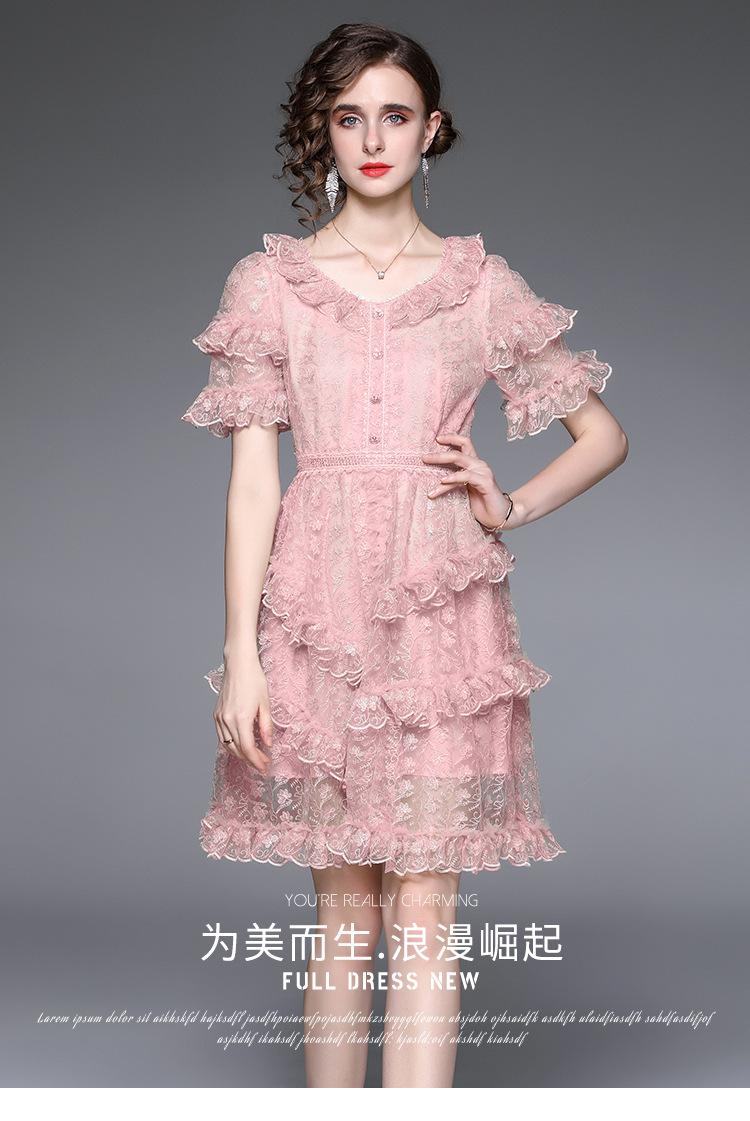 Foto real en stock vestido corto de verano de alta costura bordado elegante para adelgazar la cintura con volantes de princesa
