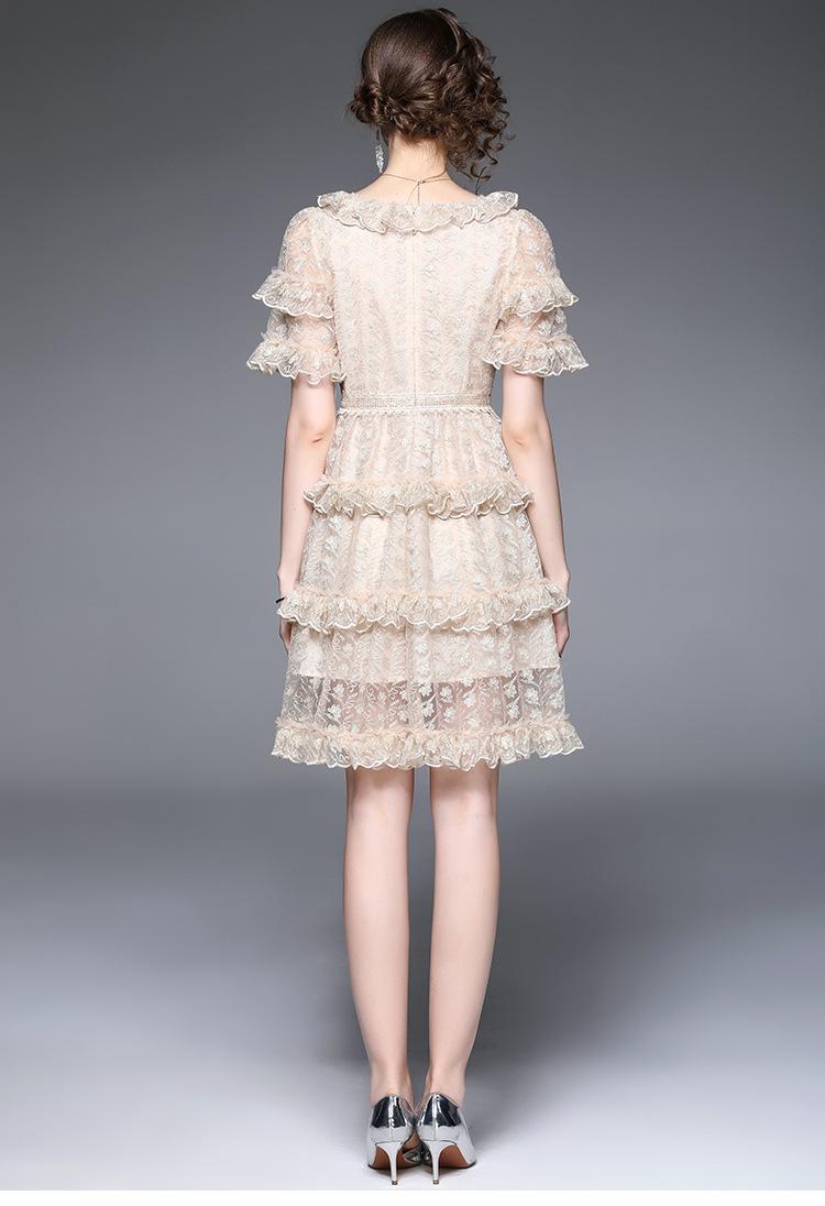 Embroidery + gauze + lace + ruffled + zipper + fold + stitching + beaded