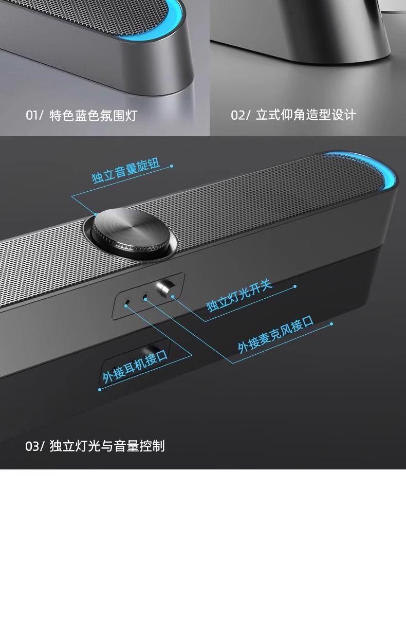Bocinas para Computadora de Escritorio Barra Larga Oculta con Micrófono Todo en Uno para Hogar E-sports Gaming Oficina Altavoz Bluetooth
