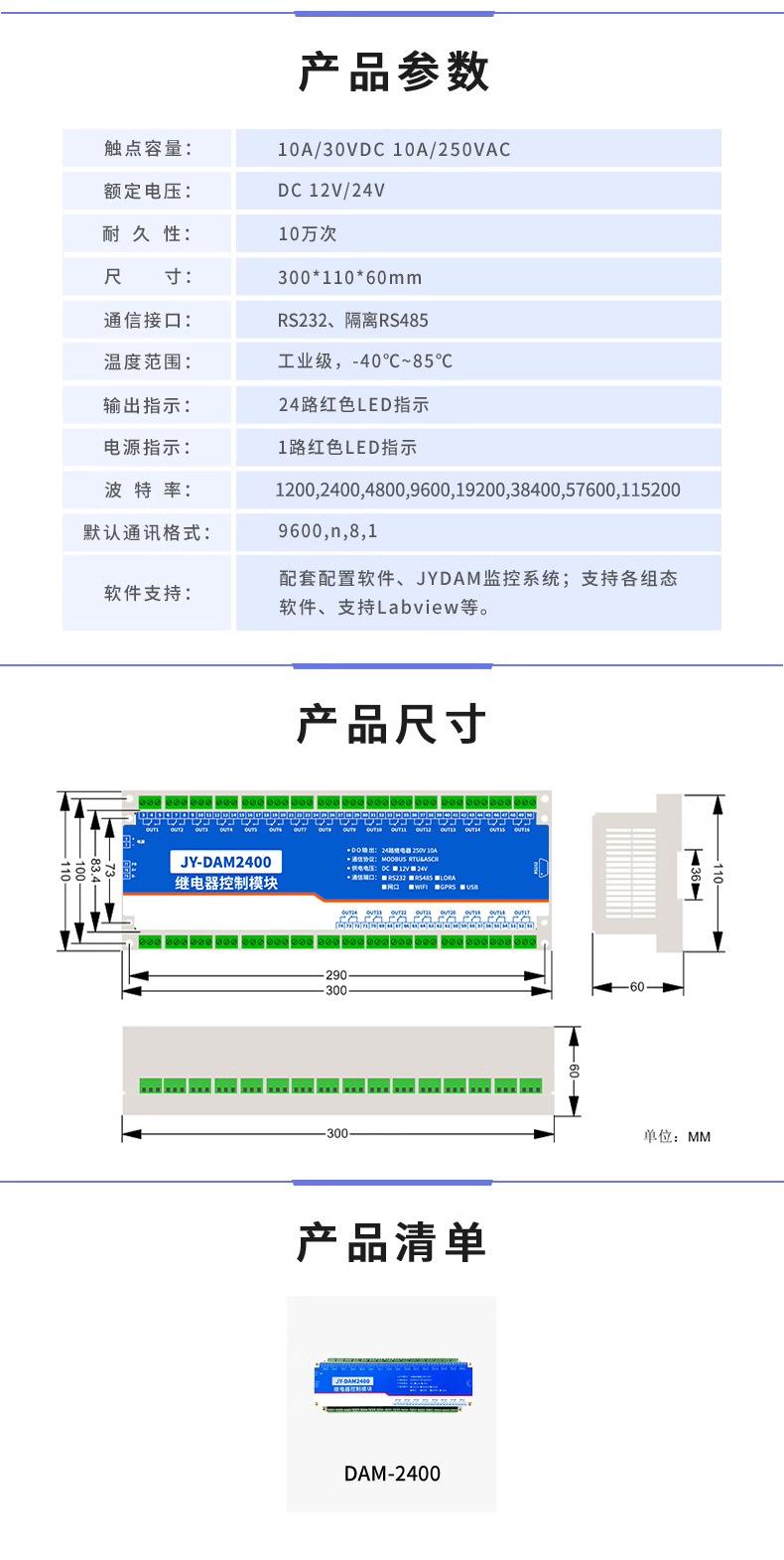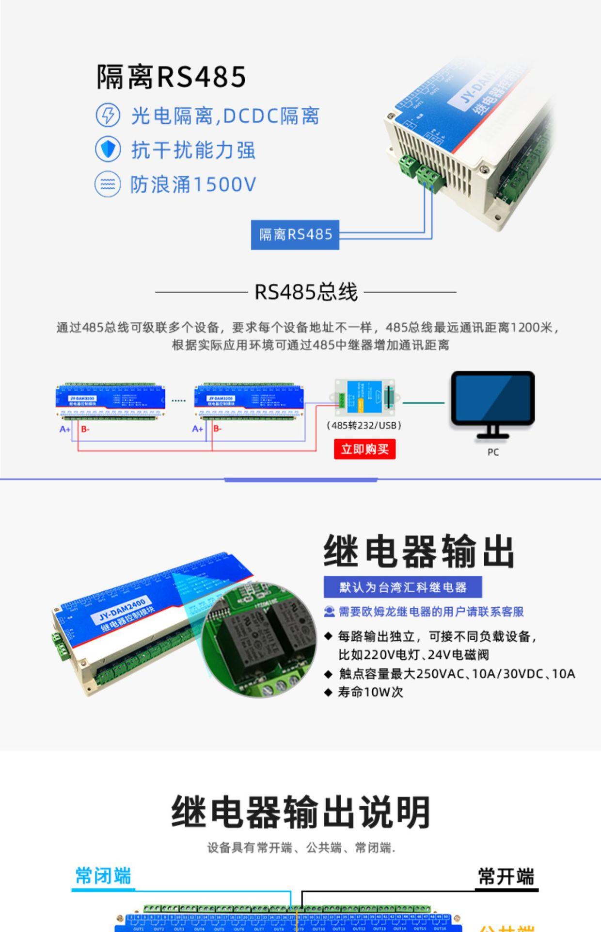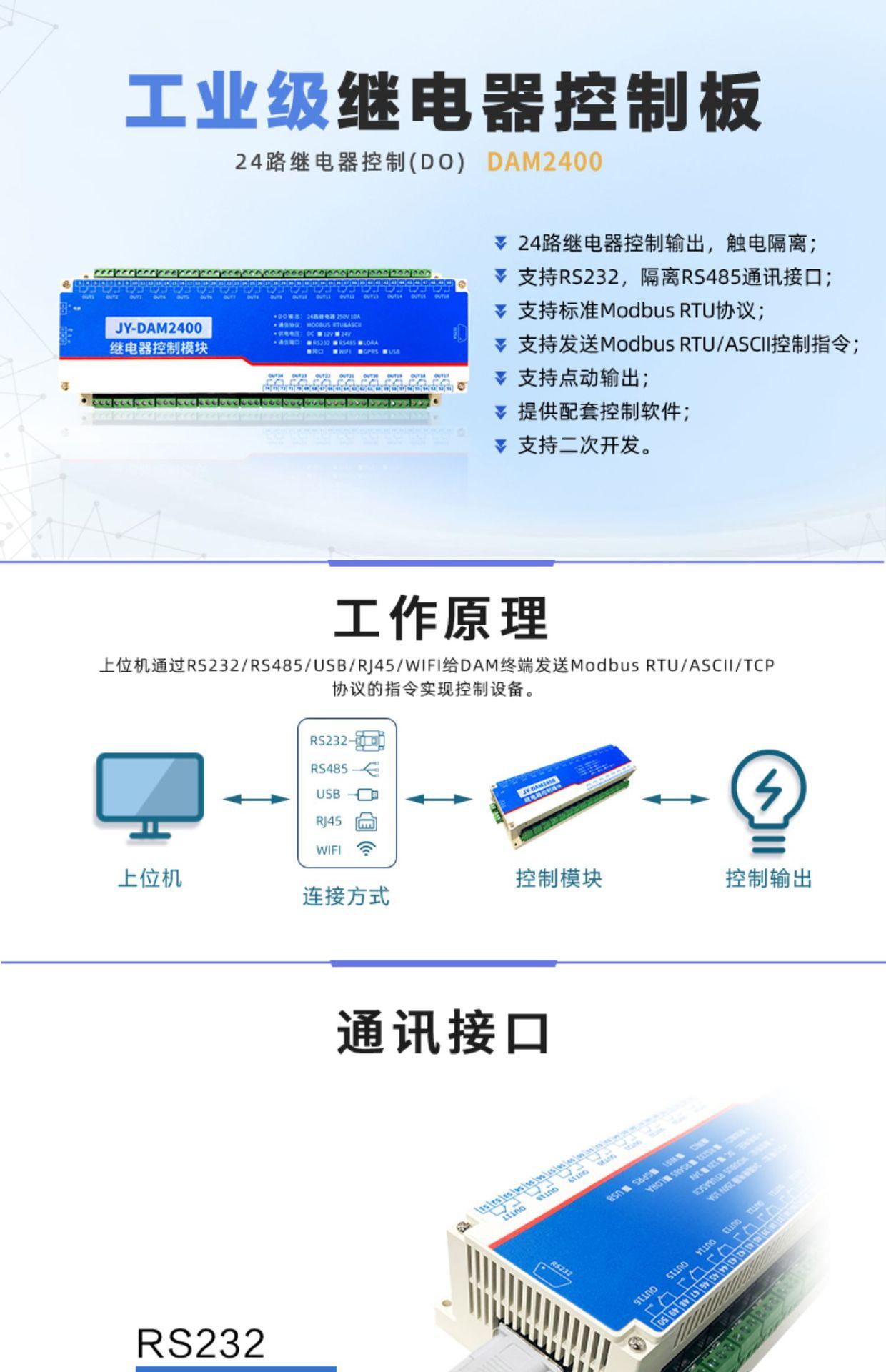 DAM2400 versión de control de relé de 24 canales aislamiento RS232 RS485/Modbus controlador de conmutación