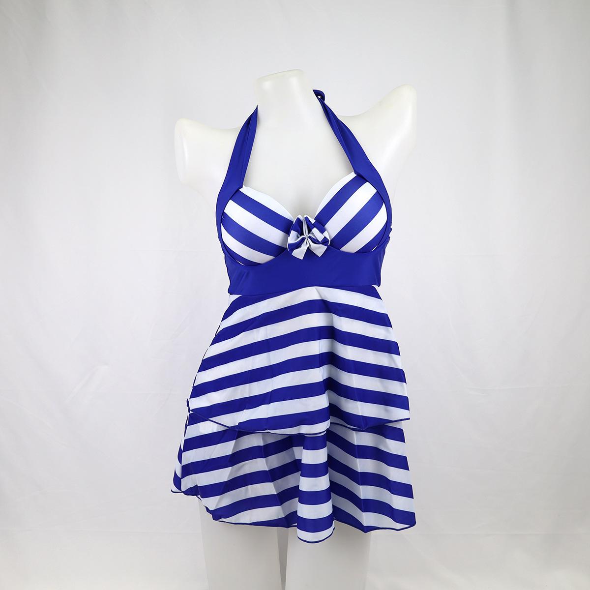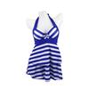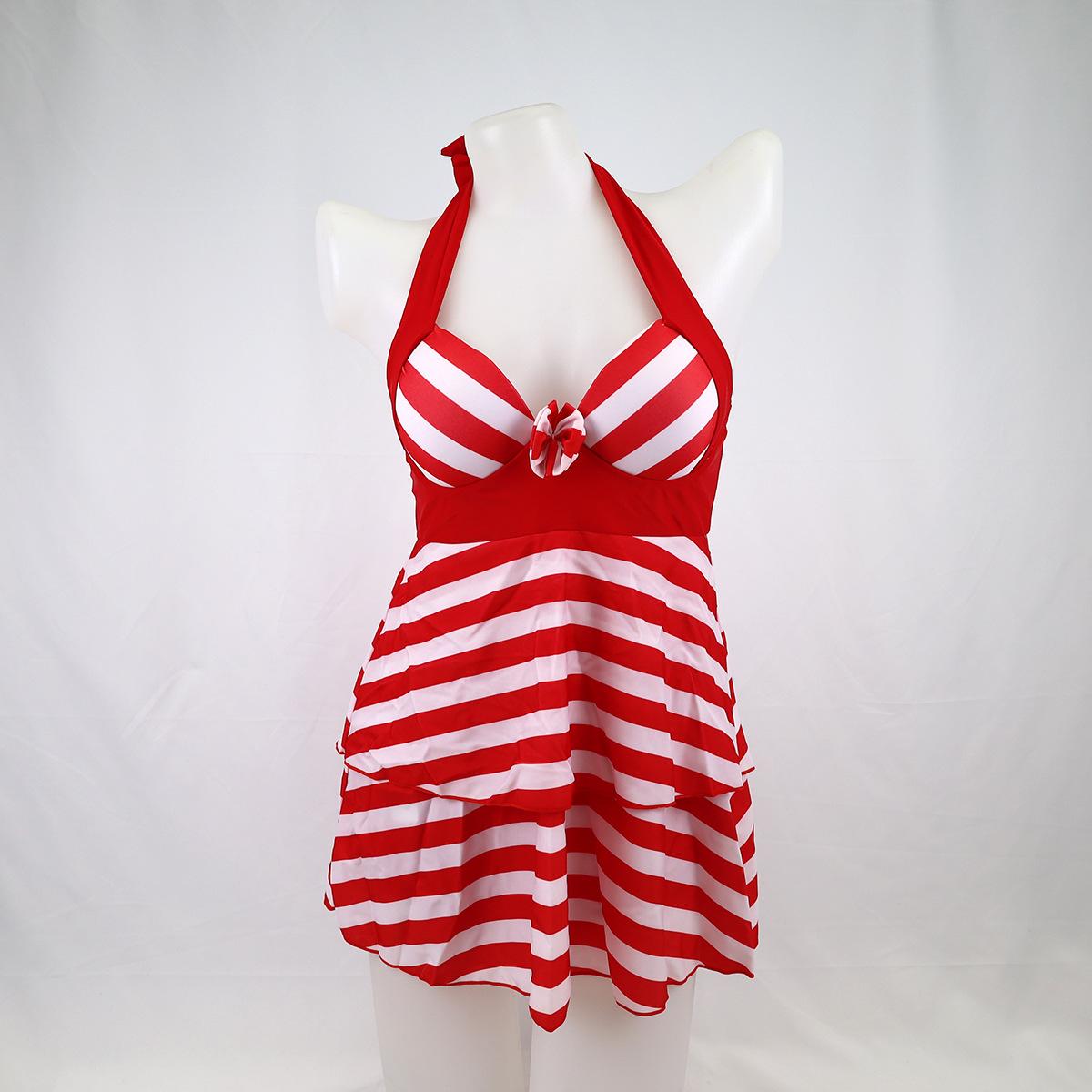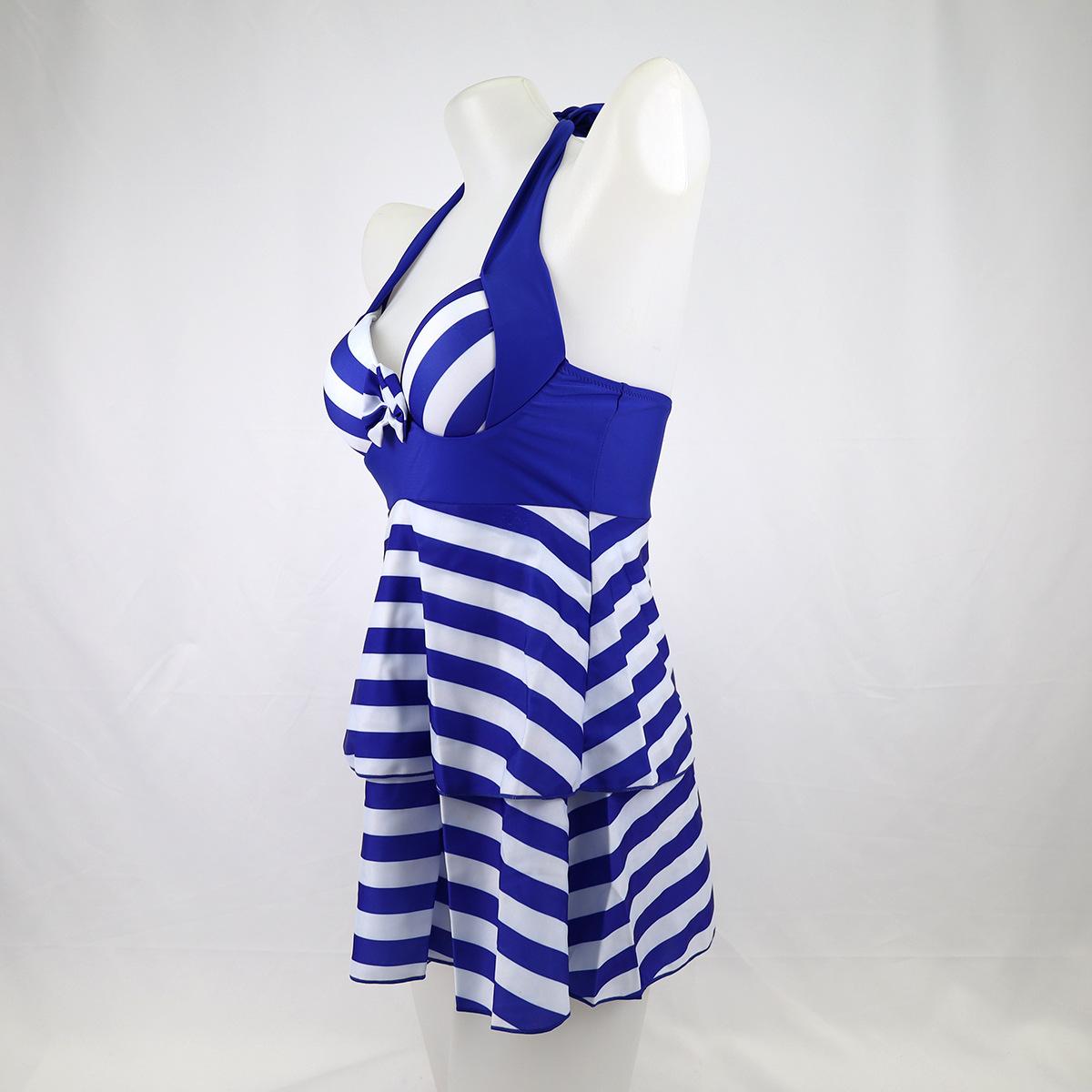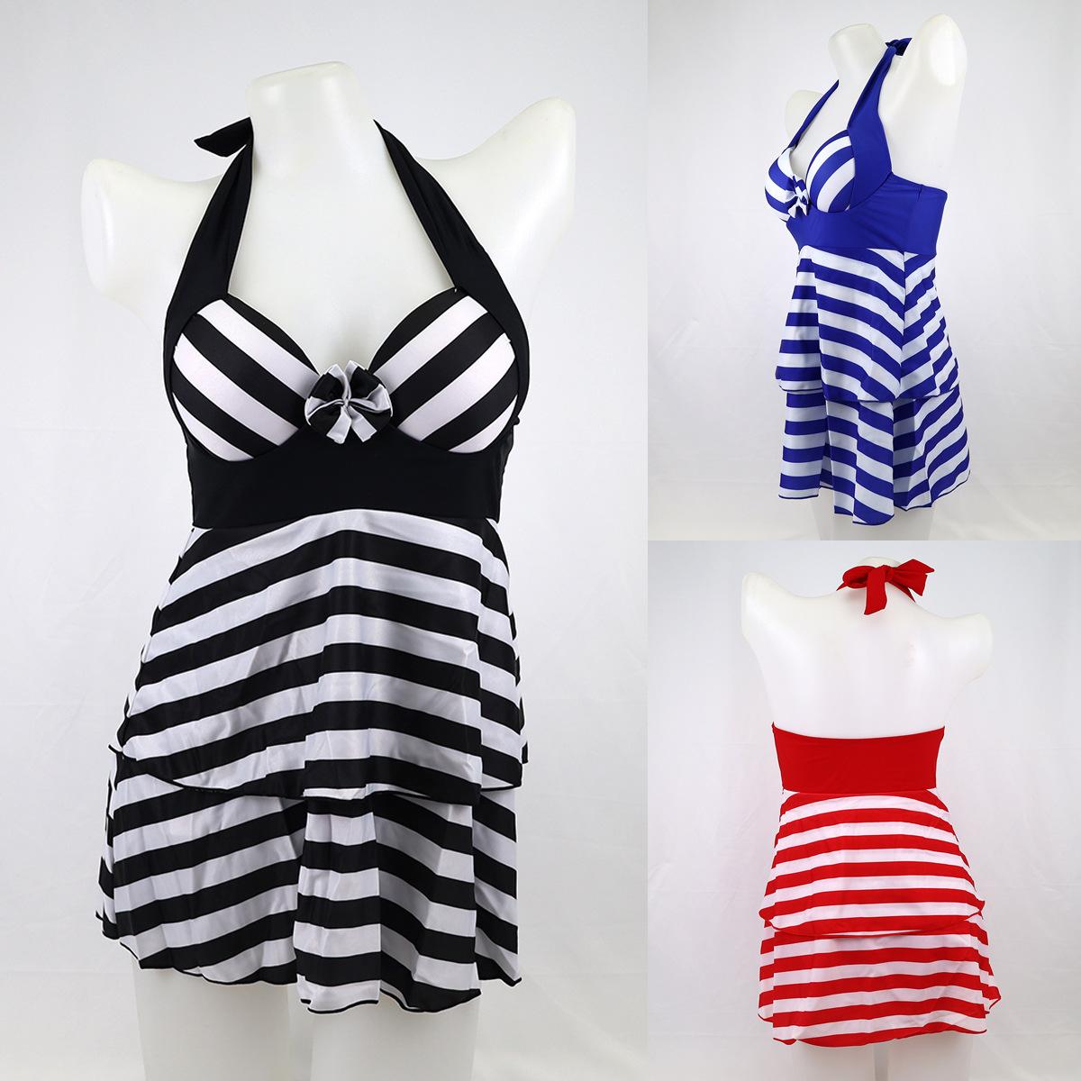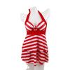Traje de baño de dos piezas dulce conservador de color sólido a rayas estampado halter falda doble capa bóxer traje de baño de dos piezas traje de baño para mujer