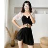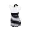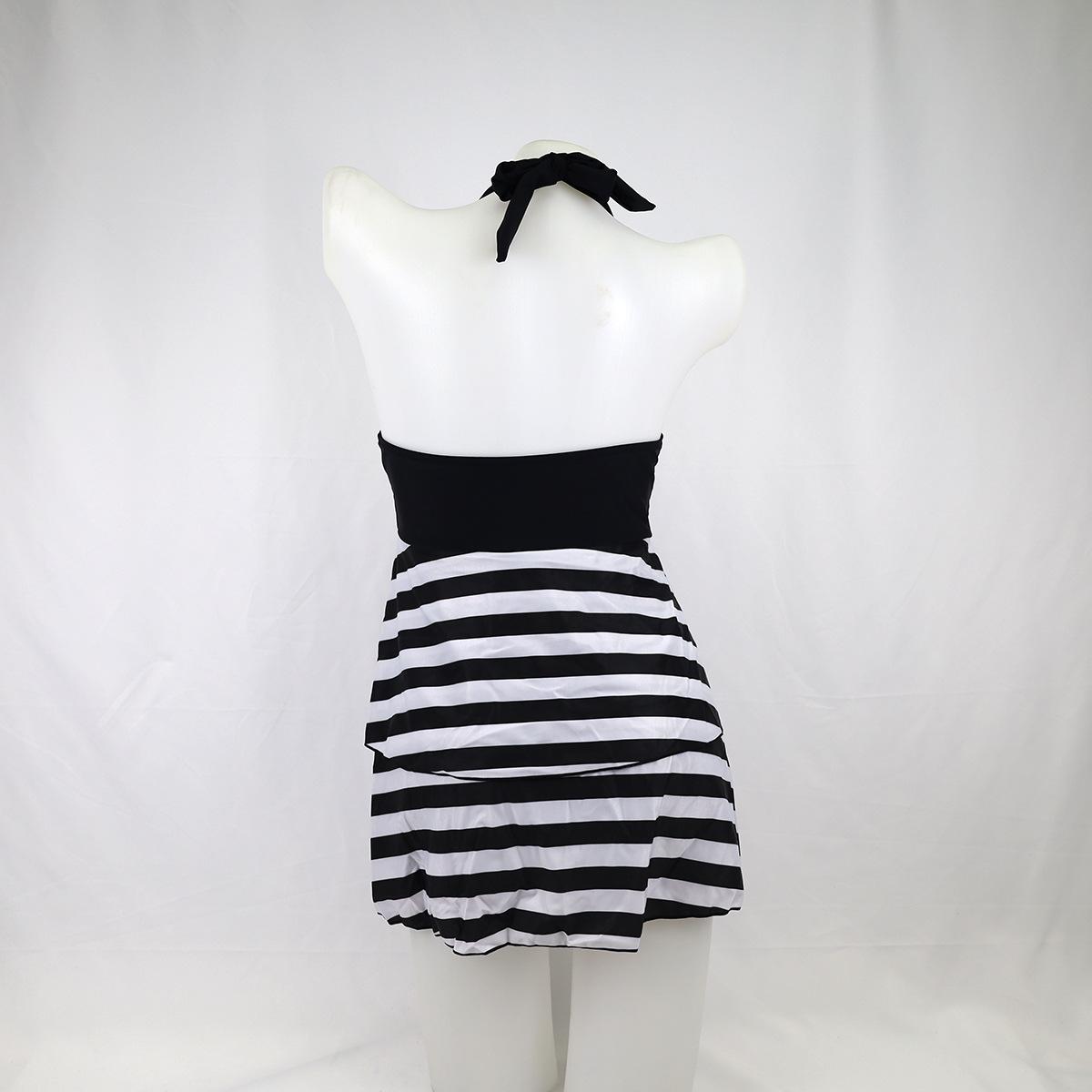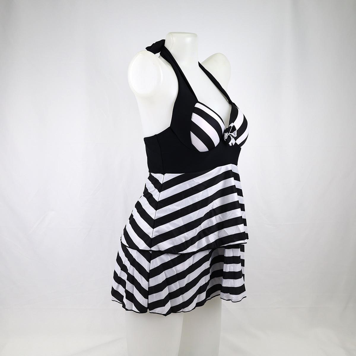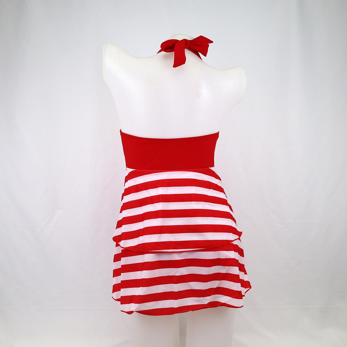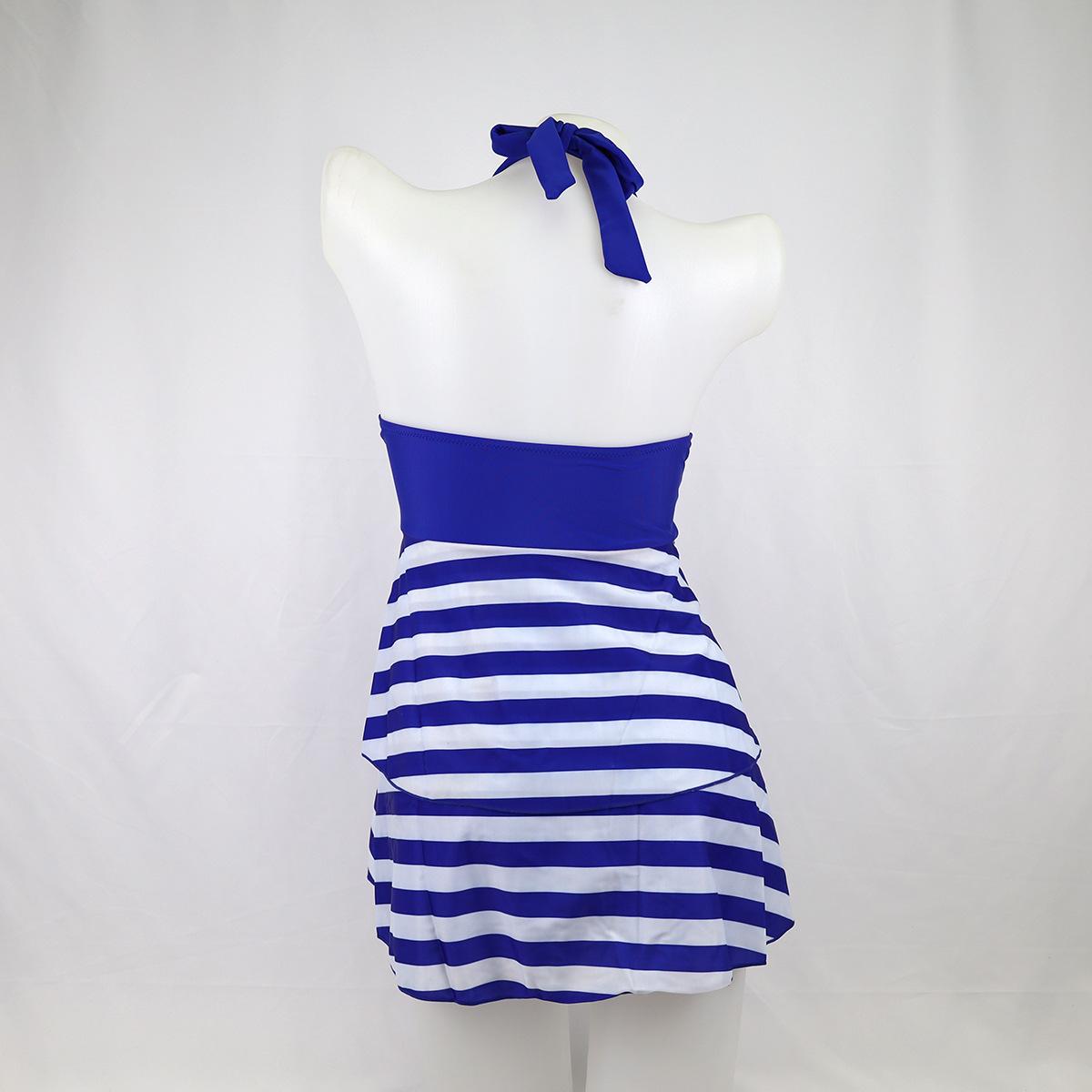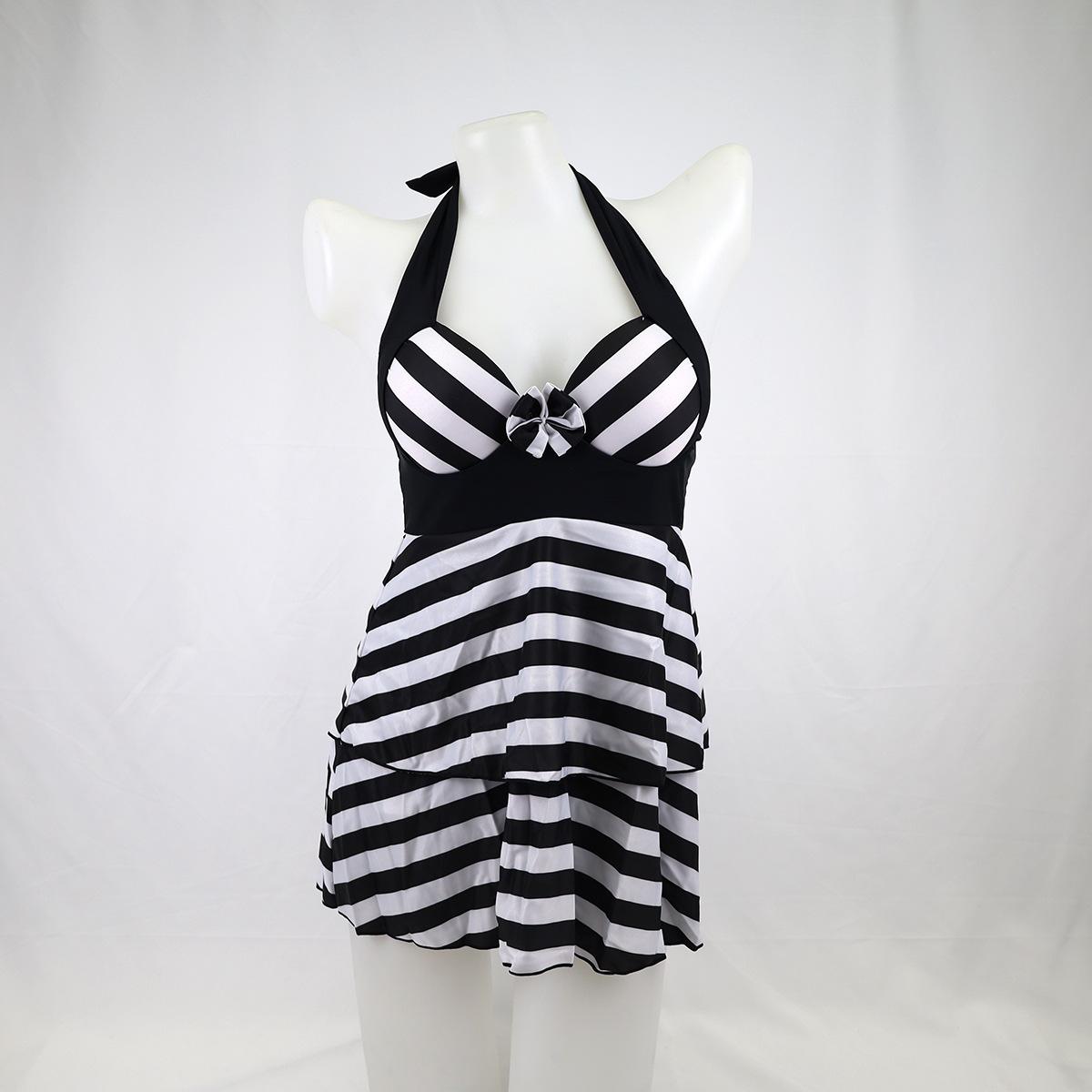 Traje de baño de dos piezas dulce conservador de color sólido a rayas estampado halter falda doble capa bóxer traje de baño de dos piezas traje de baño para mujer