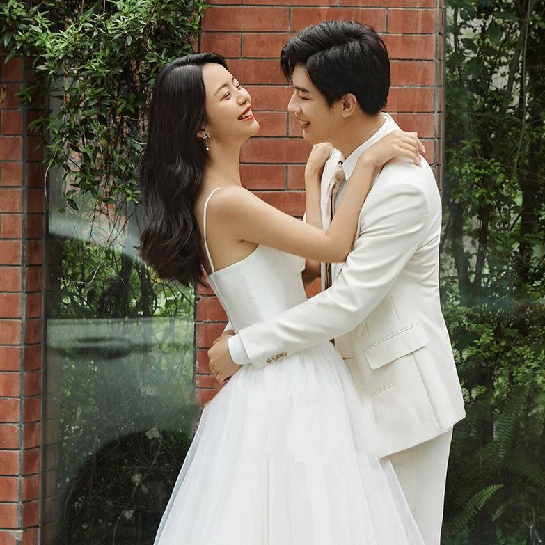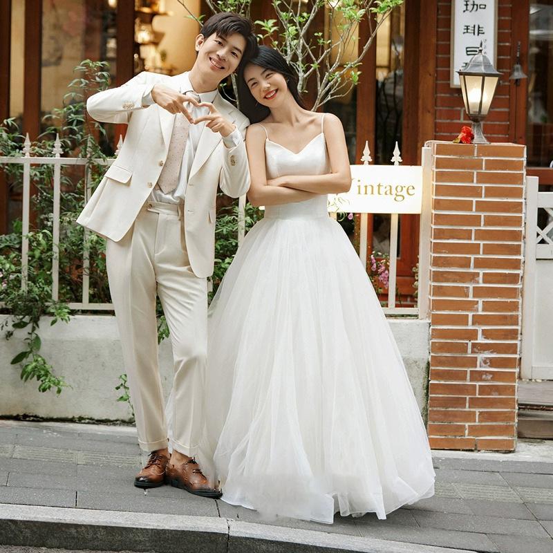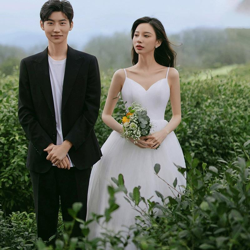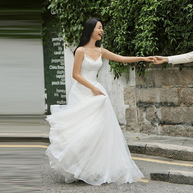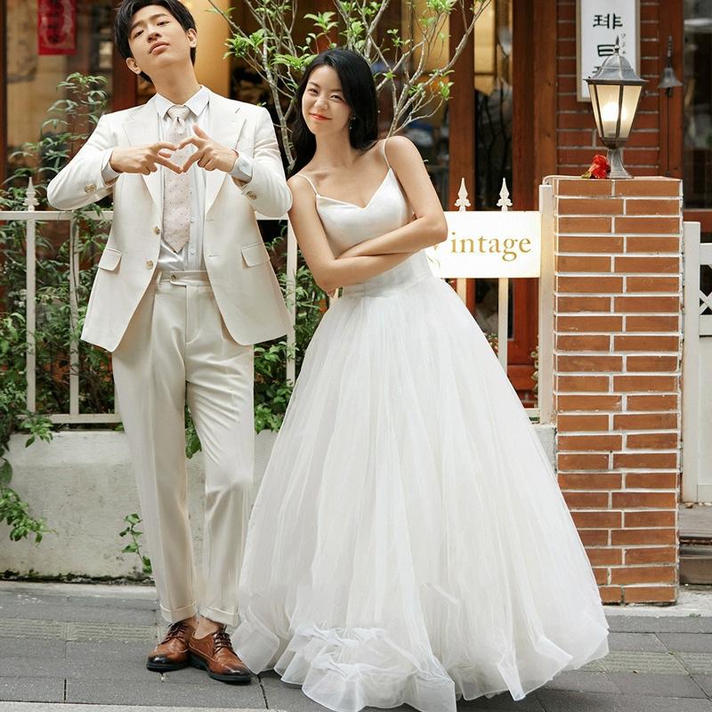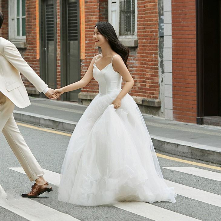 Vestido de Boda Ligero con Tirantes, Vestido de Novia Estilo Mori, Falda Abullonada, Sesión de Fotos de Pareja, Vestido de Boda