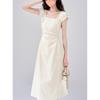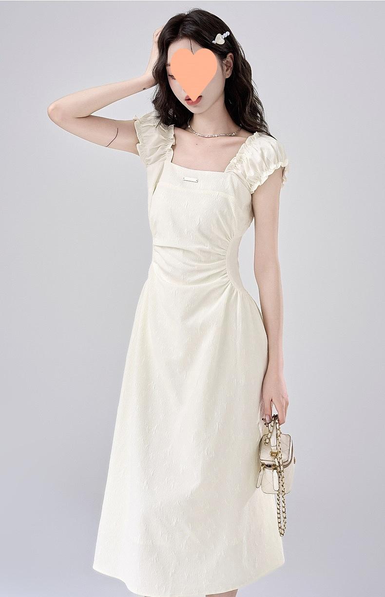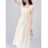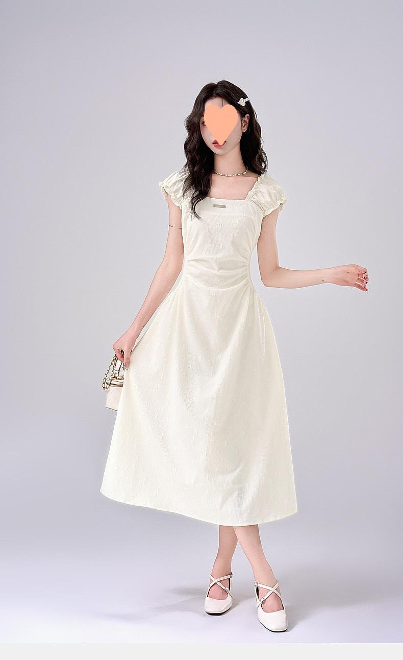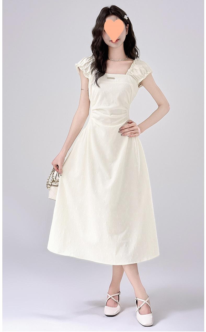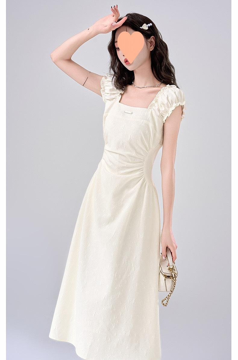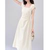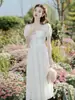 Vestido blanco de cuello cuadrado francés para mujer verano 2025 nuevo estilo primer amor leche pura dulce cintura pequeña vestido largo