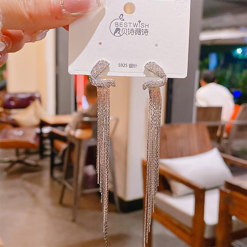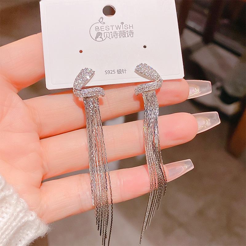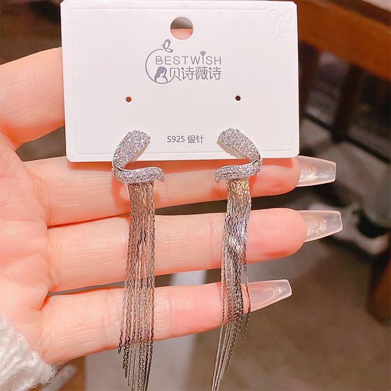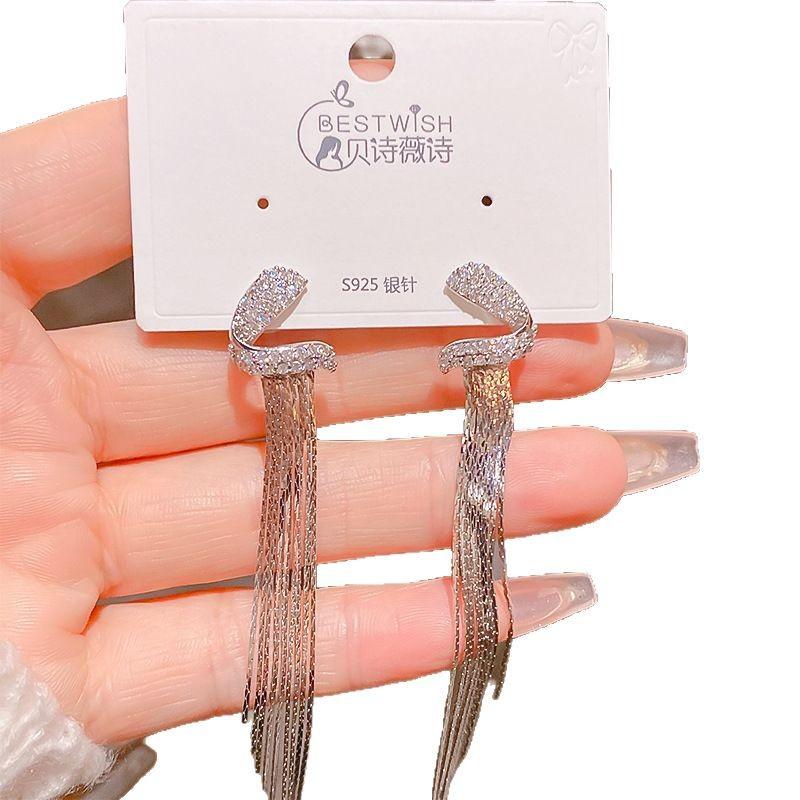2025 Nuevos Pendientes Elegantes de Moda Elegantes con Sentido del Diseño Borla Larga Pendientes de Diamantes para Rostro Delgado Pendientes de Alta Gama para Mujeres