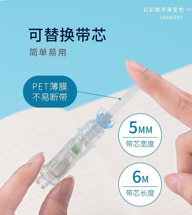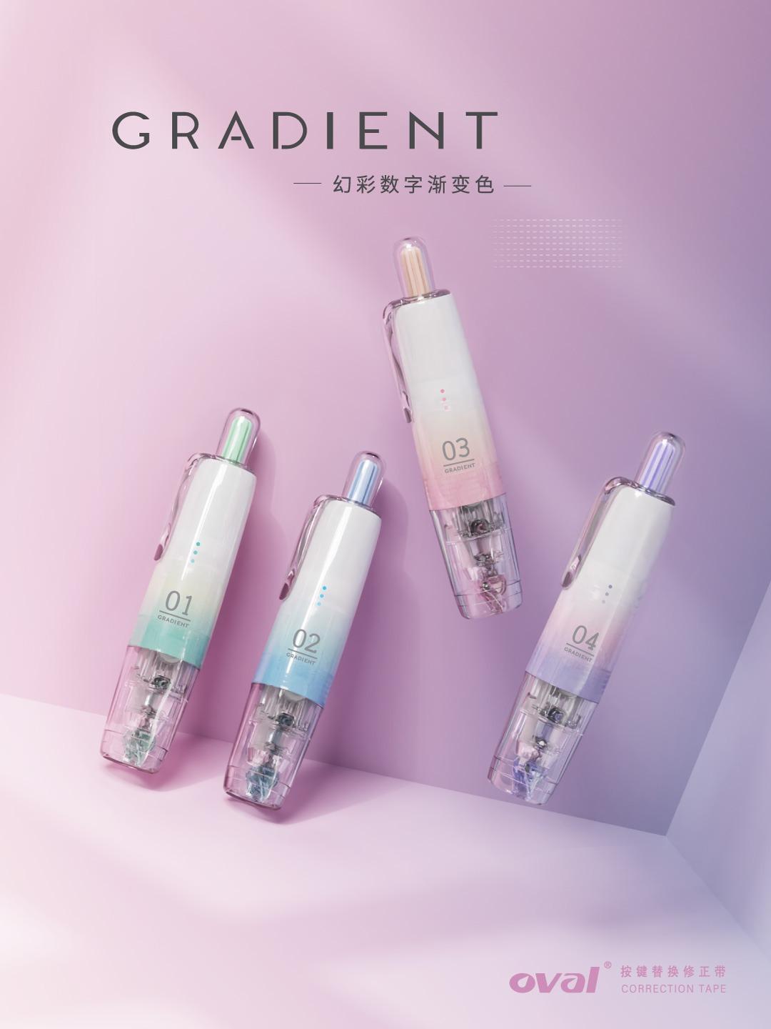 Cinta Correctora Ovalada de Taiwán Modelo Limitado Serie Degradada Cinta Correctora Tipo Push Núcleo Reemplazable Cinta Correctora