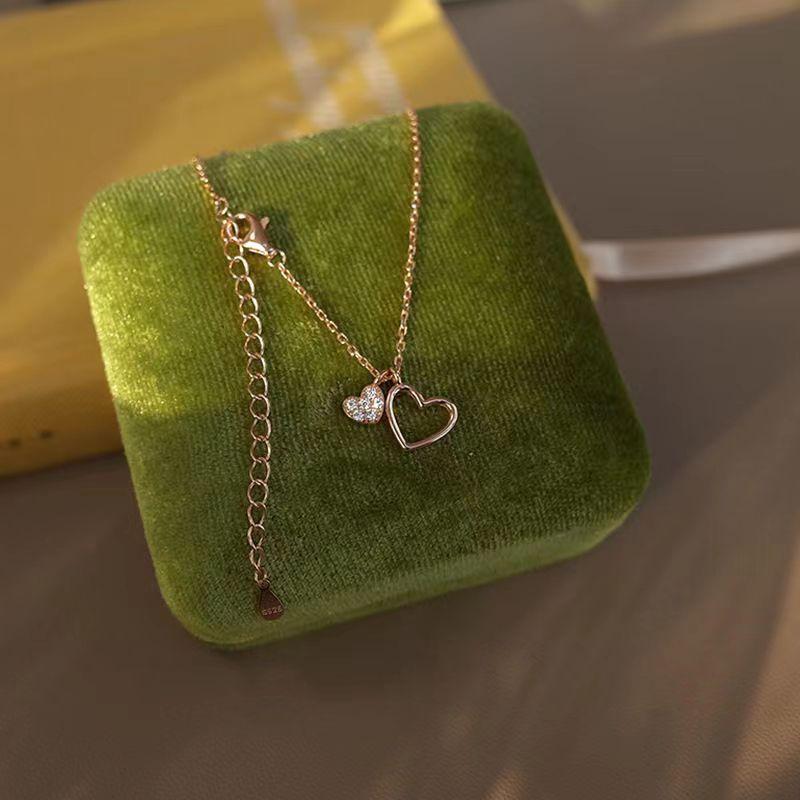 Collar de Amor Corazón a Corazón para Mujer Doble Corazón Lujo Ligero Nicho Cadena Clavícula 2023 Nuevo Regalo para Novia Colgante en forma de Corazón
