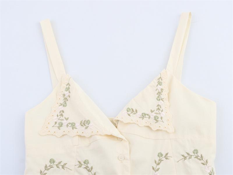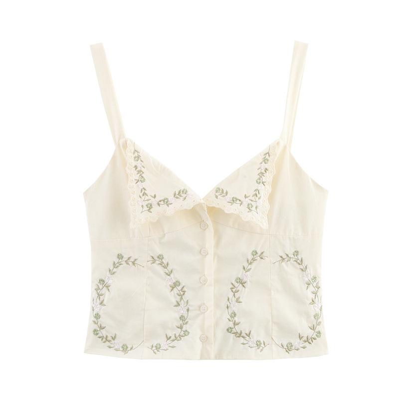 Camisola de Verano para Mujer Bordada de Un Solo Botón Chaleco Casual Personalizado Estilo Urbano Europeo y Americano Nuevo Estilo Transfronterizo