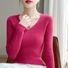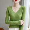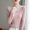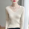 Primera Línea Listo para Usar Mezcla de Lana 2025 Otoño/Invierno Nuevo Suéter Tejido Base de Capa Interior de Color Sólido con Cuello en V Suelto Corto para Mujer