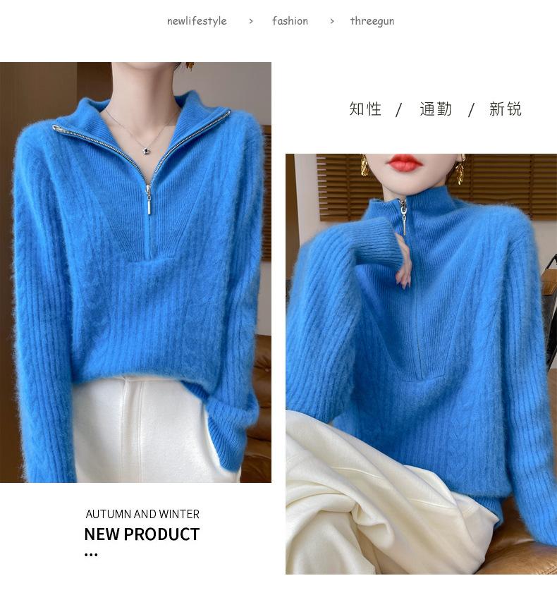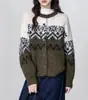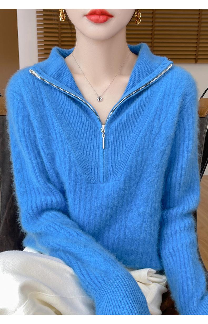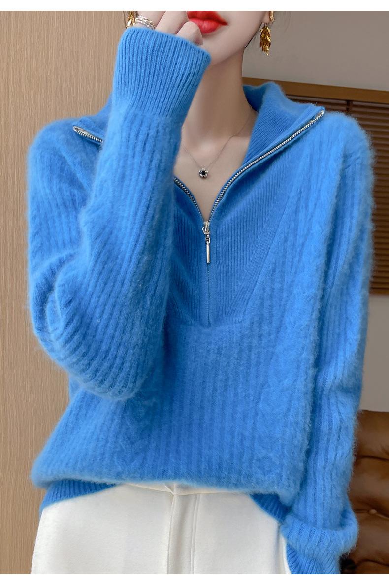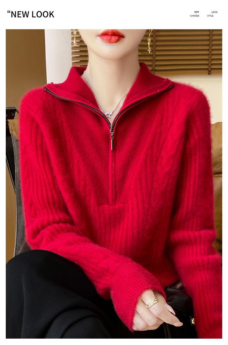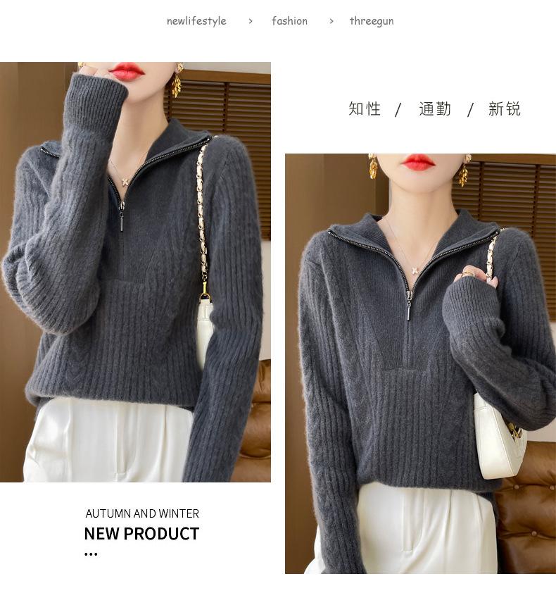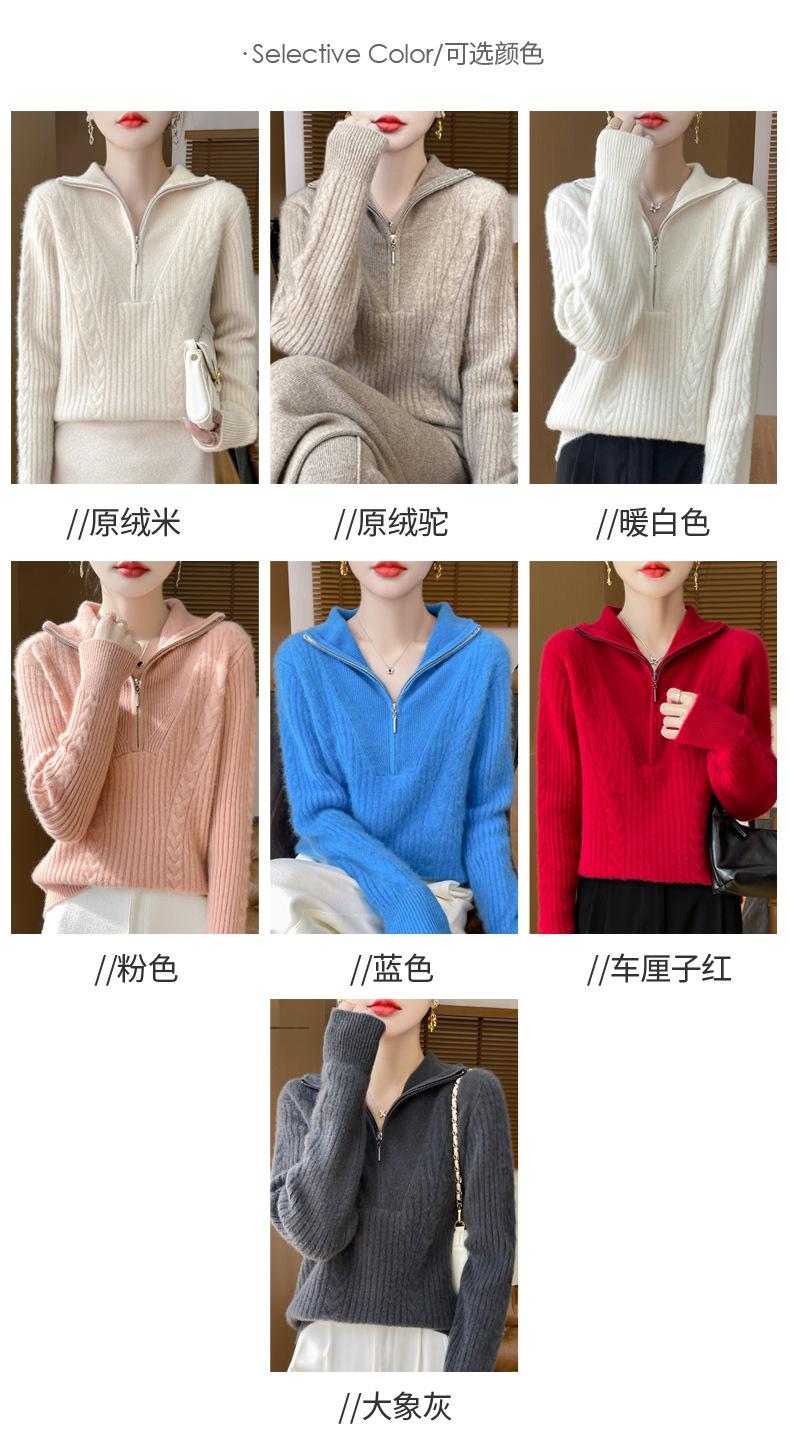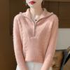 Nuevo Otoño/Invierno para Mujer Diseño Holgado Lana Pura Solapa Media Cremallera Top Suéter Tejido de Cable