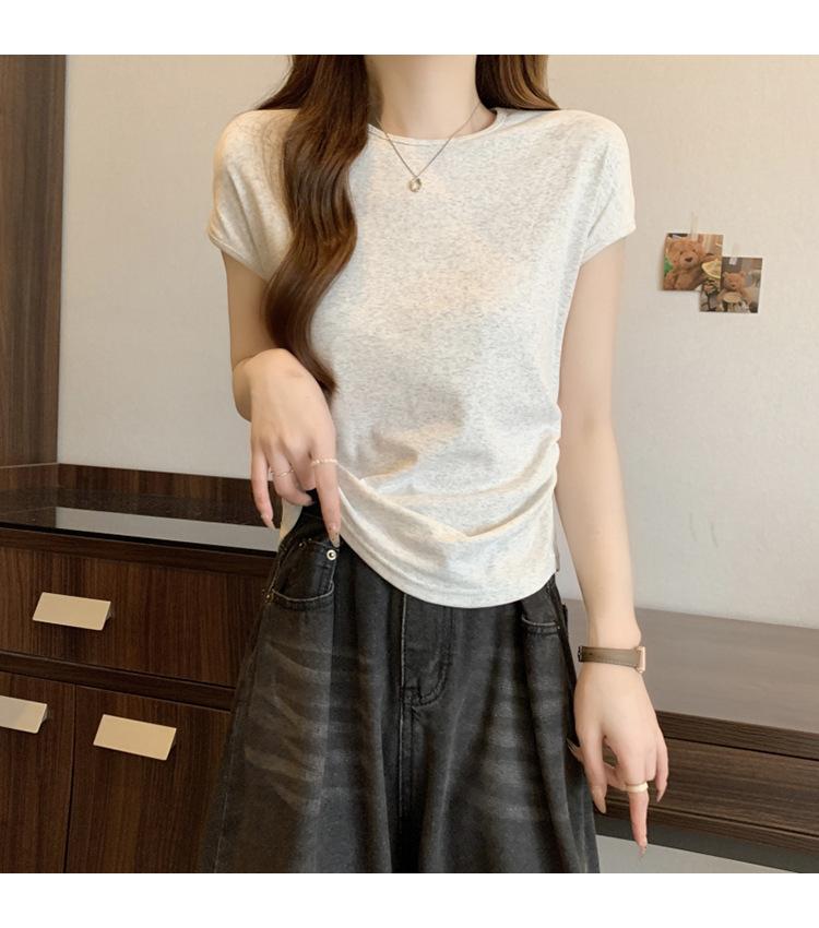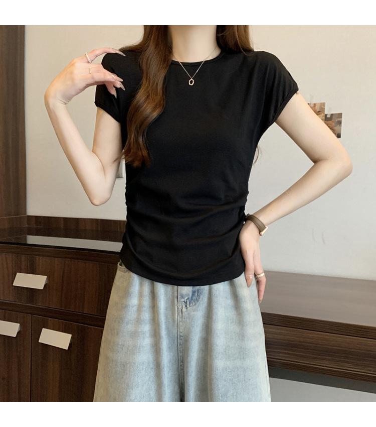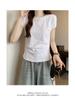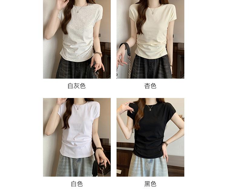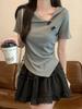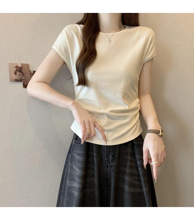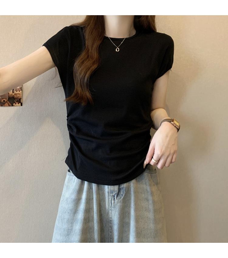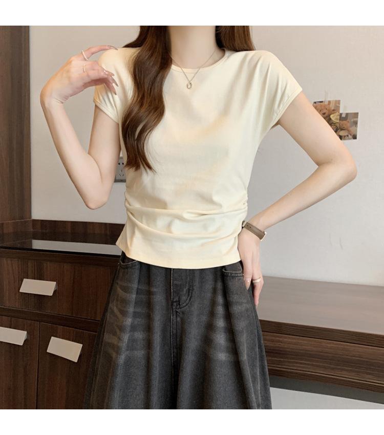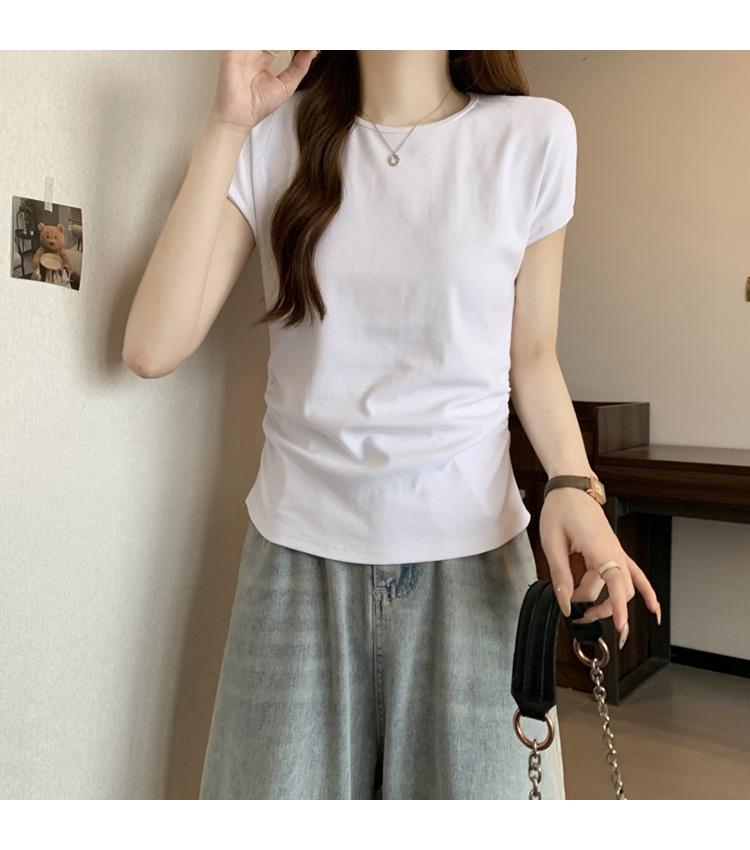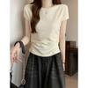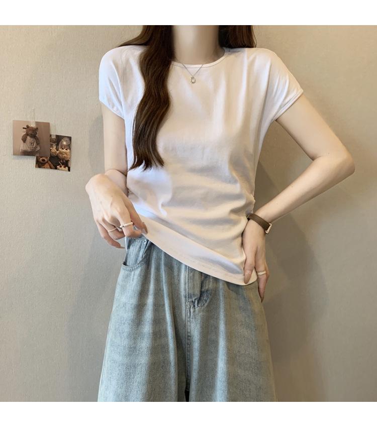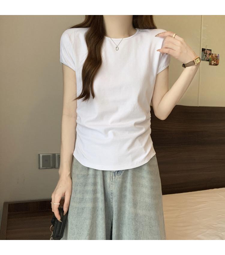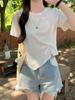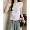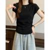 Ropa de mujer, camiseta de manga corta de algodón puro con hombro recto para mujer