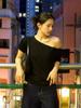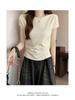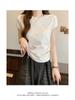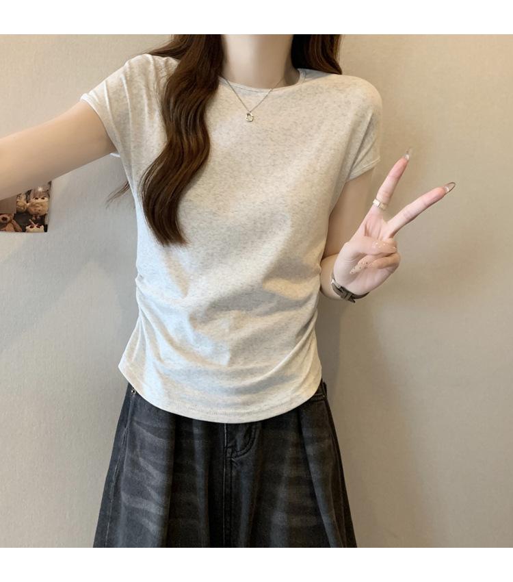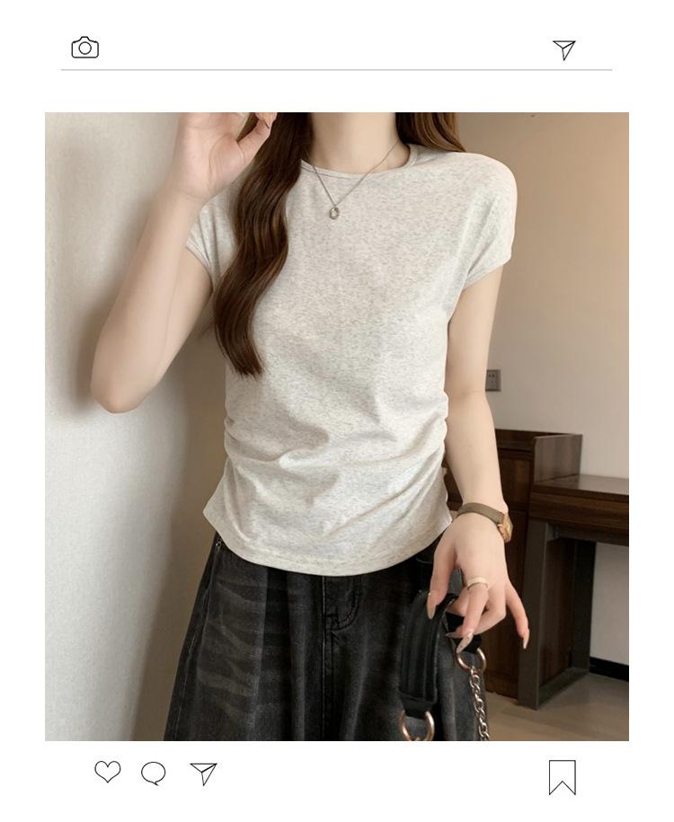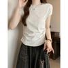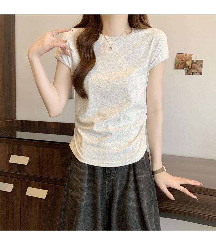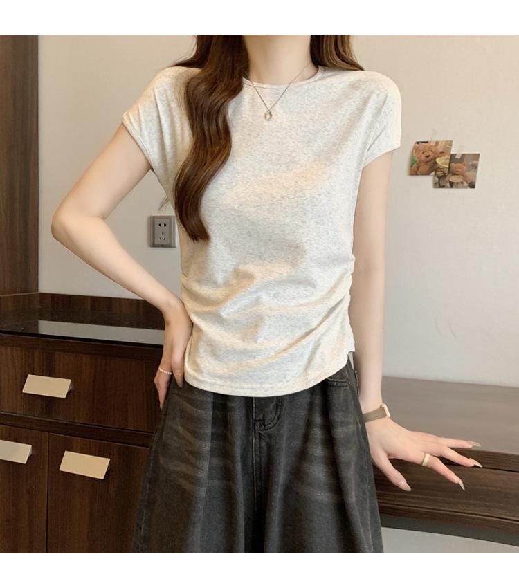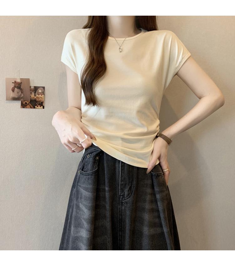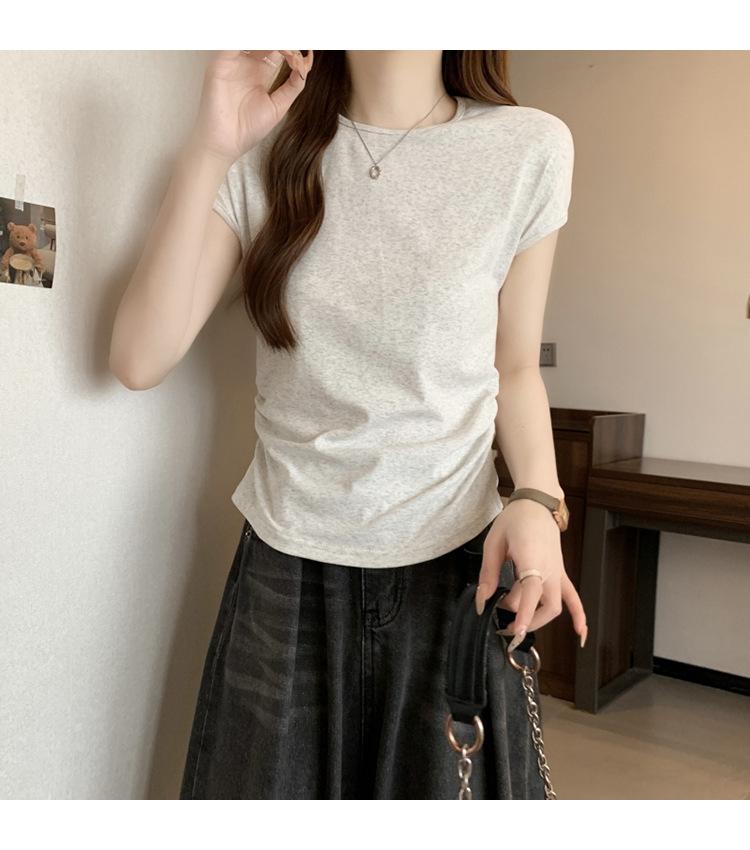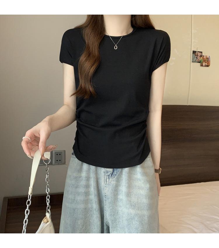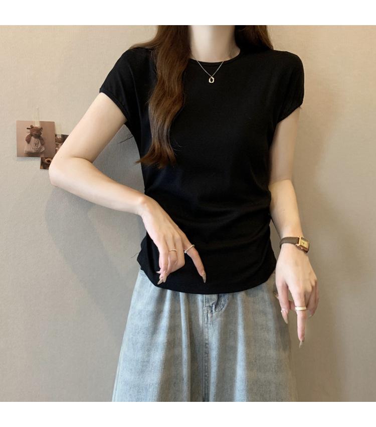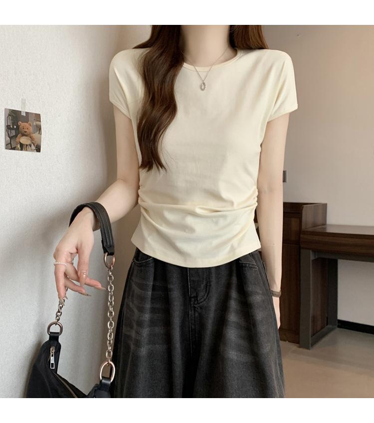 Ropa de mujer, camiseta de manga corta de algodón puro con hombro recto para mujer