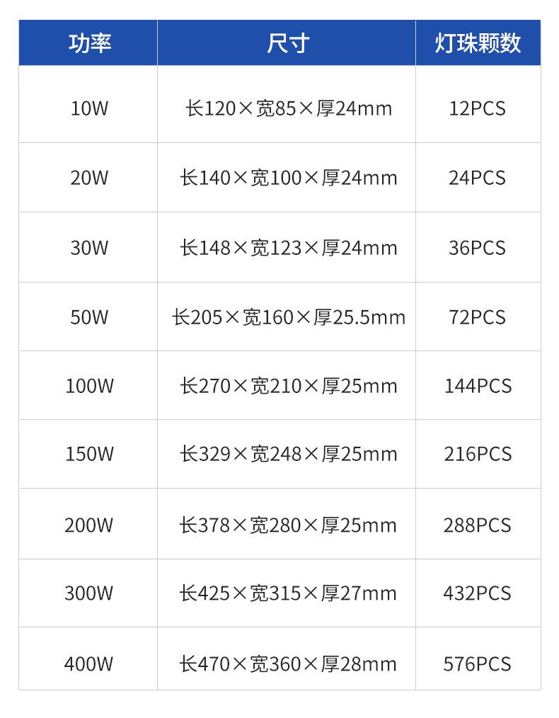 10w, 20w, 30w, 50w, 100w, 150w, 200w, 300w, 400w