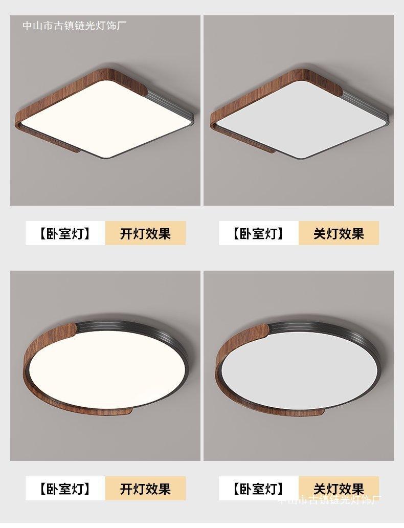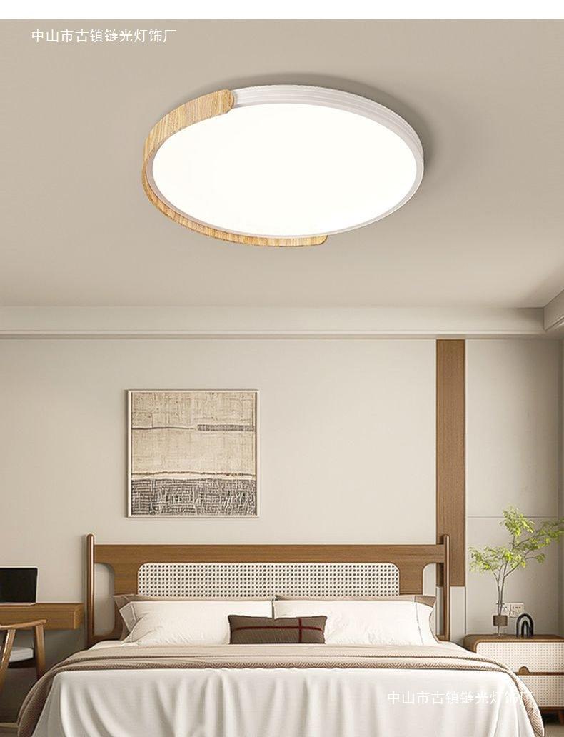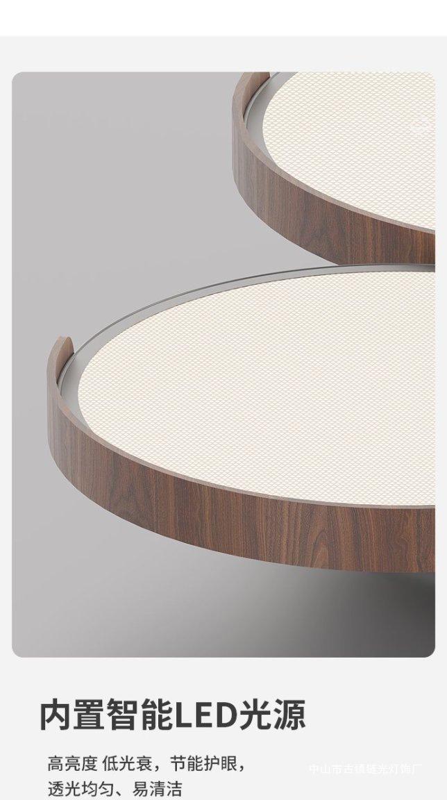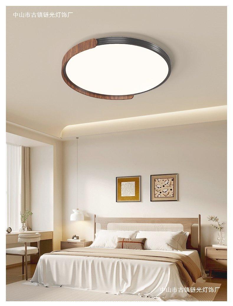 Luz de Dormitorio Estilo Italiano Minimalista Espectro Completo Protección Ocular Luz de Techo Redonda para Estudio Moderna Simple Color Nogal Luz para Sala de Estar