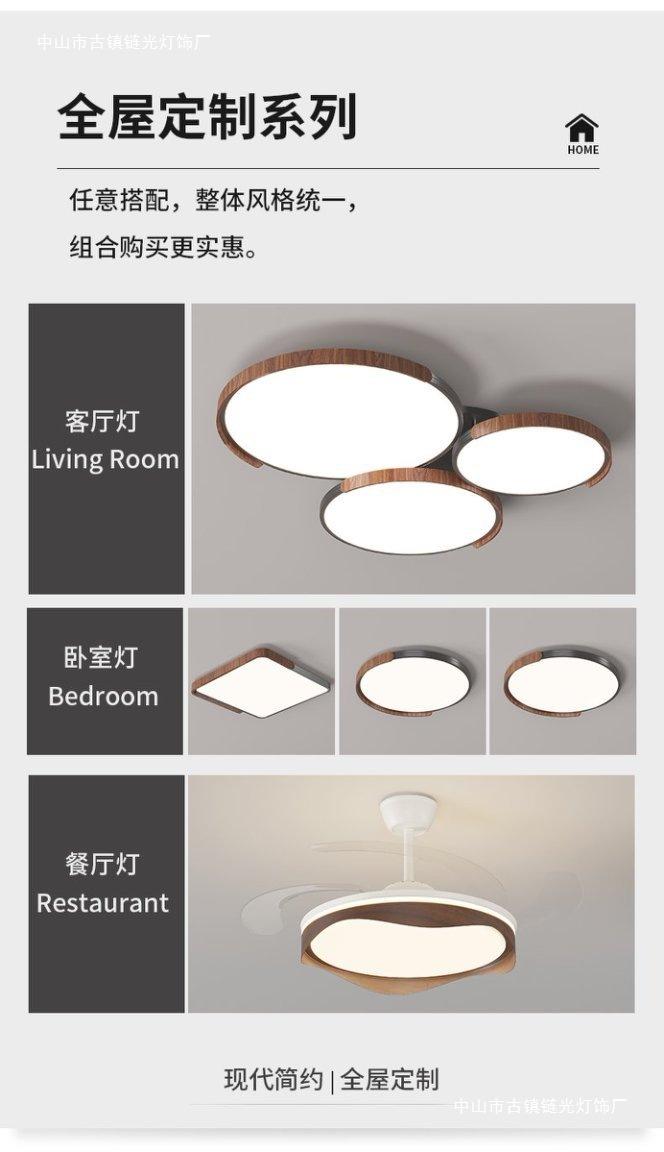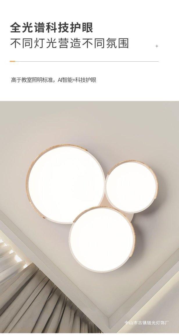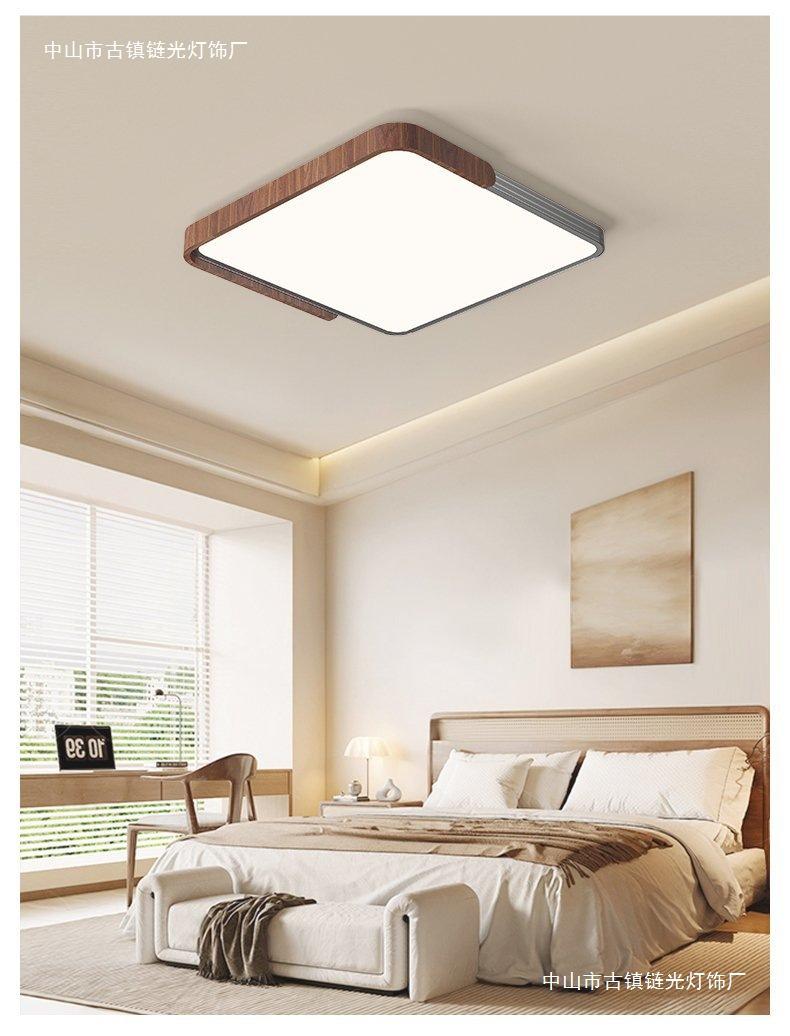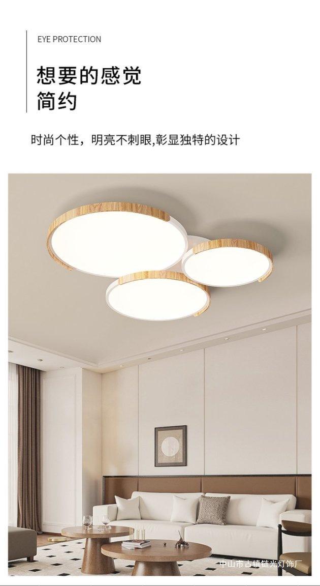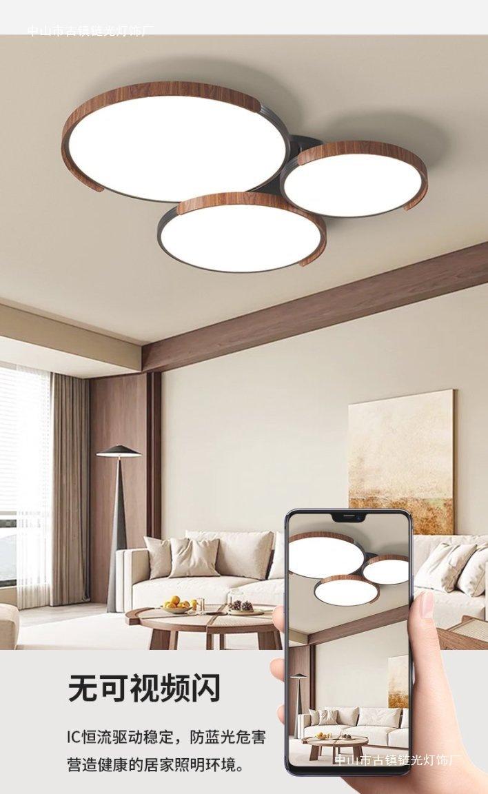 Luz de Dormitorio Estilo Italiano Minimalista Espectro Completo Protección Ocular Luz de Techo Redonda para Estudio Moderna Simple Color Nogal Luz para Sala de Estar