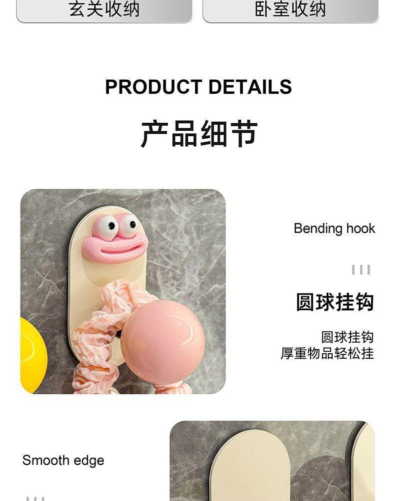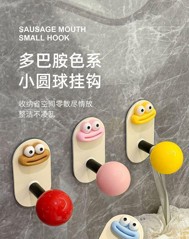 Gancho Adhesivo Bola Dopamina Dibujos Animados Gancho Sin Perforaciones Dormitorio Estudiantil Colgante de Pared Fuerte Plástico Gancho Colgador para Abrigo