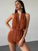 2025 Exportación Europea y Americana Nueva Ropa de Mujer Ebay Amazon Mono Sexy Halter Escote en V Profundo Pantalones Casuales