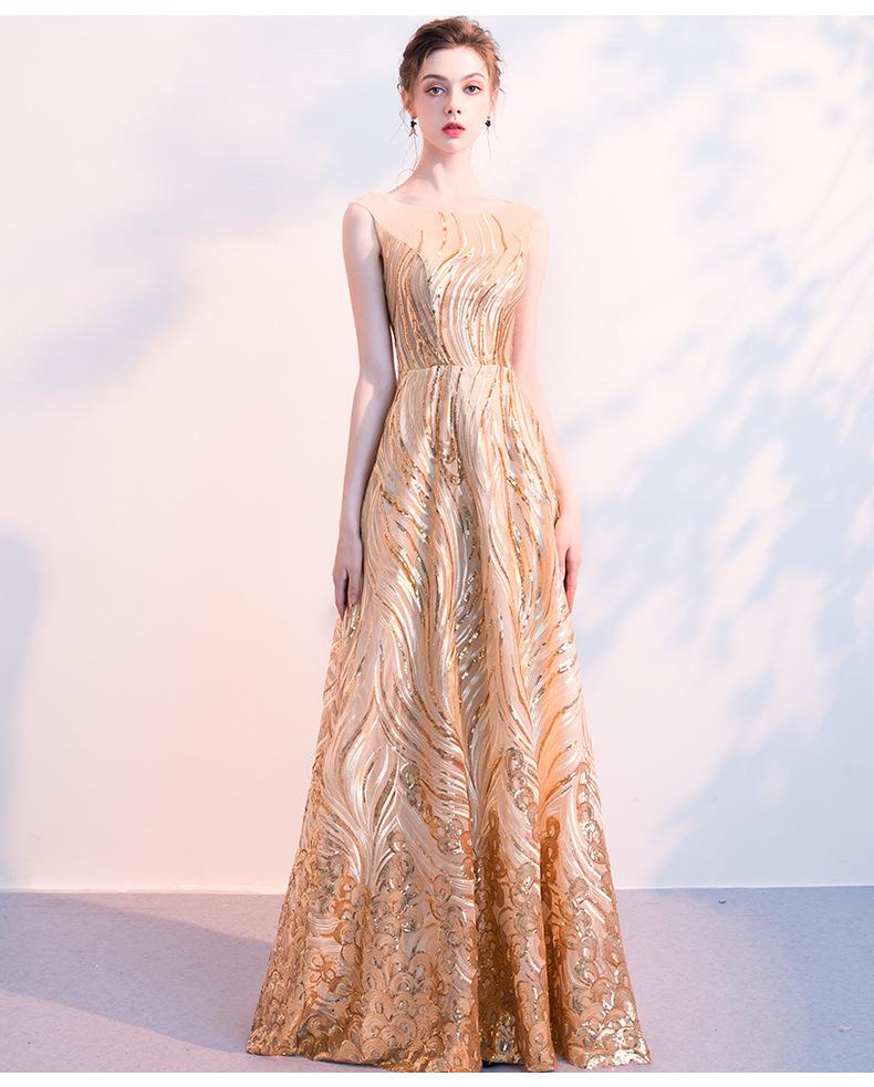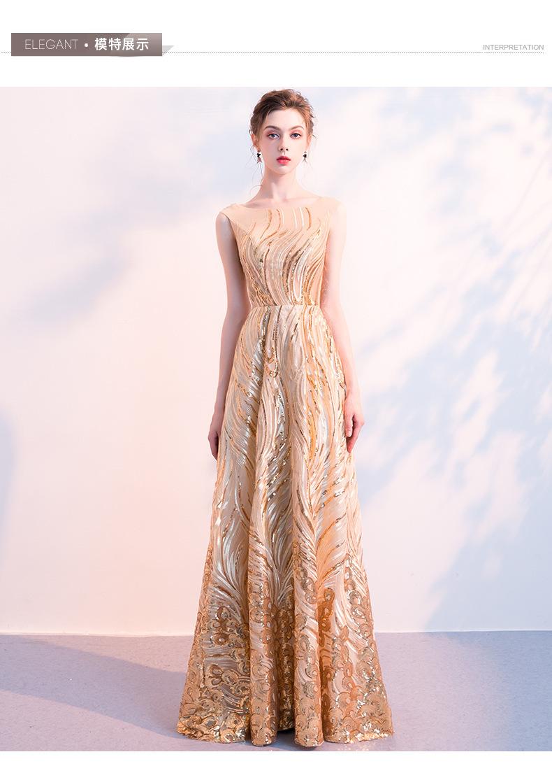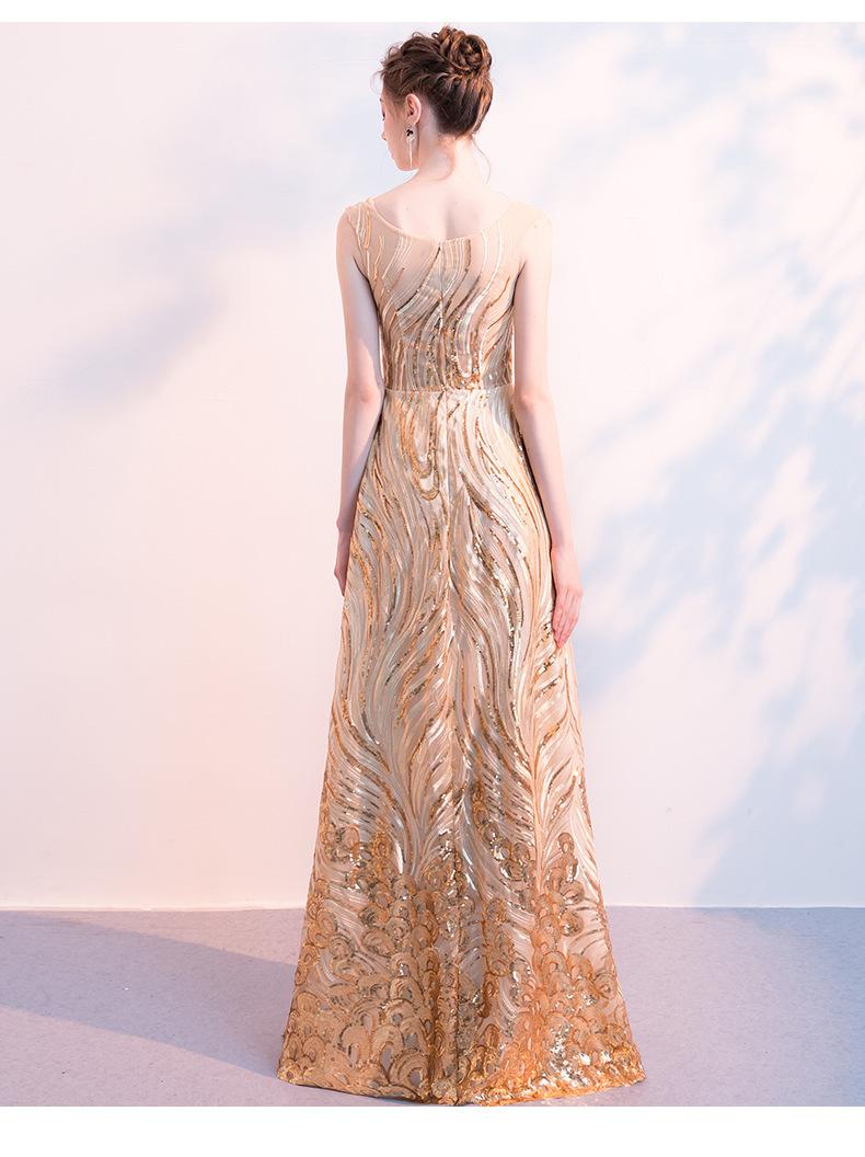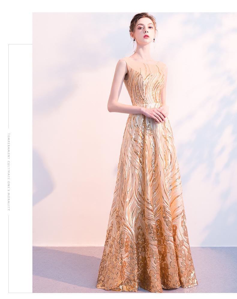 Vestido de Noche de Lentejuelas Doradas para Mujer 2025 Nuevo Estilo Noble y Elegante Largo Elegante Vestido de Anfitriona de Banquete