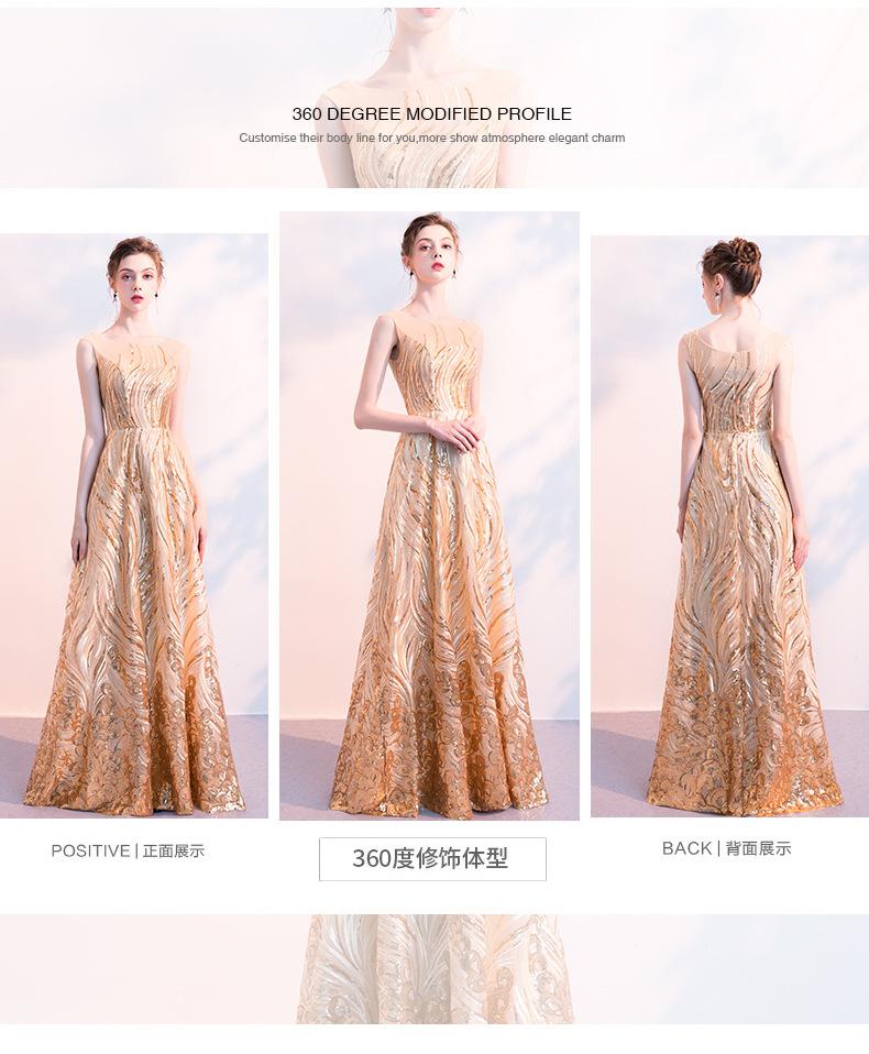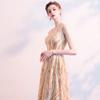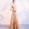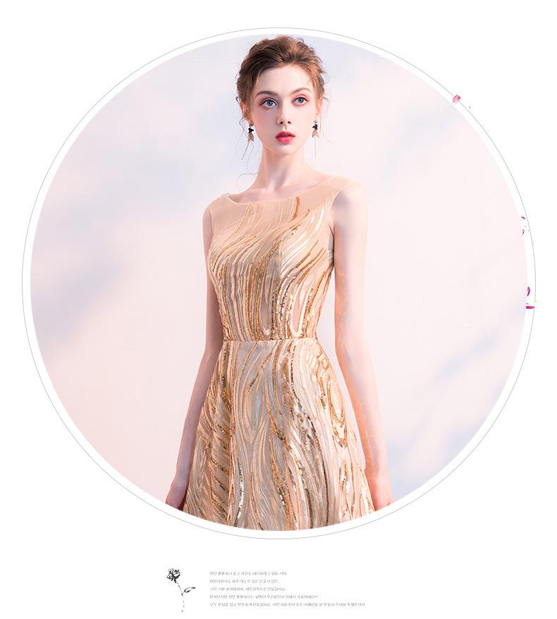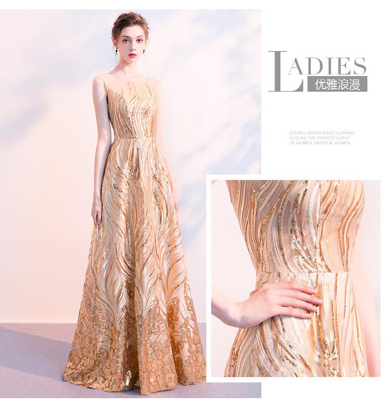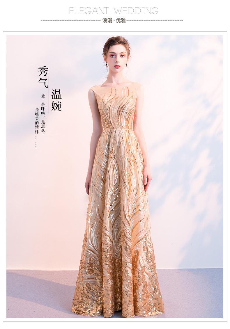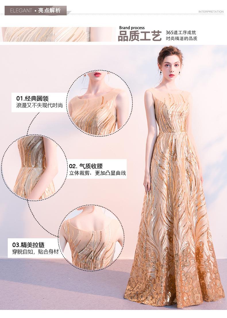 Vestido de Noche de Lentejuelas Doradas para Mujer 2025 Nuevo Estilo Noble y Elegante Largo Elegante Vestido de Anfitriona de Banquete