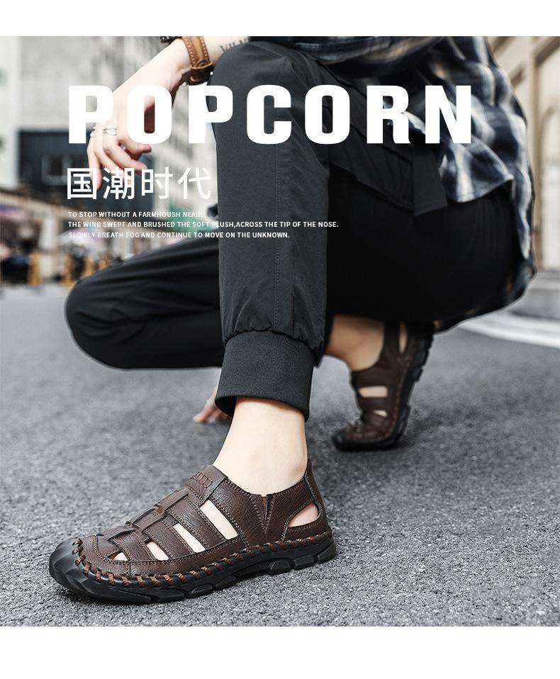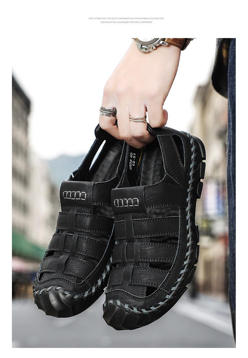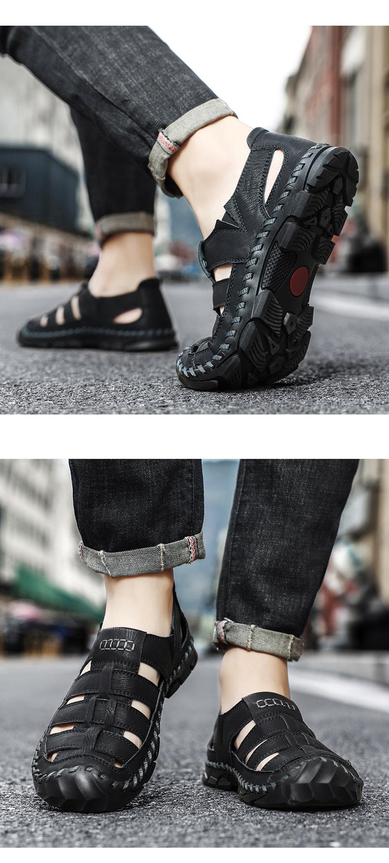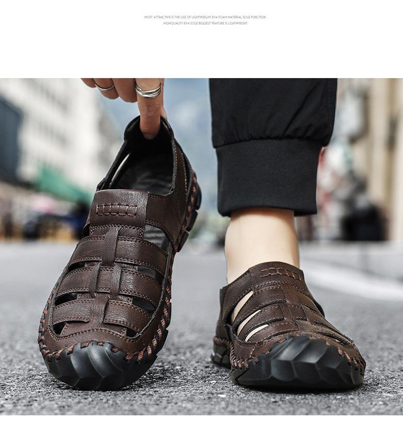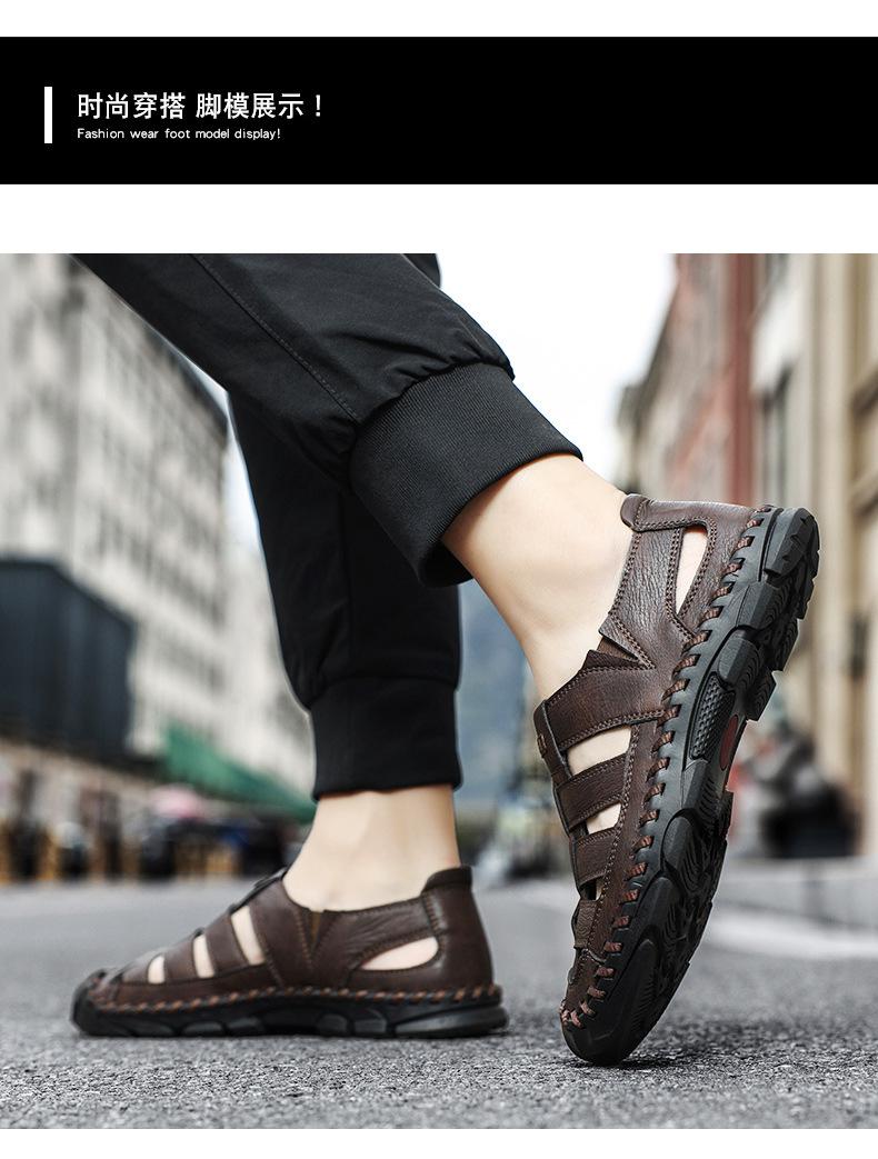 Sandalias de Verano de Cuero Exterior para Hombre Talla Grande Transfronteriza Sandalias Casuales para Exterior para Hombre Zapatos de Playa Cosidos a Mano de Dedo a Dedo