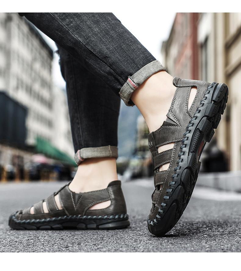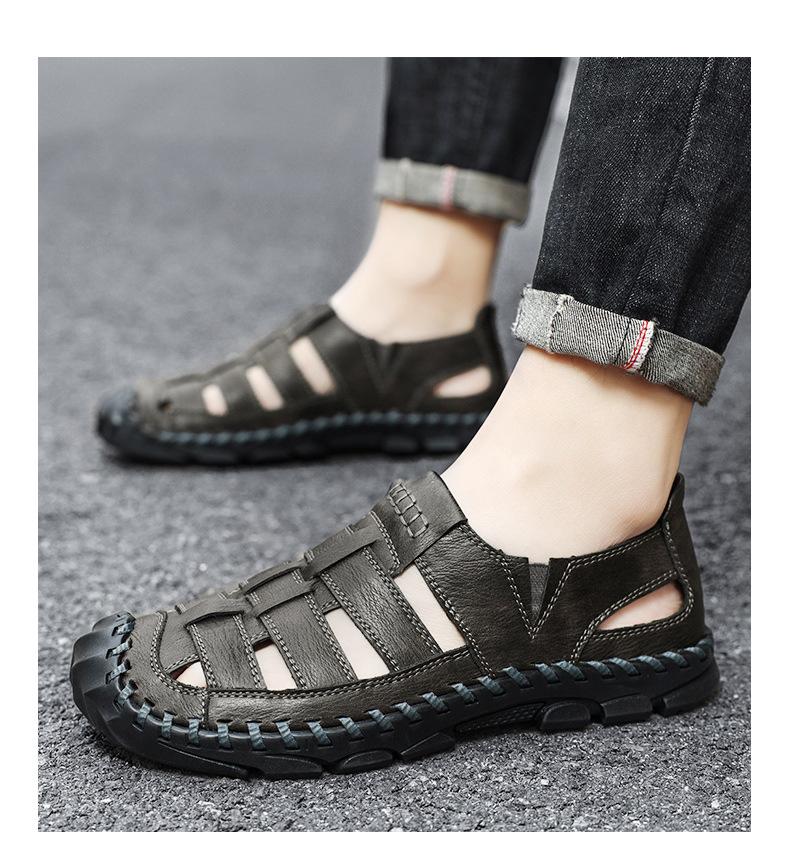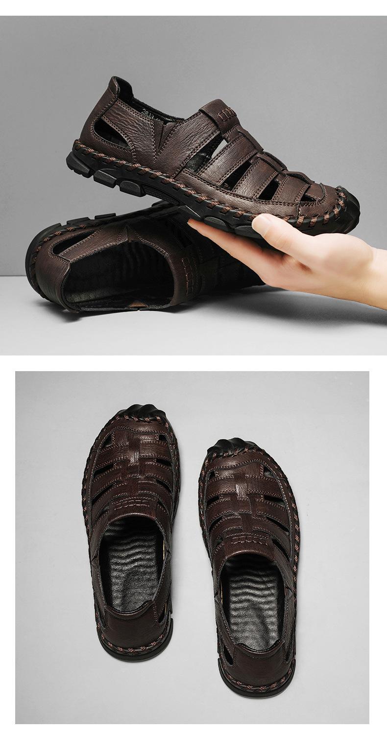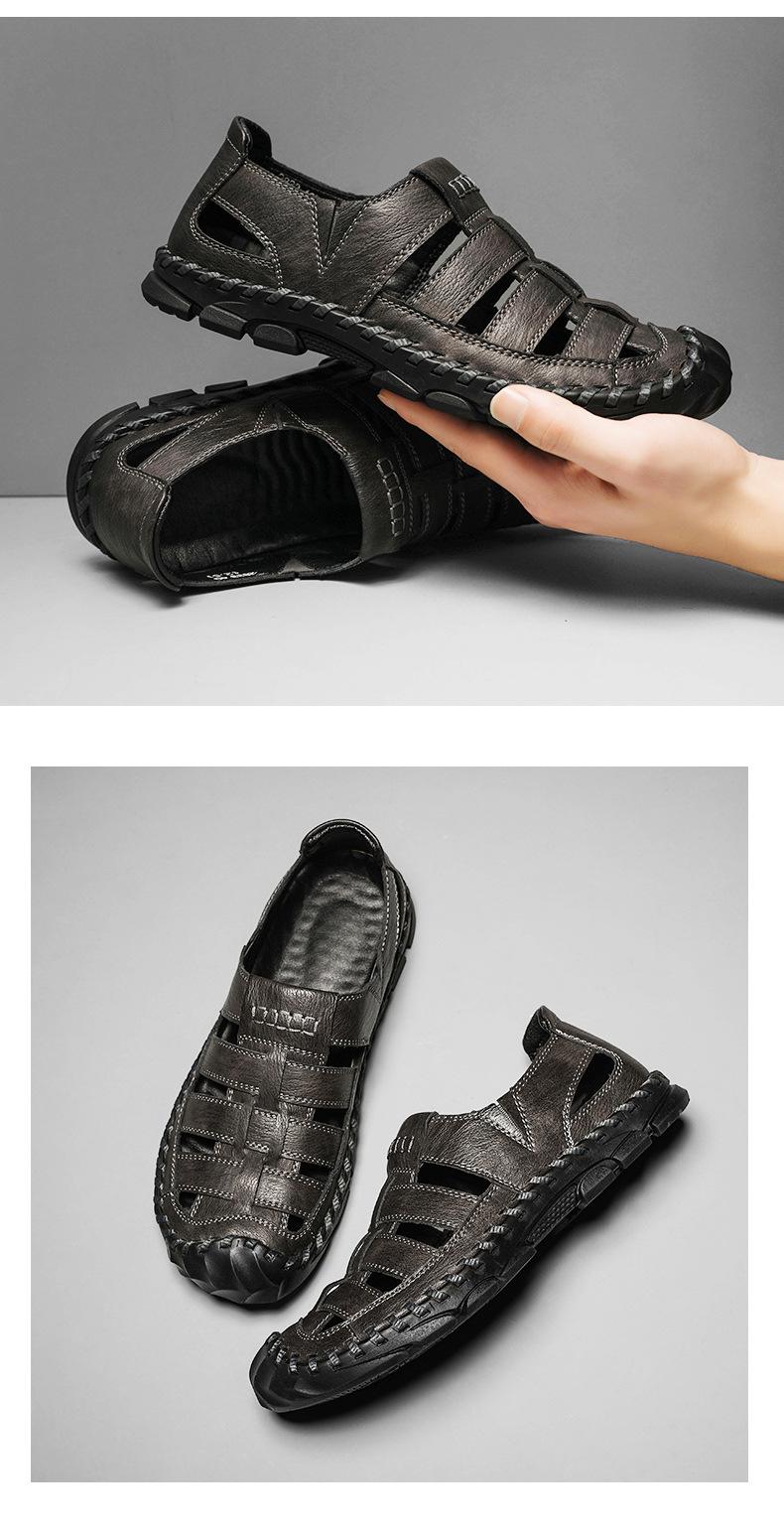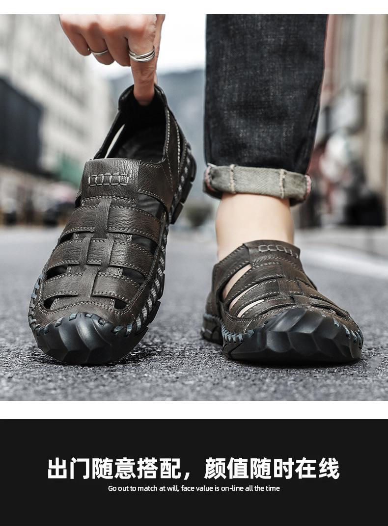 Sandalias de Verano de Cuero Exterior para Hombre Talla Grande Transfronteriza Sandalias Casuales para Exterior para Hombre Zapatos de Playa Cosidos a Mano de Dedo a Dedo