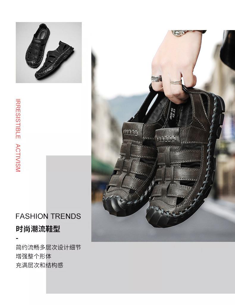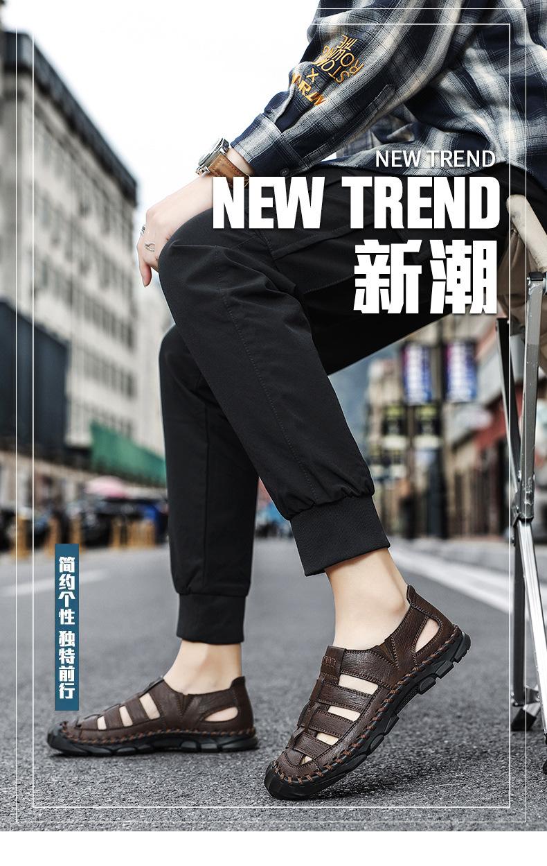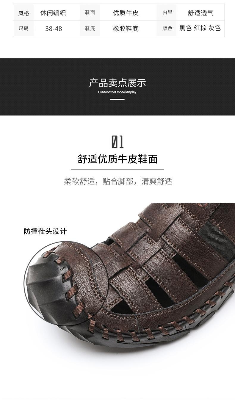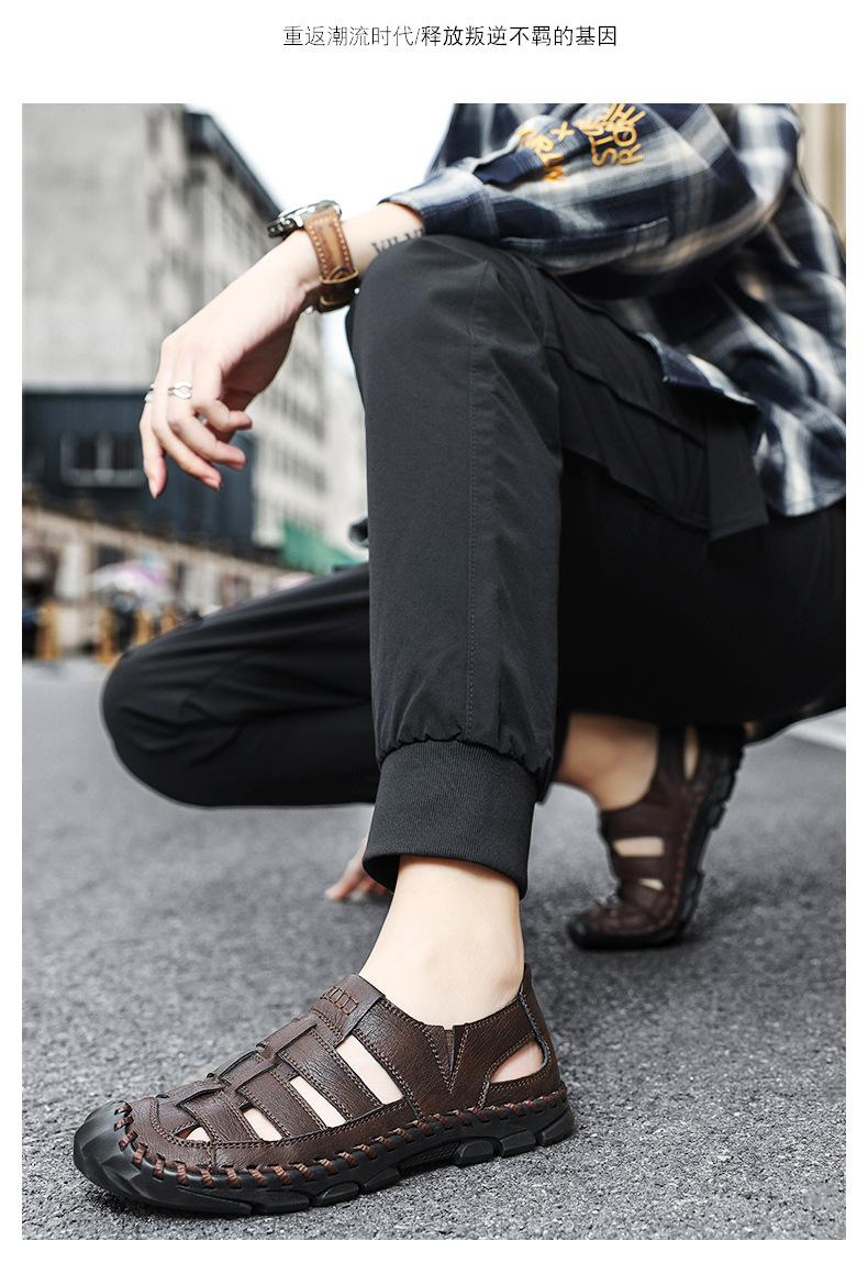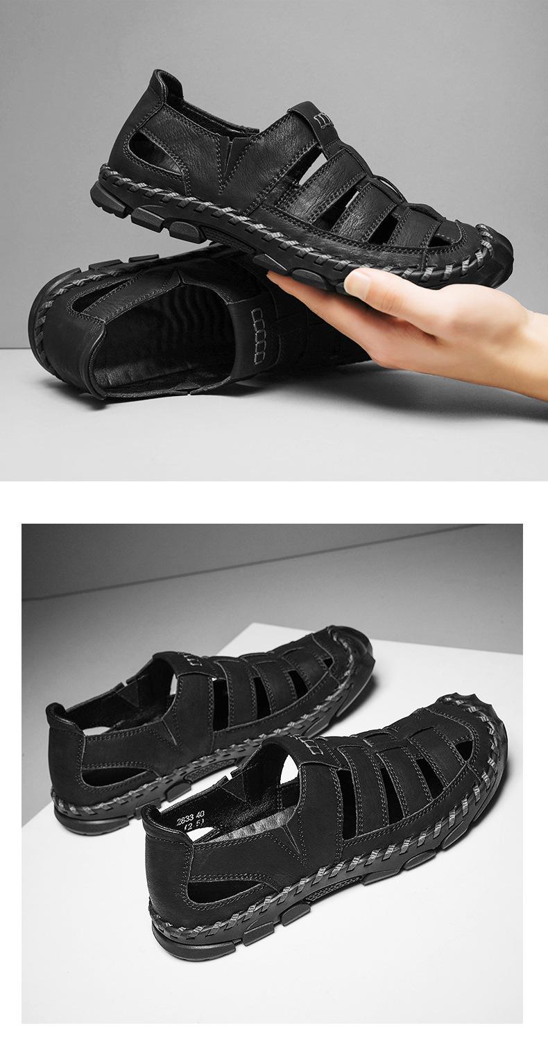 Sandalias de Verano de Cuero Exterior para Hombre Talla Grande Transfronteriza Sandalias Casuales para Exterior para Hombre Zapatos de Playa Cosidos a Mano de Dedo a Dedo