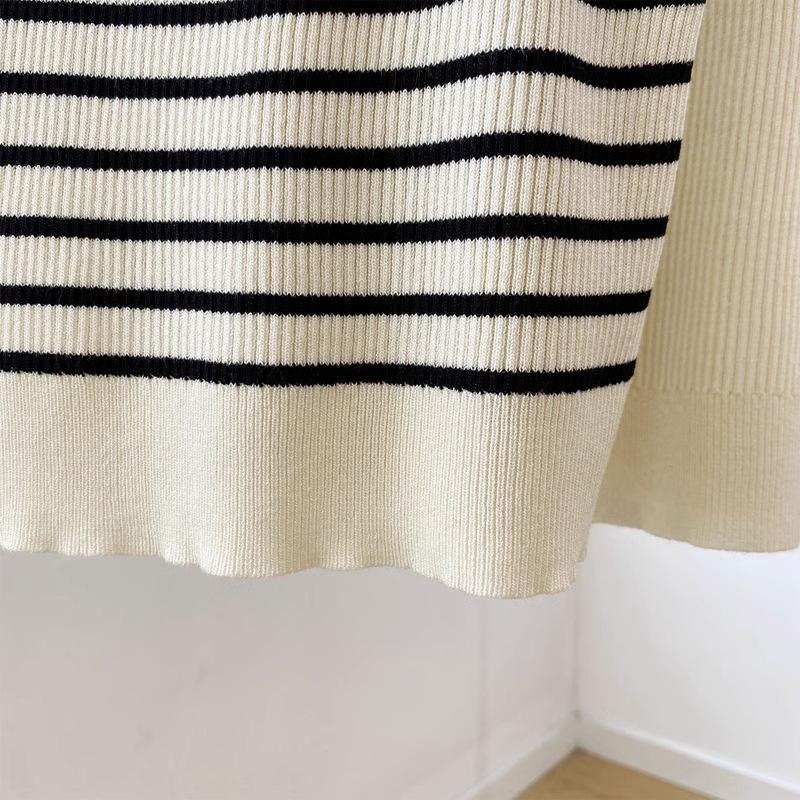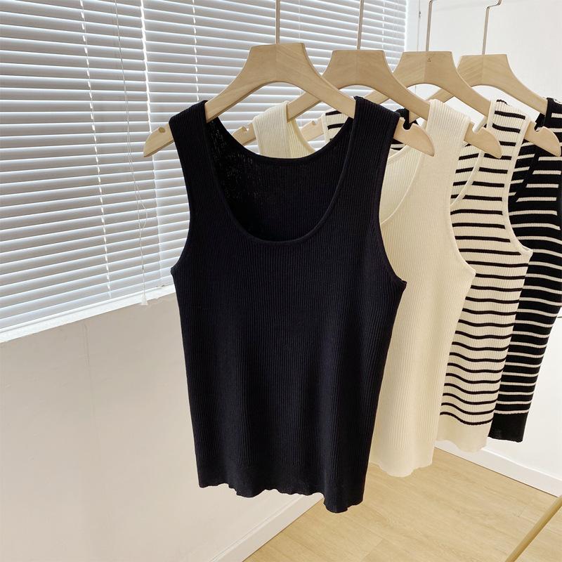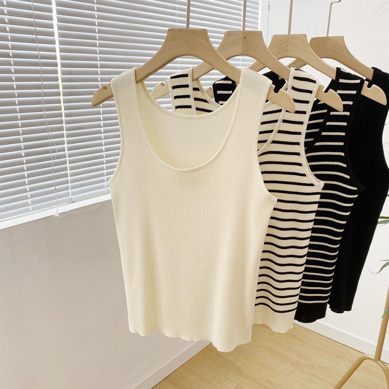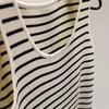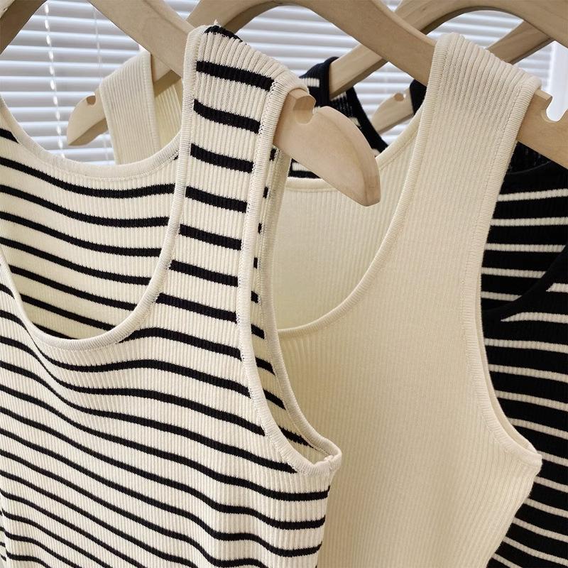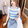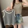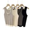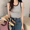 Chaleco de Punto Fino de Verano Estilo Coreano a Rayas de Canalé Cuello Redondo Color en Contraste Sin Mangas con Tirantes Top de Punto Suave y Elástico