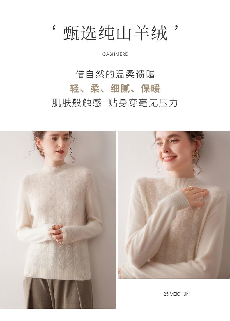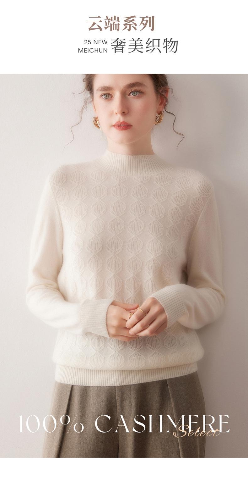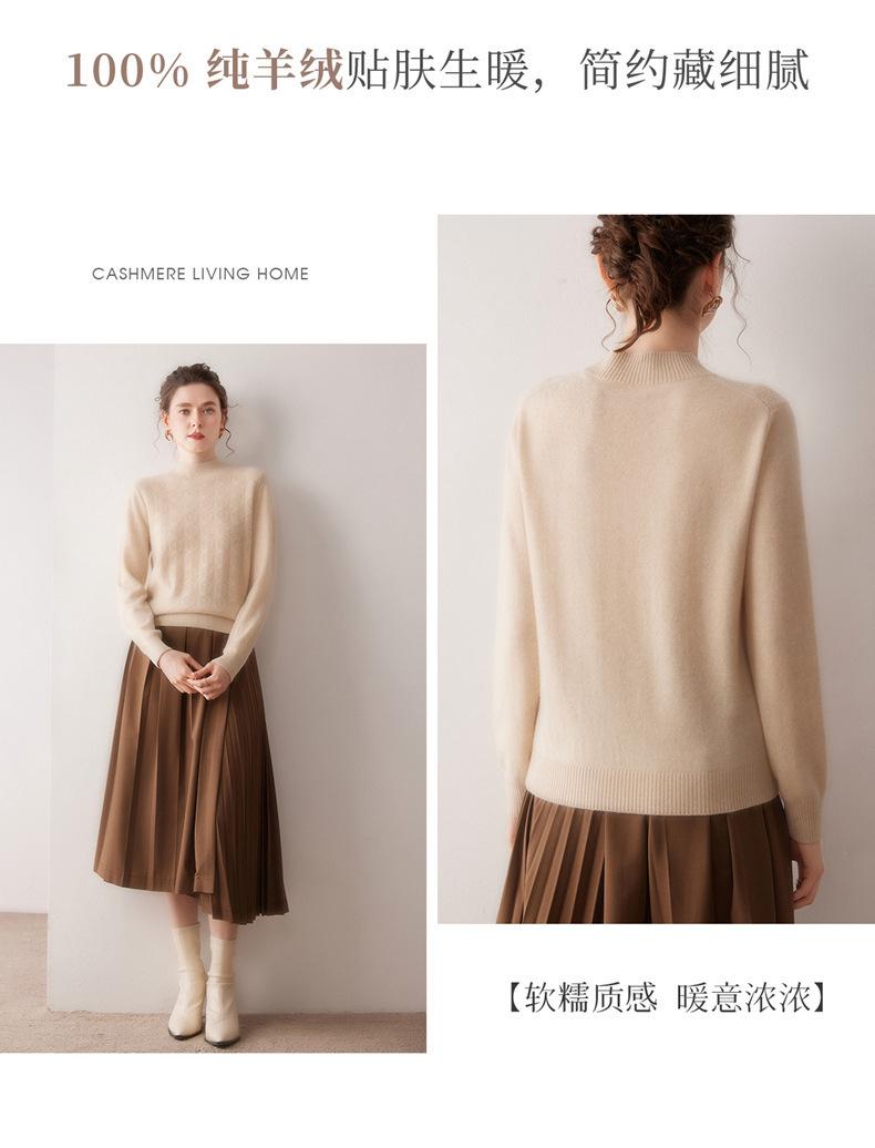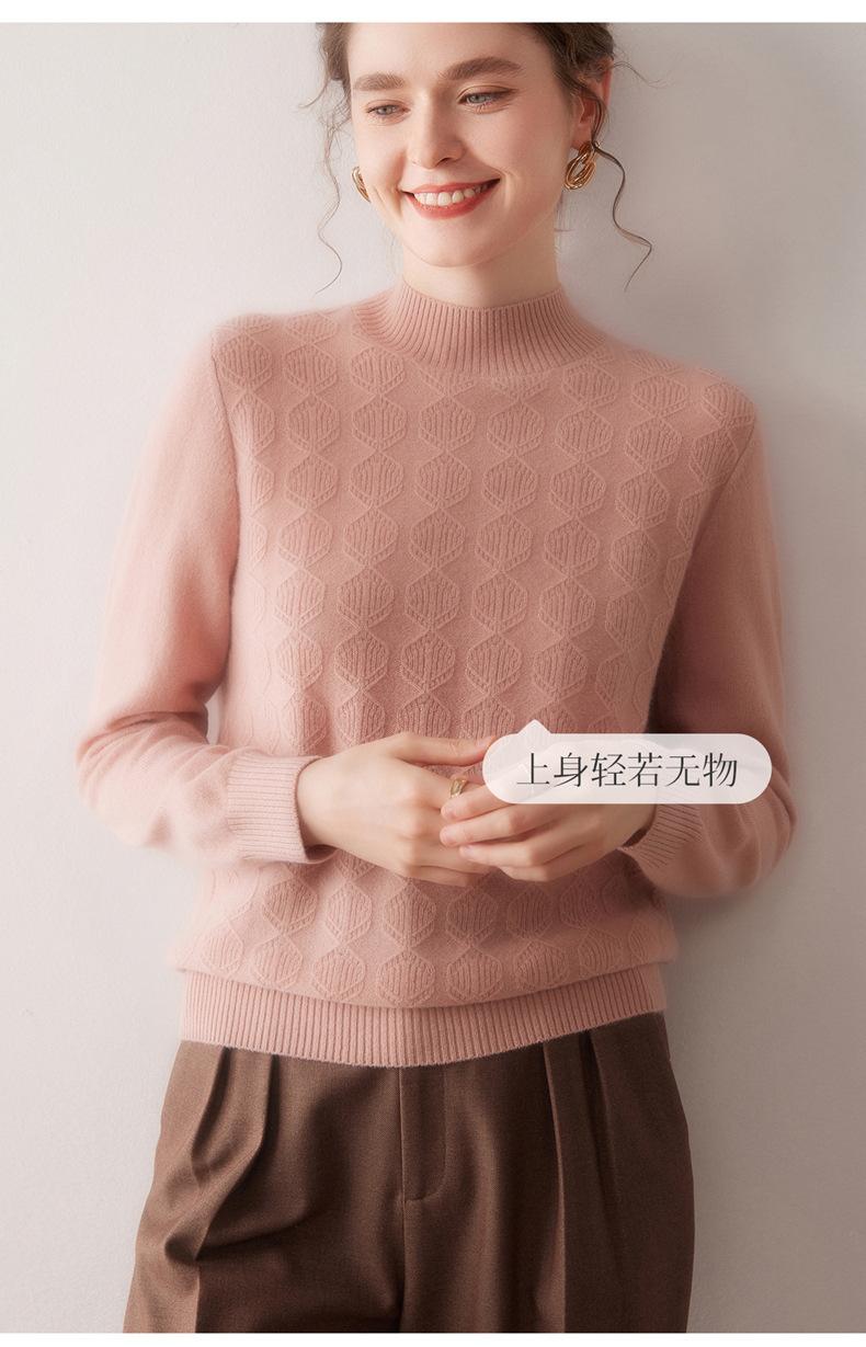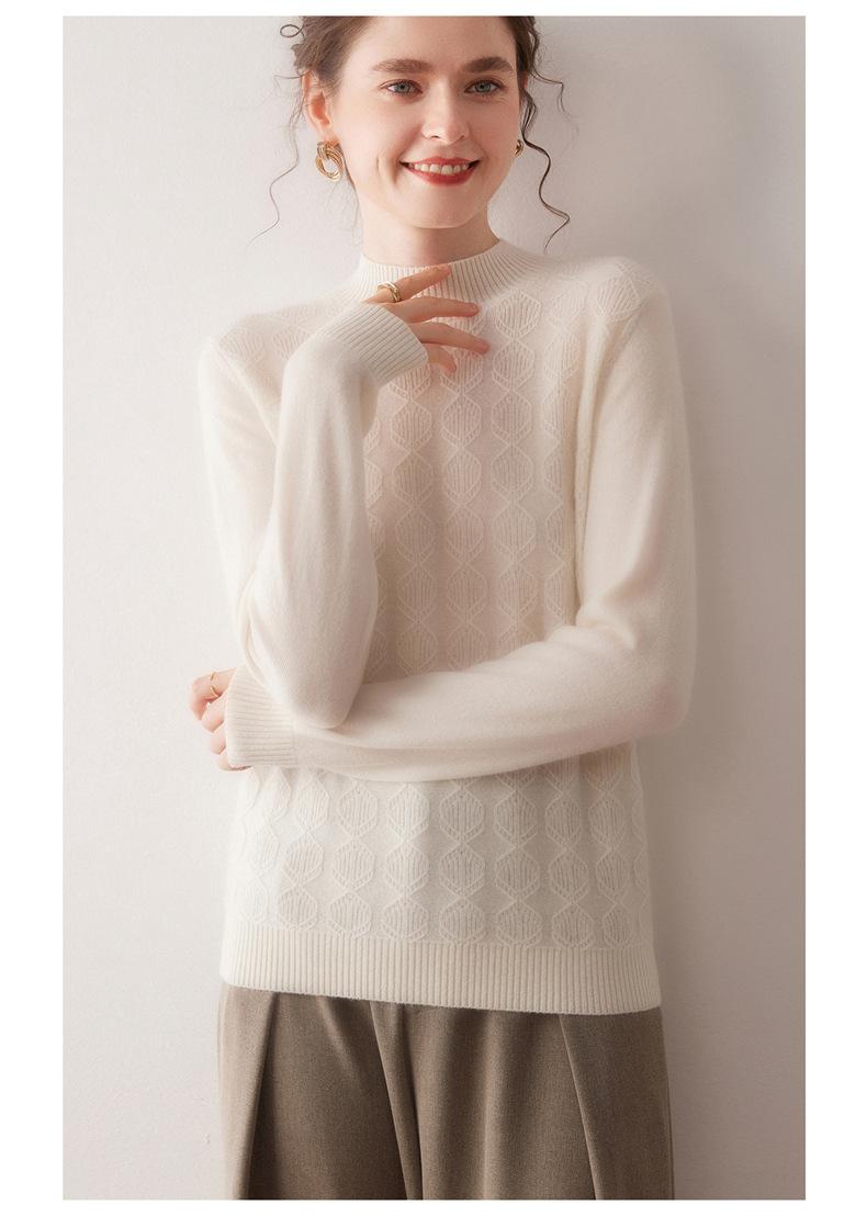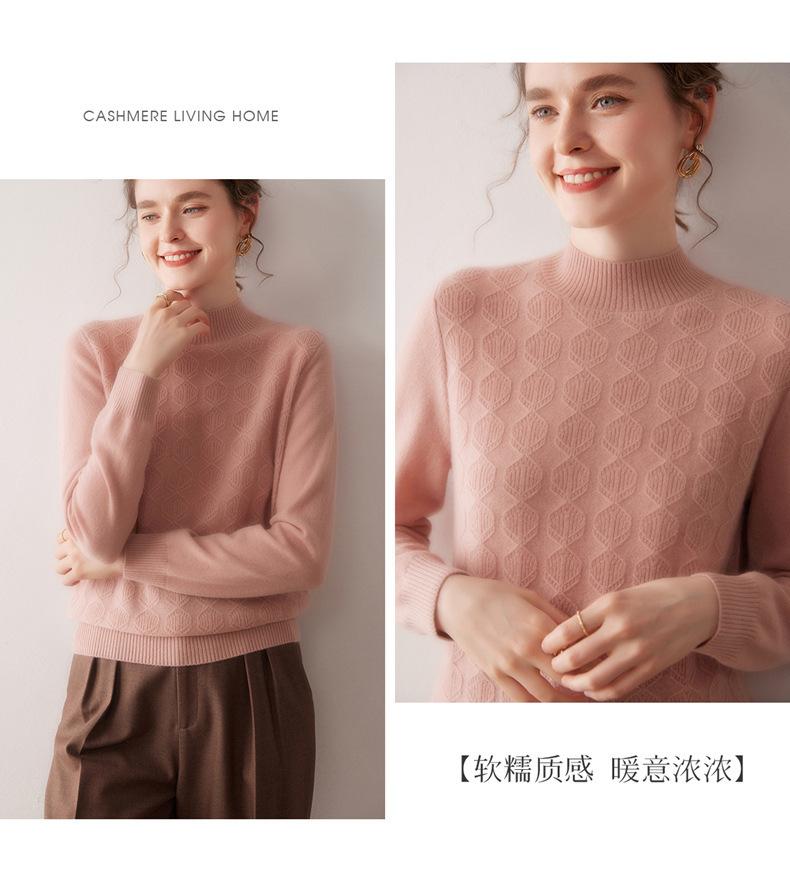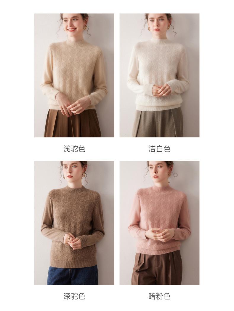 Suéter de Cachemira de Cuello Medio Alto Nuevo Otoño/Invierno para Mujer 100% Cachemira Pura Manga Larga Jersey Moda Tejido Suéter Base