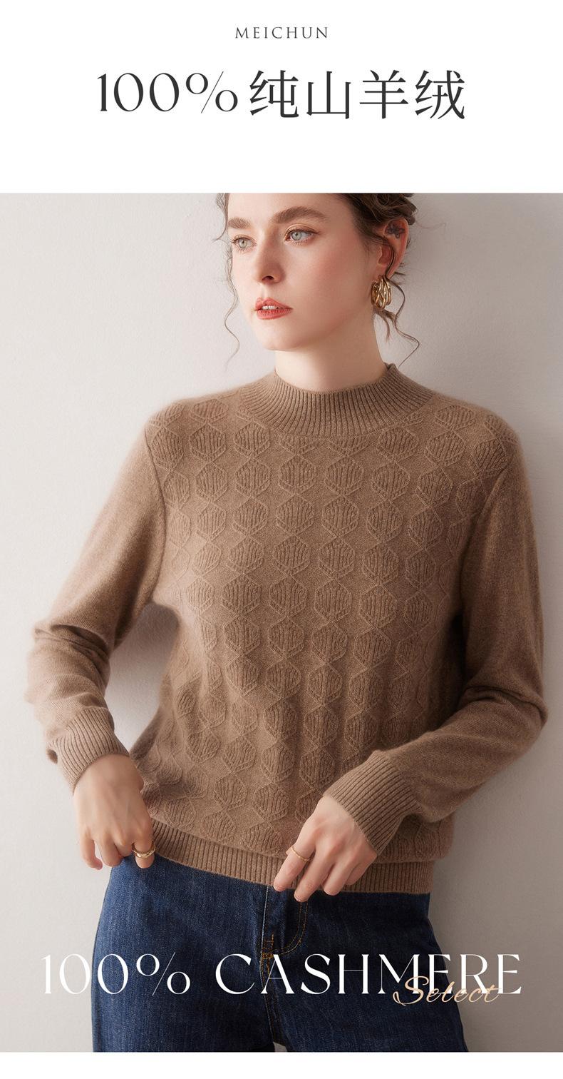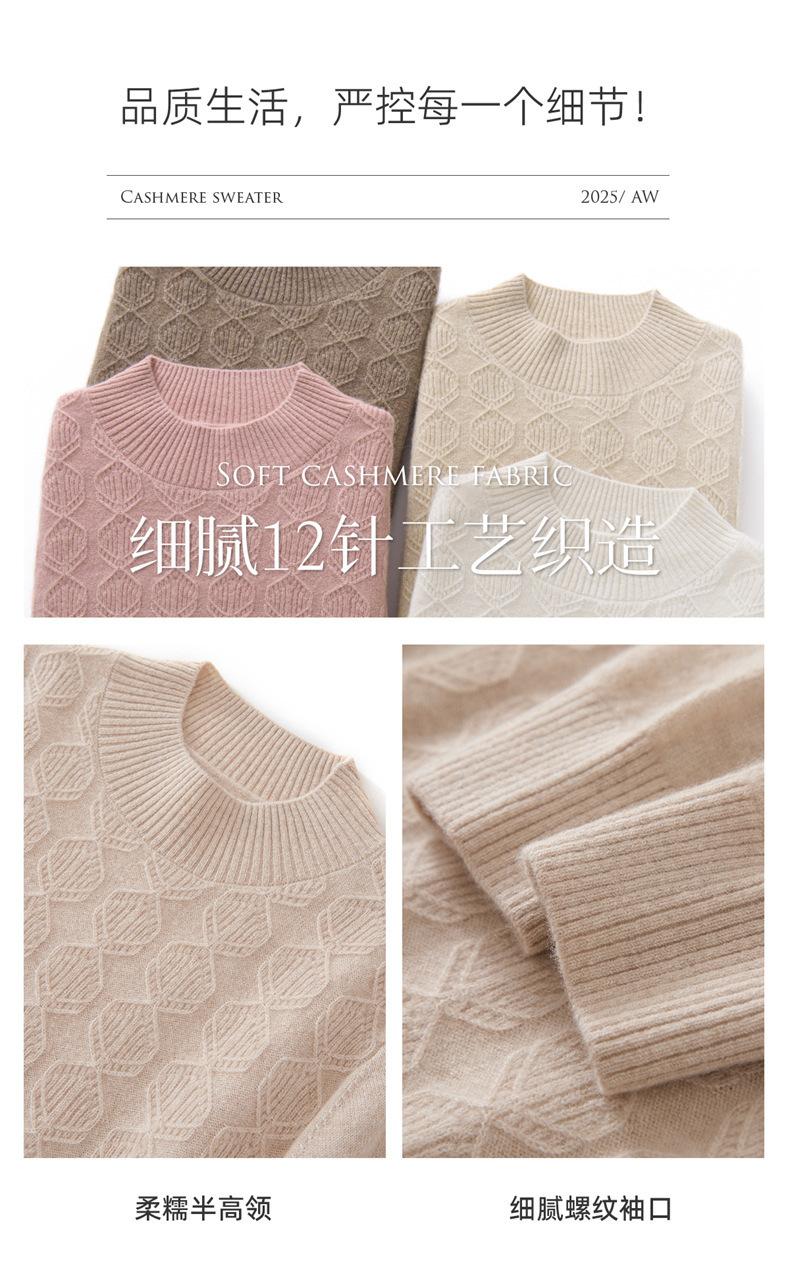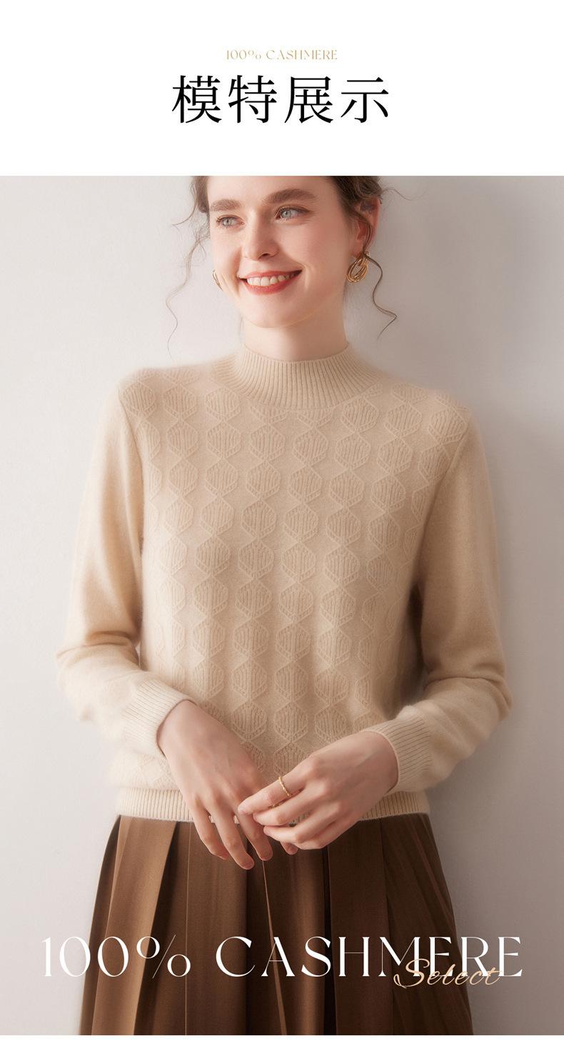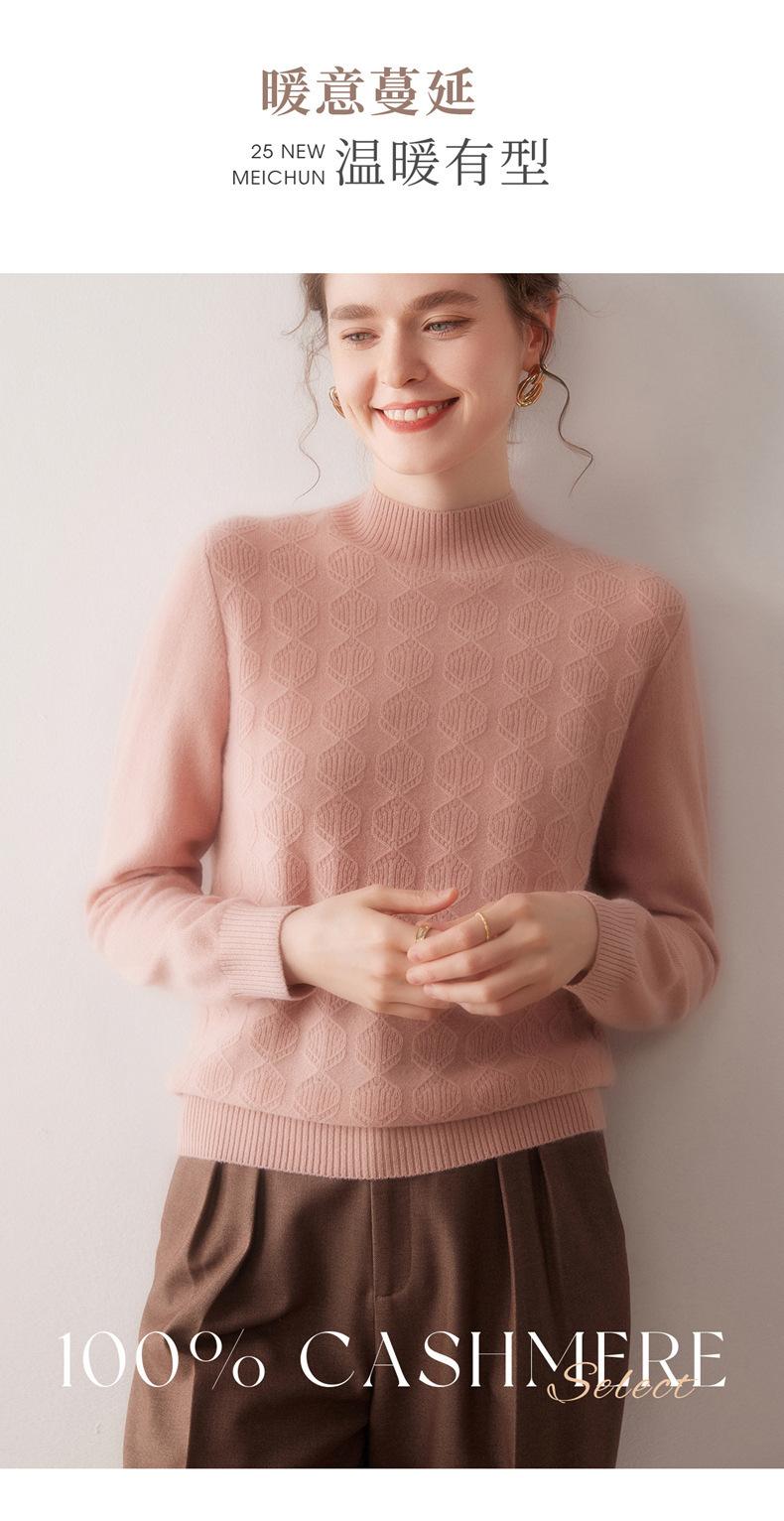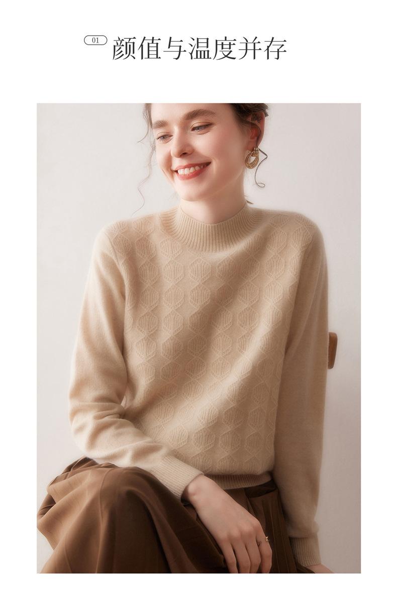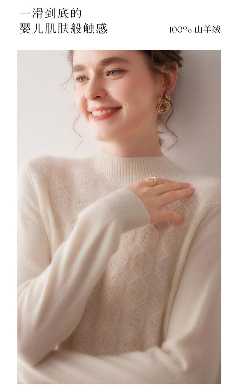 Suéter de Cachemira de Cuello Medio Alto Nuevo Otoño/Invierno para Mujer 100% Cachemira Pura Manga Larga Jersey Moda Tejido Suéter Base