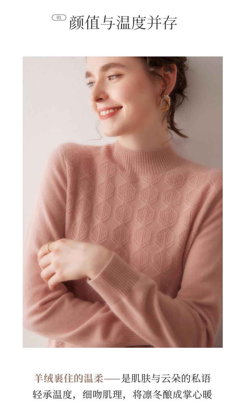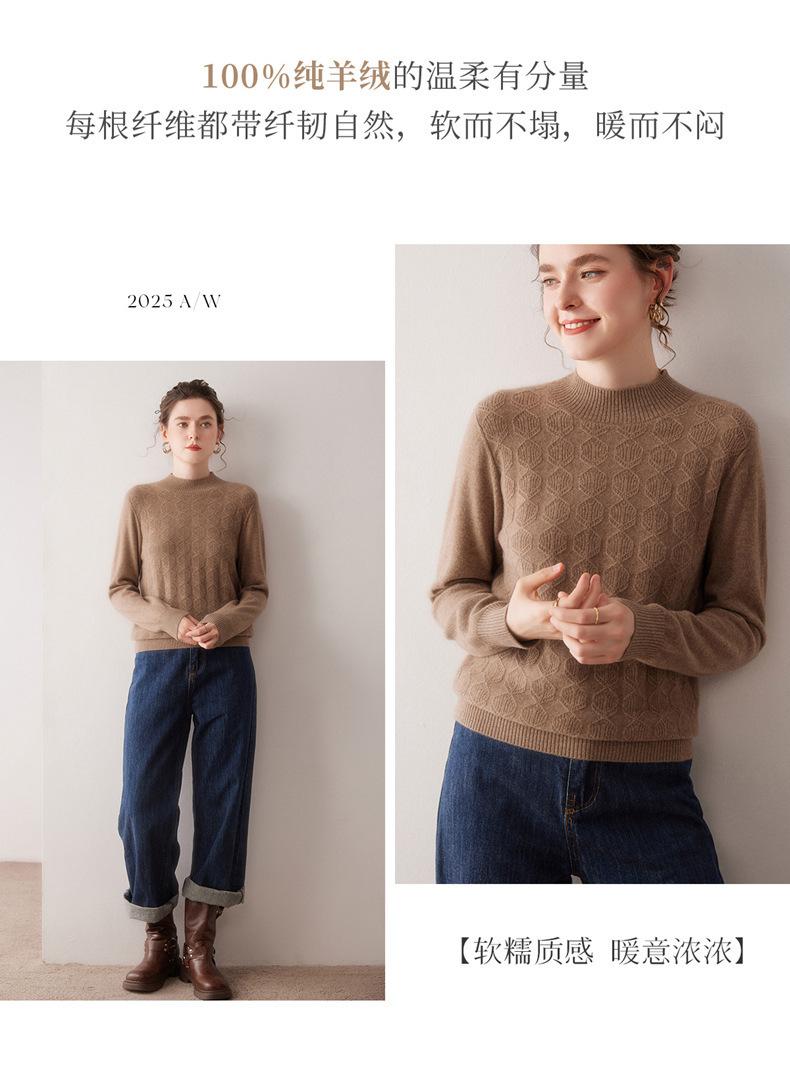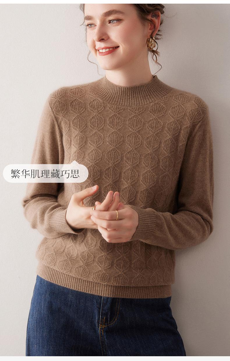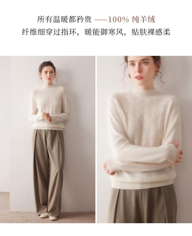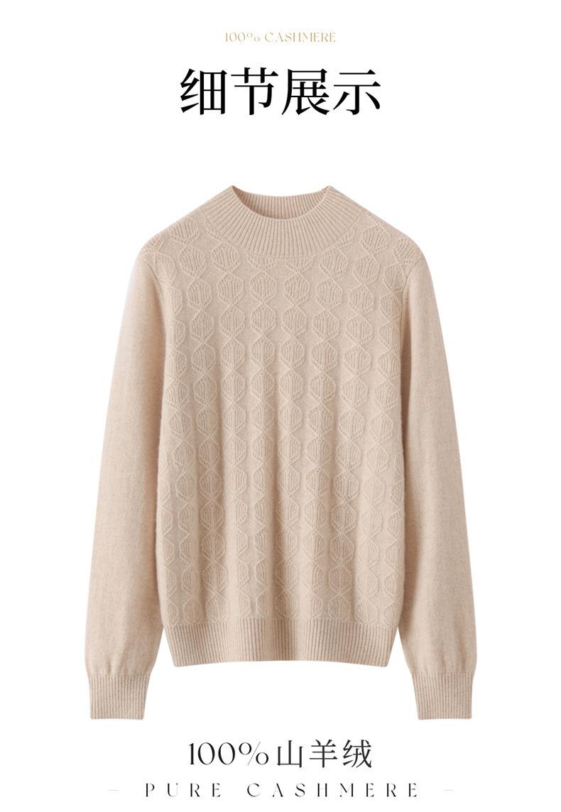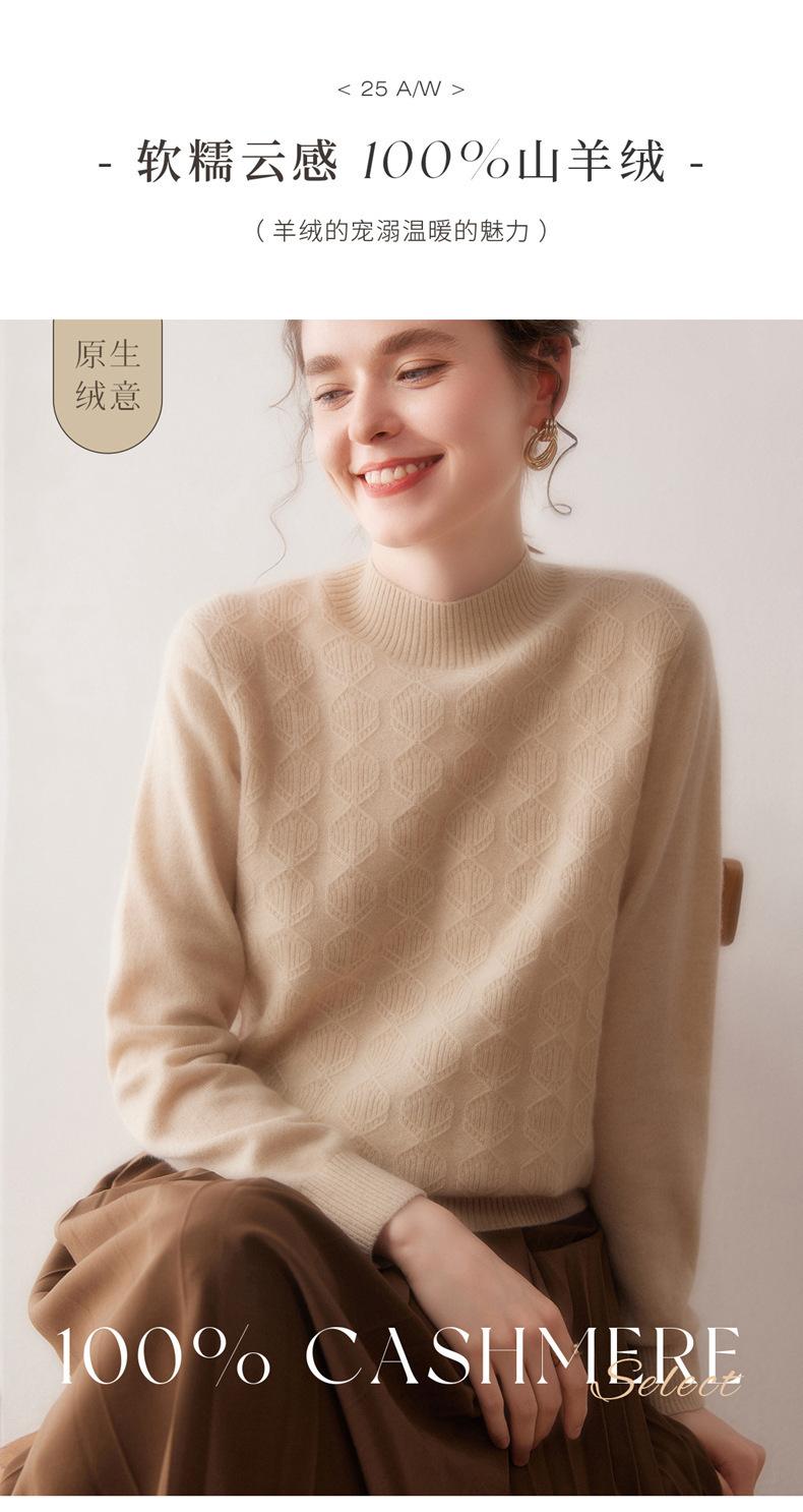 Suéter de Cachemira de Cuello Medio Alto Nuevo Otoño/Invierno para Mujer 100% Cachemira Pura Manga Larga Jersey Moda Tejido Suéter Base