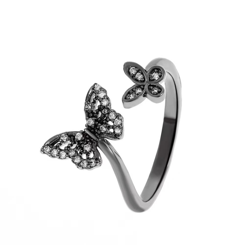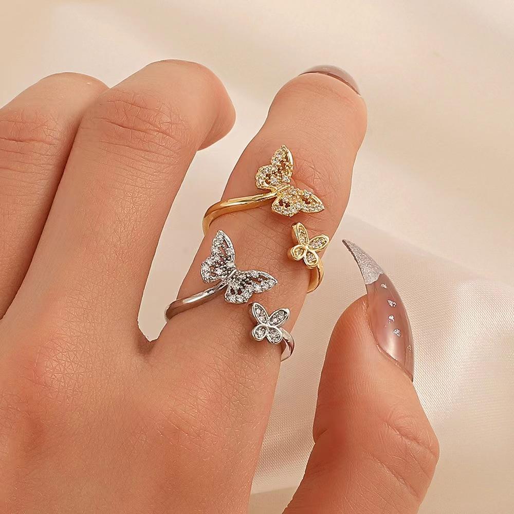 Anillo de Mariposa Simple Europeo y Americano Ins Personalidad Elegante Cobre Mariposa con Incrustaciones de Diamantes Anillo de Dedo Geométrico Abierto Joyería