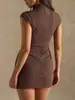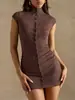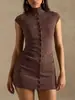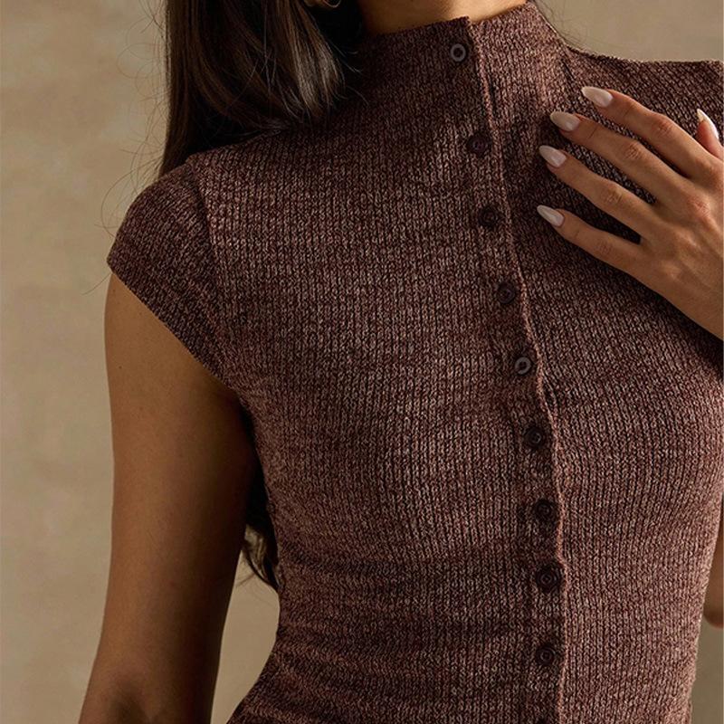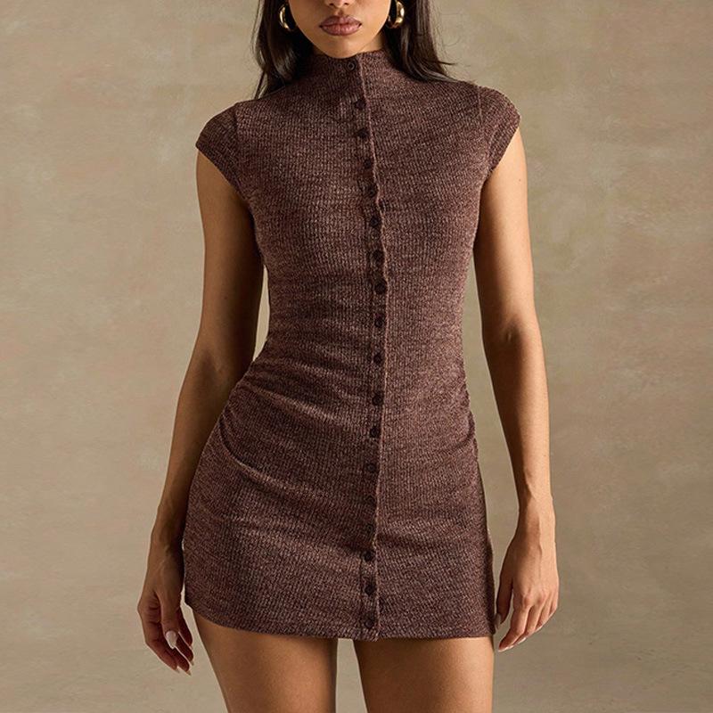 2025 Moda Nueva Europea y Americana Sexy Adelgazante Temperamento Color Sólido Fila de Botones Cuello Alto Envolvente de Cadera Vestido Casual Simple para Mujer