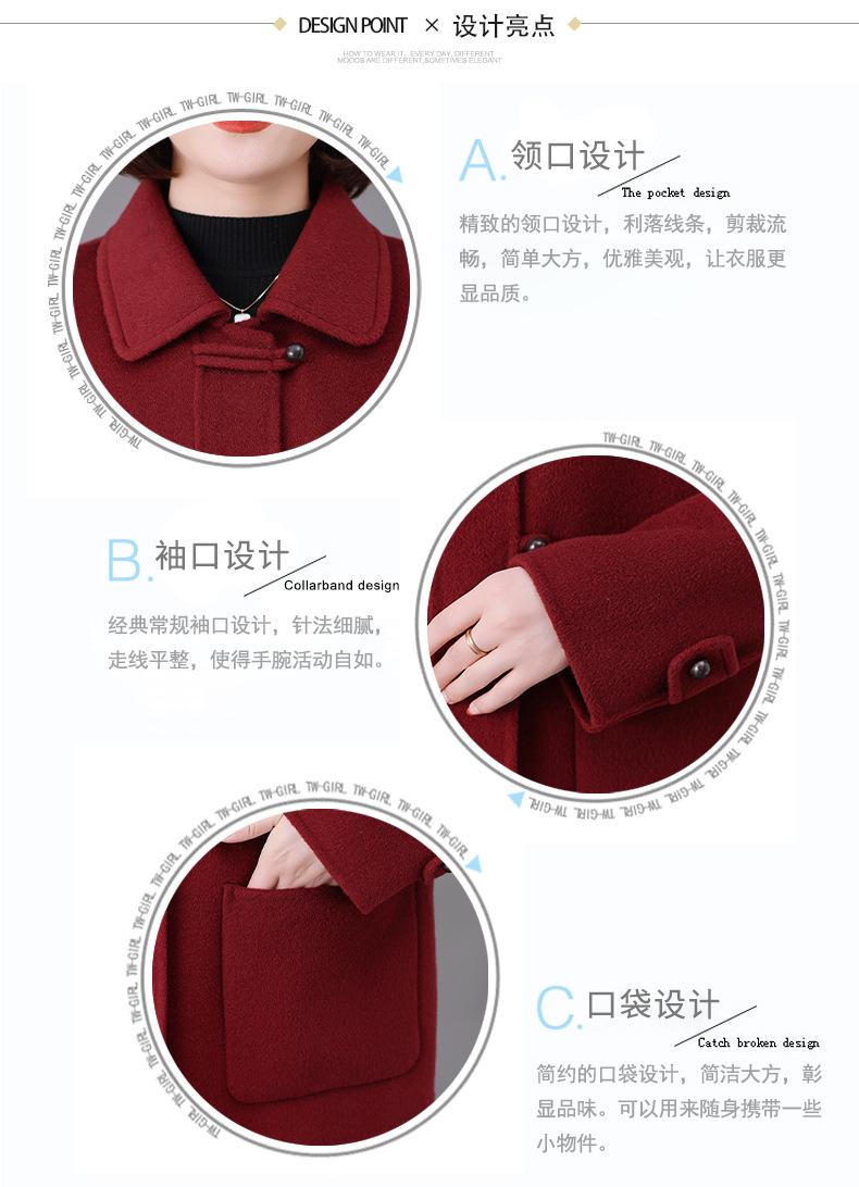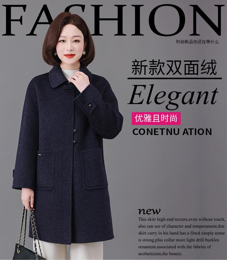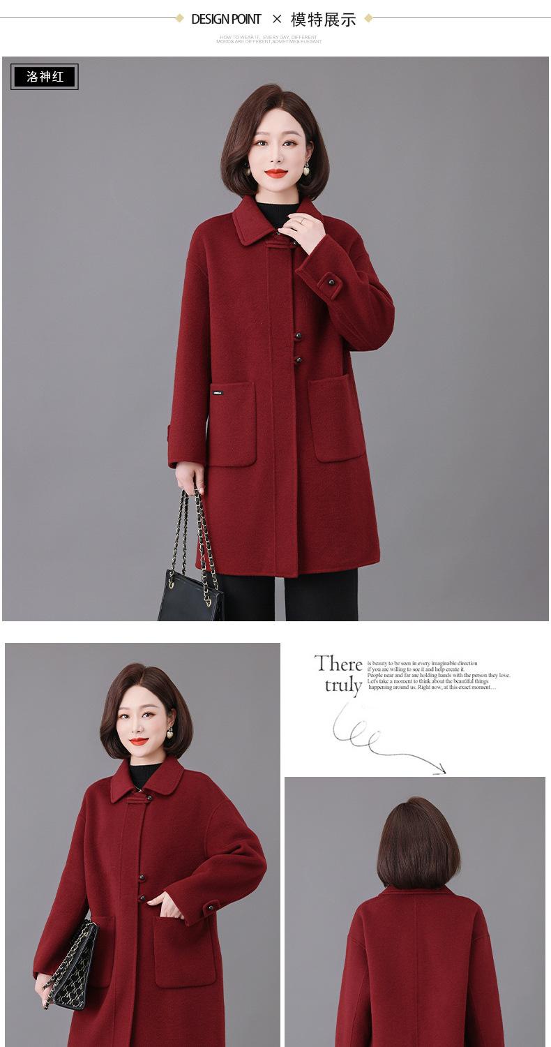 Abrigo de cachemira de doble cara ropa exterior para mujer top de lana de largo medio otoño e invierno ropa para madre de mediana edad y anciana lana de moda