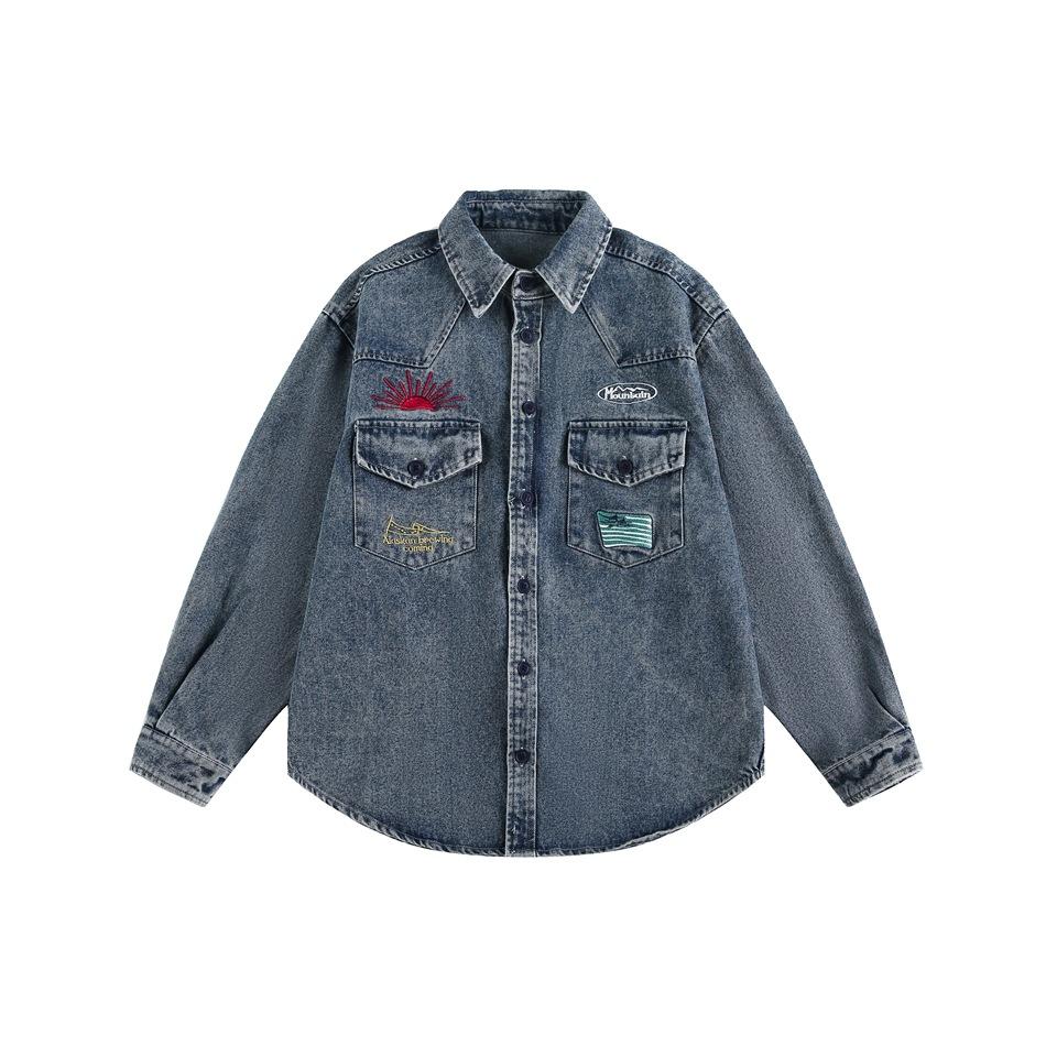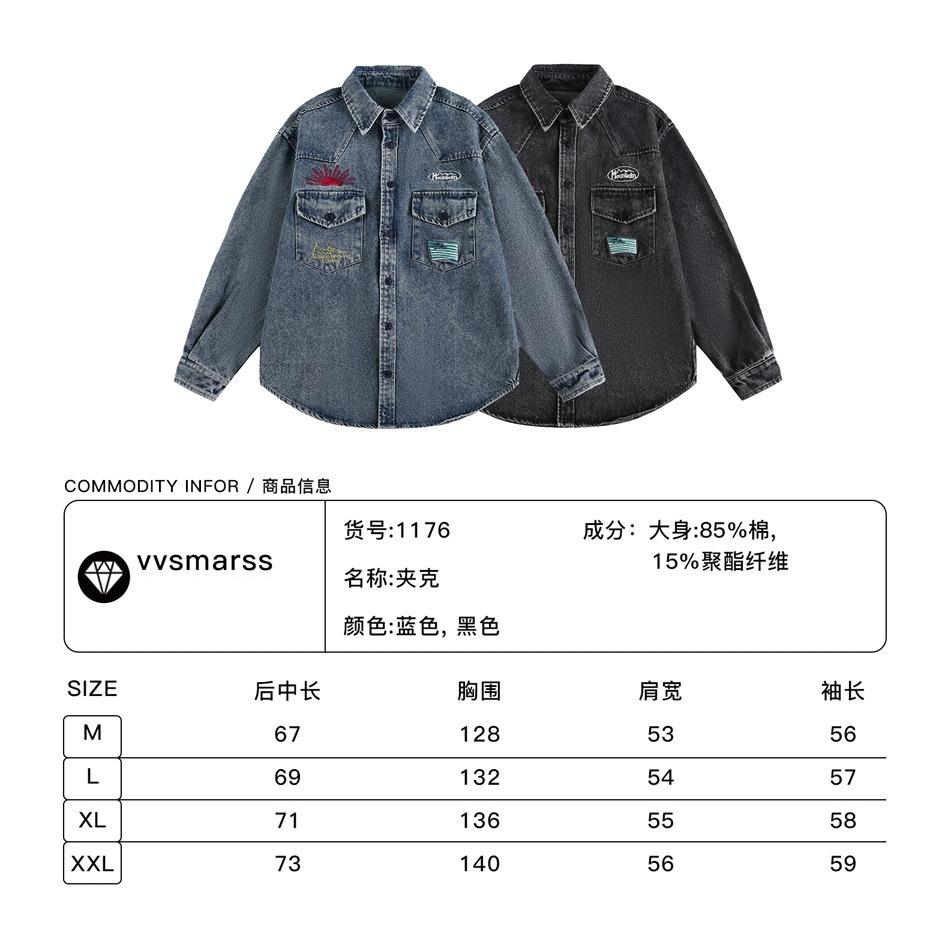 VVSMARS Marca de Tendencia Retro Americana Chaqueta Camisa de Trabajo Lavada de Peso Pesado para Hombre Chaqueta de Mezclilla Holgada 1176