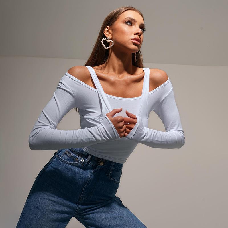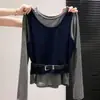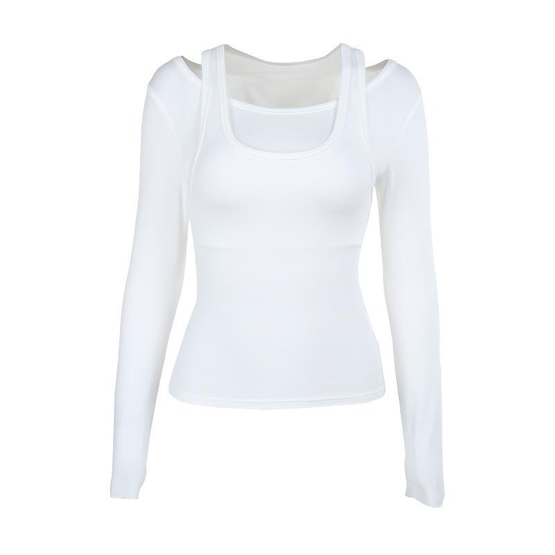Otoño/Invierno 2025 Nuevo Top de Manga Larga Color Sólido Chaleco Conjunto de Dos Piezas Sexy Ajustado Capa Base Top Ropa Exterior